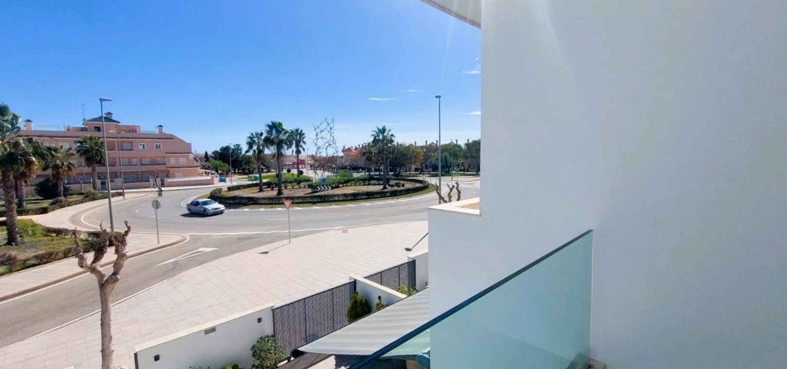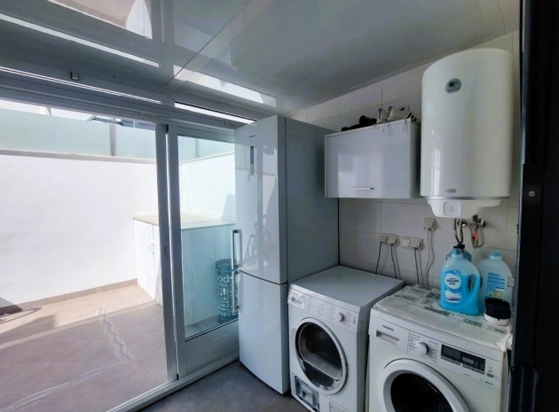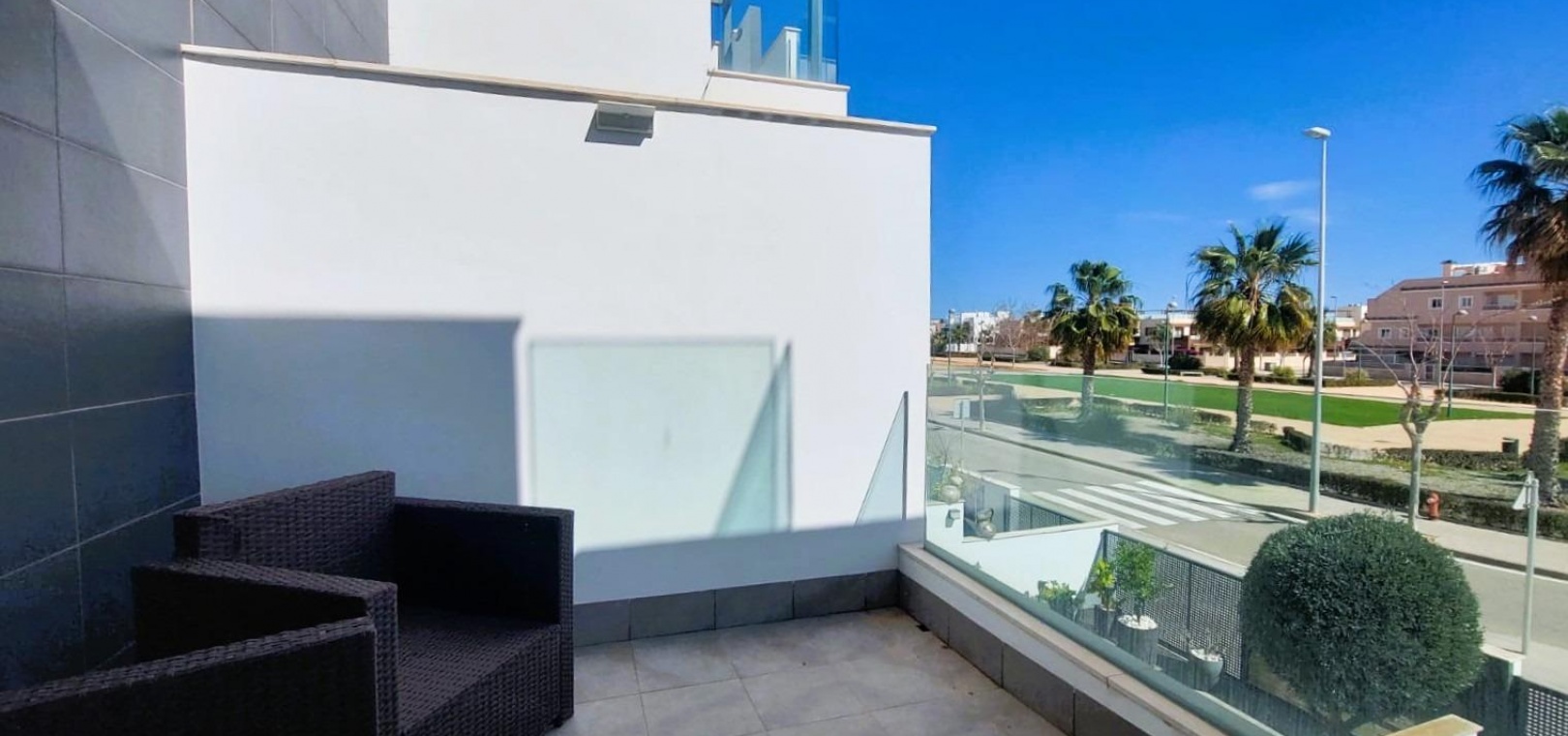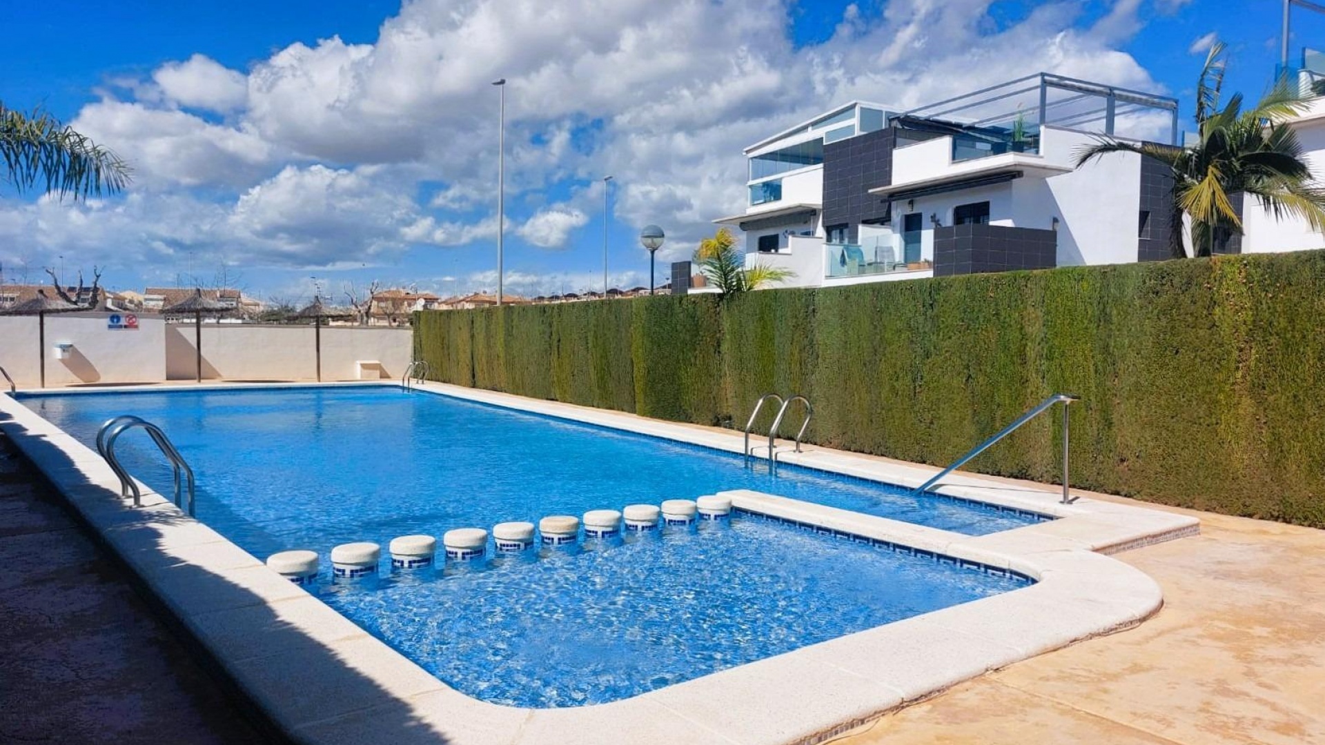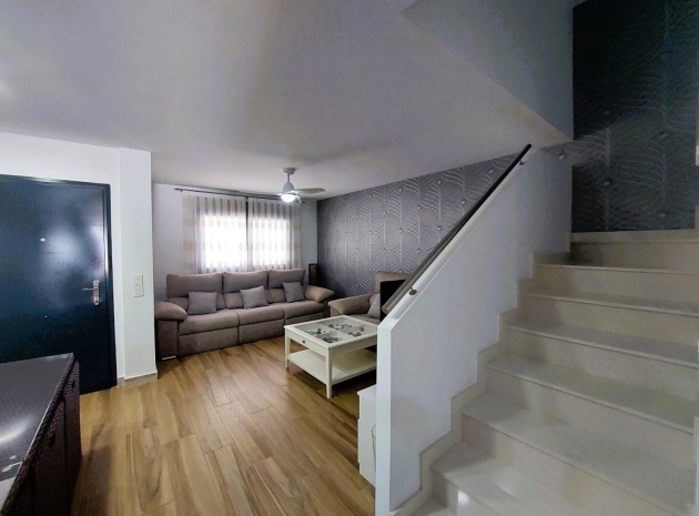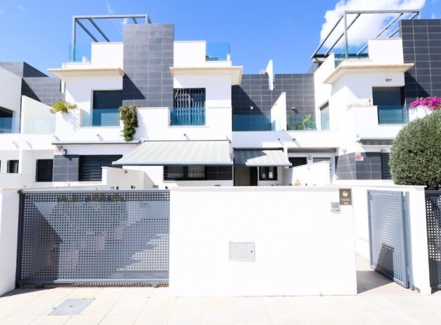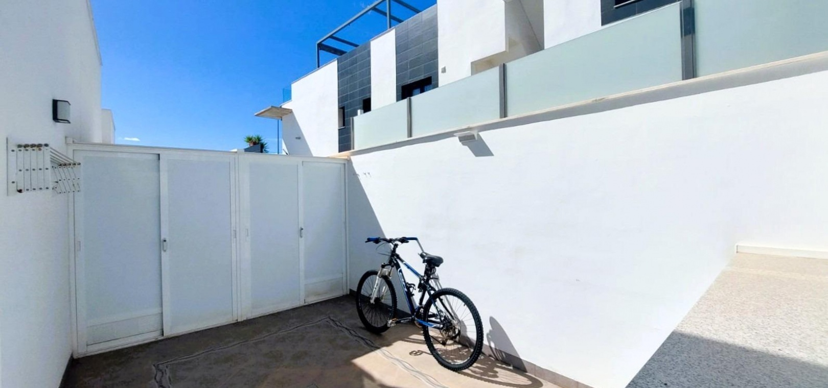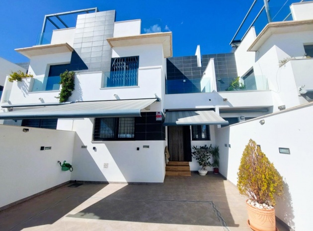 Verpassen Sie nicht die Gelegenheit, dieses schöne, geräumige und sonnige, halbneue Stadthaus zu besichtigen, das 2013 nach hohen Standards gebaut wurde und 7 Gehminuten von der Playa del Puerto in Torre de la Horadada entfernt liegt.~~Im Erdgeschoss haben wir einen hellen Garten mit automatischer Einfahrt für Fahrzeuge, ein geräumiges Wohn-Esszimmer mit Zugang zur Küche, einen Hauswirtschaftsraum, eine hintere Terrasse mit viel Stauraum, 1 Schlafzimmer mit Einbauschrank, 1 komplettes Badezimmer mit Dusche und einen Abstellraum/Speisekammer.~~Im ersten Stock gibt es 2 geräumige Doppelschlafzimmer mit Einbauschränken, 1 komplettes Badezimmer mit Dusche und Fenster. Jedes der Schlafzimmer hat Zugang zu einer Terrasse, von denen eine einen unverbauten Blick auf den Park bietet.~~Im dritten Stock gibt es eine 52 m² große Sonnenterrasse mit Meerblick.~~Es wird komplett möbliert und mit Elektrogeräten verkauft, alle praktisch neu. Es verfügt über 4 Klimaanlagen mit Warm-/Kaltpumpe und Deckenventilatoren in allen Räumen des Anwesens. Solarpanel für Warmwasser. Glatte Wände, Sicherheitstür, Sicherheitsgitter und Moskitonetze an Türen und Fenstern.~~Dieses fantastische Haus befindet sich in einer gepflegten Urbanisation mit einem schönen Pool. Es liegt in einer der besten Gegenden von Torre de la Horadada, sehr ruhig, gegenüber einem großen Park, 500 Meter vom Strand entfernt, umgeben von allen notwendigen Dienstleistungen und mit sehr guter Anbindung an die Autobahnen.~~Dies ist eine fantastische Gelegenheit, eine halbneue Villa in wunderschönem Zustand zu erwerben, ohne auf den Bau warten zu müssen, und die alle notwendigen Annehmlichkeiten beinhaltet.~~