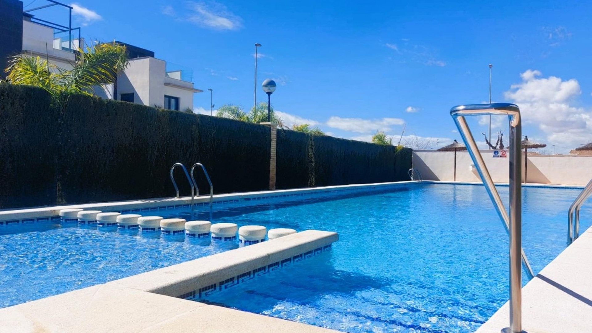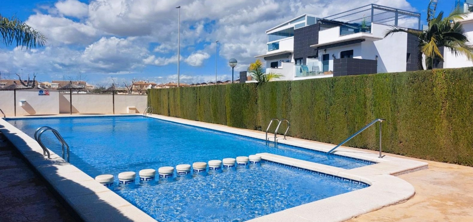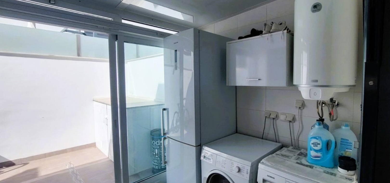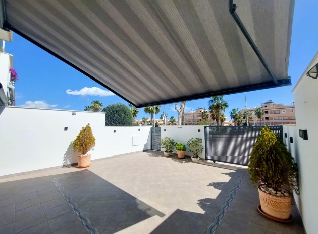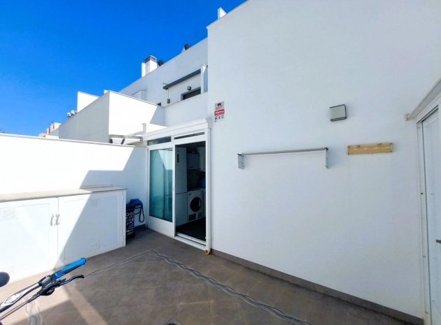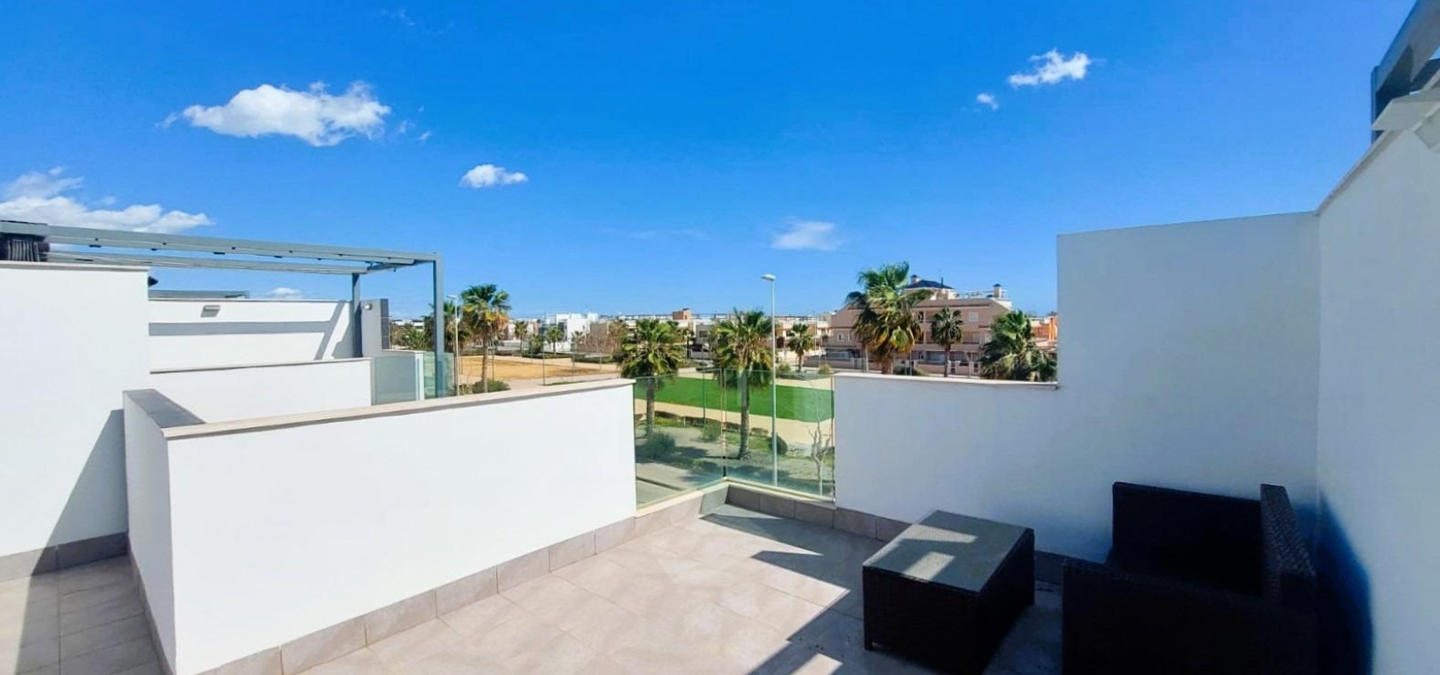 Verpassen Sie nicht die Gelegenheit, dieses schöne, geräumige und sonnige, halbneue Stadthaus zu besichtigen, das 2013 nach hohen Standards gebaut wurde und 7 Gehminuten von der Playa del Puerto in Torre de la Horadada entfernt liegt.~~Im Erdgeschoss haben wir einen hellen Garten mit automatischer Einfahrt für Fahrzeuge, ein geräumiges Wohn-Esszimmer mit Zugang zur Küche, einen Hauswirtschaftsraum, eine hintere Terrasse mit viel Stauraum, 1 Schlafzimmer mit Einbauschrank, 1 komplettes Badezimmer mit Dusche und einen Abstellraum/Speisekammer.~~Im ersten Stock gibt es 2 geräumige Doppelschlafzimmer mit Einbauschränken, 1 komplettes Badezimmer mit Dusche und Fenster. Jedes der Schlafzimmer hat Zugang zu einer Terrasse, von denen eine einen unverbauten Blick auf den Park bietet.~~Im dritten Stock gibt es eine 52 m² große Sonnenterrasse mit Meerblick.~~Es wird komplett möbliert und mit Elektrogeräten verkauft, alle praktisch neu. Es verfügt über 4 Klimaanlagen mit Warm-/Kaltpumpe und Deckenventilatoren in allen Räumen des Anwesens. Solarpanel für Warmwasser. Glatte Wände, Sicherheitstür, Sicherheitsgitter und Moskitonetze an Türen und Fenstern.~~Dieses fantastische Haus befindet sich in einer gepflegten Urbanisation mit einem schönen Pool. Es liegt in einer der besten Gegenden von Torre de la Horadada, sehr ruhig, gegenüber einem großen Park, 500 Meter vom Strand entfernt, umgeben von allen notwendigen Dienstleistungen und mit sehr guter Anbindung an die Autobahnen.~~Dies ist eine fantastische Gelegenheit, eine halbneue Villa in wunderschönem Zustand zu erwerben, ohne auf den Bau warten zu müssen, und die alle notwendigen Annehmlichkeiten beinhaltet.~~