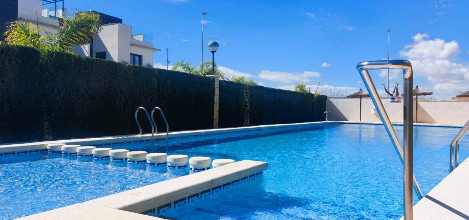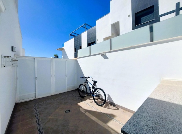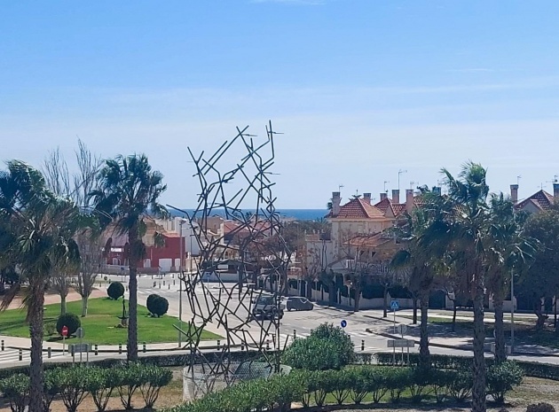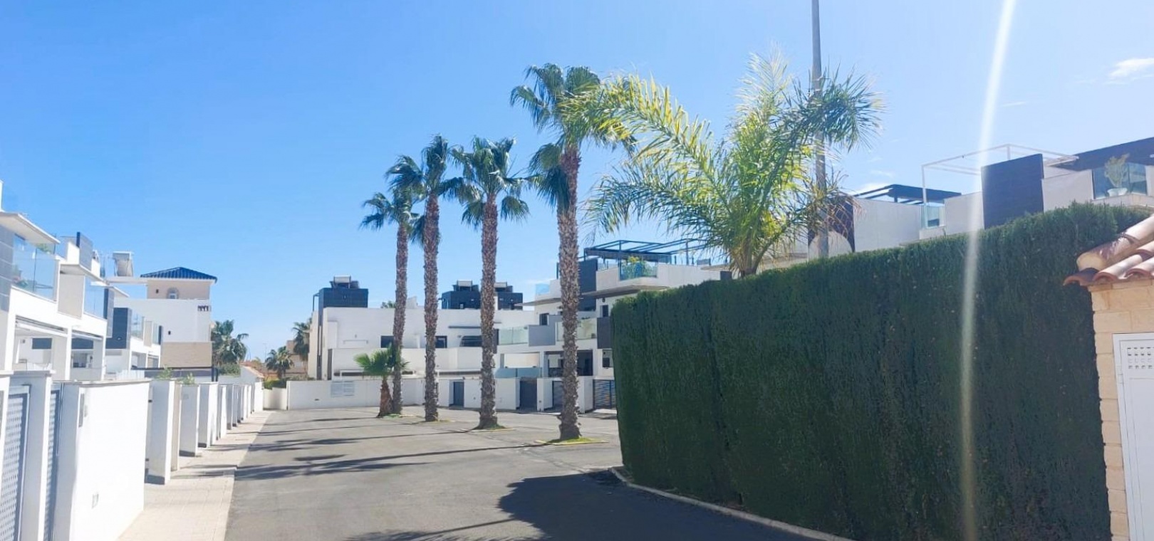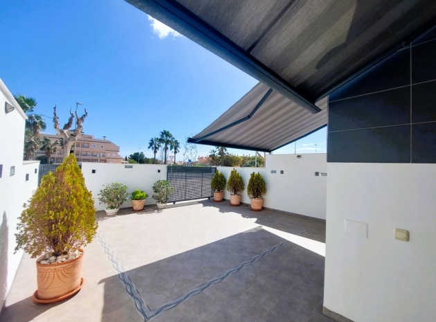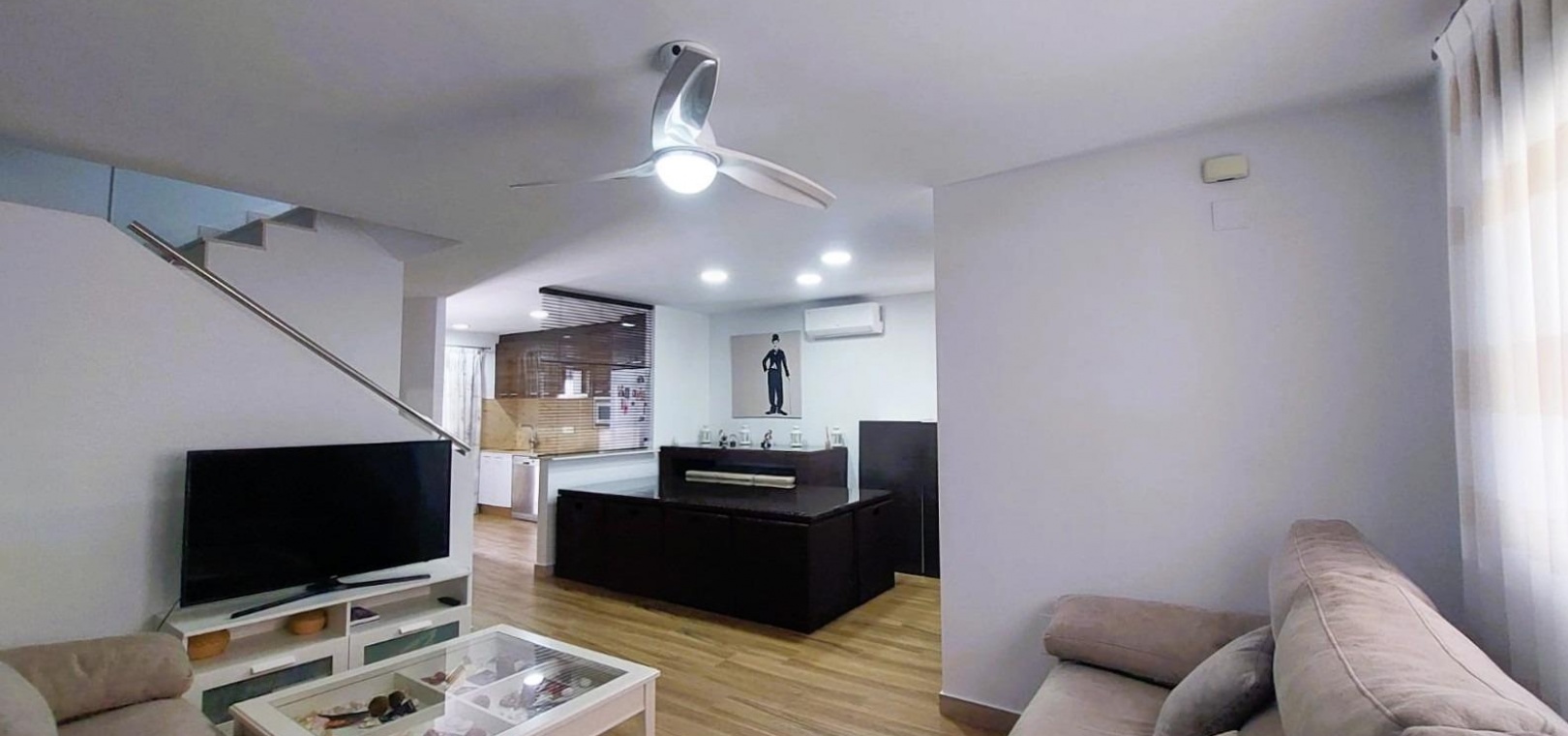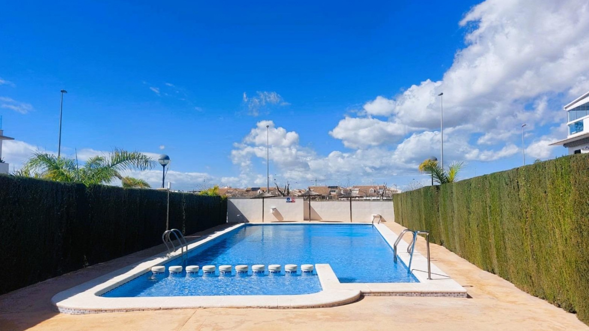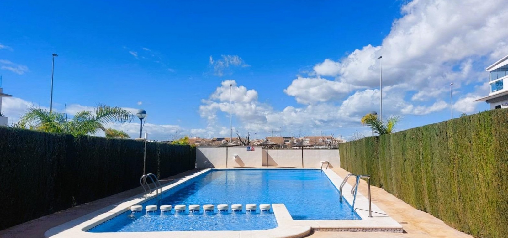 Verpassen Sie nicht die Gelegenheit, dieses schöne, geräumige und sonnige, halbneue Stadthaus zu besichtigen, das 2013 nach hohen Standards gebaut wurde und 7 Gehminuten von der Playa del Puerto in Torre de la Horadada entfernt liegt.~~Im Erdgeschoss haben wir einen hellen Garten mit automatischer Einfahrt für Fahrzeuge, ein geräumiges Wohn-Esszimmer mit Zugang zur Küche, einen Hauswirtschaftsraum, eine hintere Terrasse mit viel Stauraum, 1 Schlafzimmer mit Einbauschrank, 1 komplettes Badezimmer mit Dusche und einen Abstellraum/Speisekammer.~~Im ersten Stock gibt es 2 geräumige Doppelschlafzimmer mit Einbauschränken, 1 komplettes Badezimmer mit Dusche und Fenster. Jedes der Schlafzimmer hat Zugang zu einer Terrasse, von denen eine einen unverbauten Blick auf den Park bietet.~~Im dritten Stock gibt es eine 52 m² große Sonnenterrasse mit Meerblick.~~Es wird komplett möbliert und mit Elektrogeräten verkauft, alle praktisch neu. Es verfügt über 4 Klimaanlagen mit Warm-/Kaltpumpe und Deckenventilatoren in allen Räumen des Anwesens. Solarpanel für Warmwasser. Glatte Wände, Sicherheitstür, Sicherheitsgitter und Moskitonetze an Türen und Fenstern.~~Dieses fantastische Haus befindet sich in einer gepflegten Urbanisation mit einem schönen Pool. Es liegt in einer der besten Gegenden von Torre de la Horadada, sehr ruhig, gegenüber einem großen Park, 500 Meter vom Strand entfernt, umgeben von allen notwendigen Dienstleistungen und mit sehr guter Anbindung an die Autobahnen.~~Dies ist eine fantastische Gelegenheit, eine halbneue Villa in wunderschönem Zustand zu erwerben, ohne auf den Bau warten zu müssen, und die alle notwendigen Annehmlichkeiten beinhaltet.~~