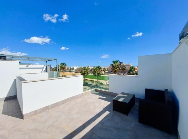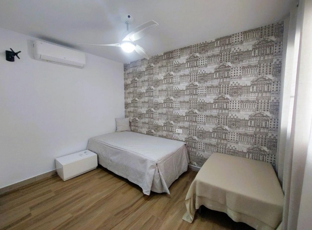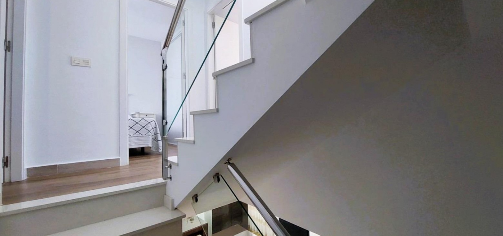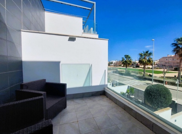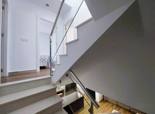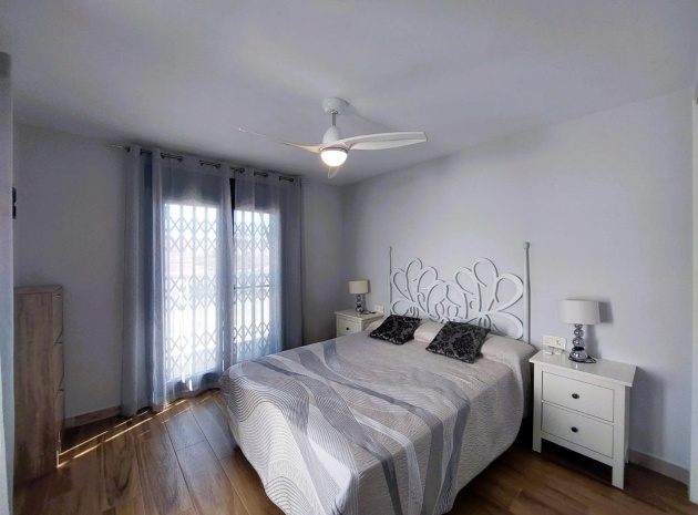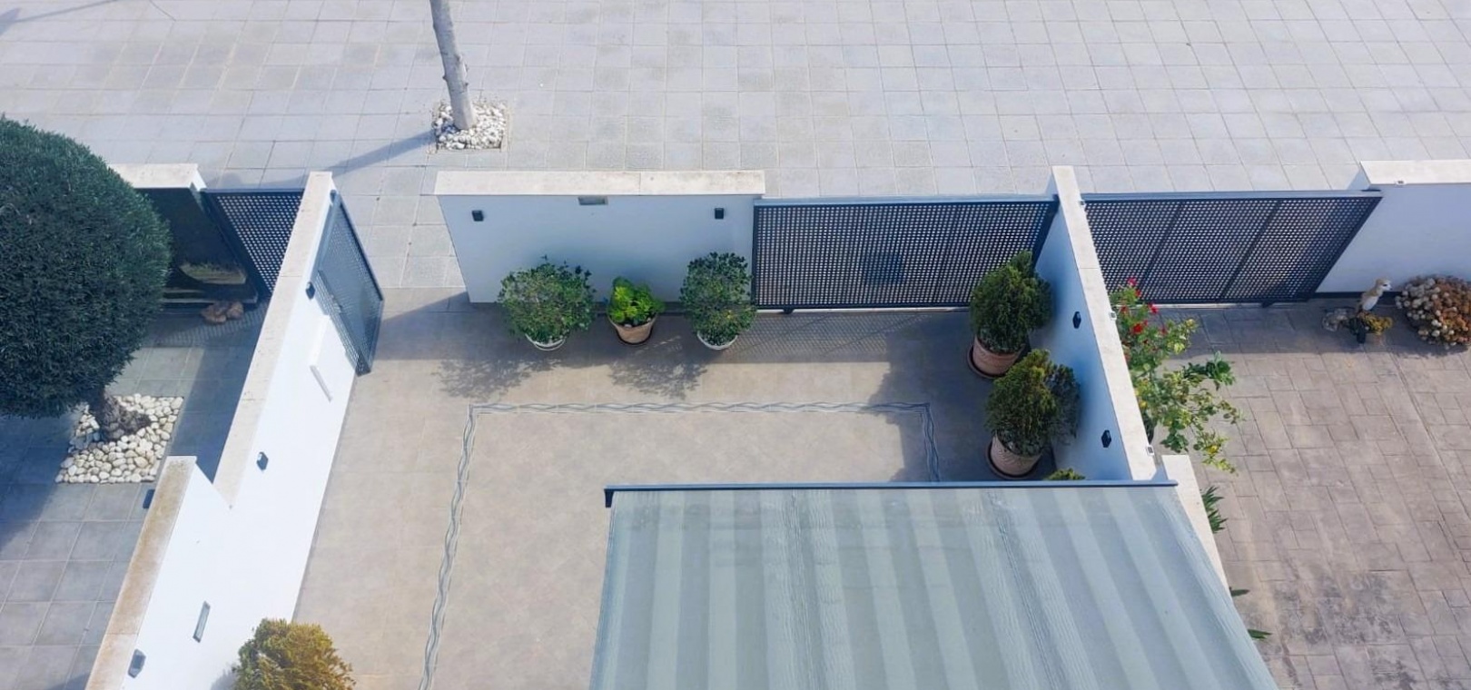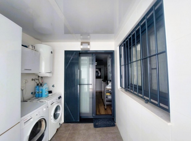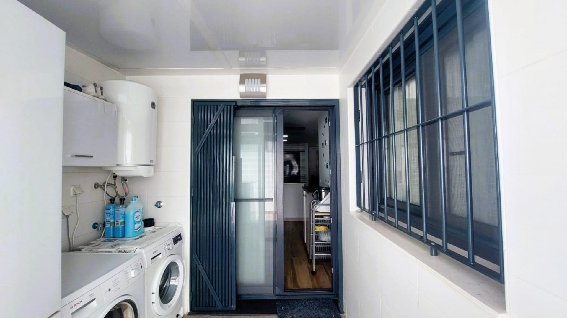 Verpassen Sie nicht die Gelegenheit, dieses schöne, geräumige und sonnige, halbneue Stadthaus zu besichtigen, das 2013 nach hohen Standards gebaut wurde und 7 Gehminuten von der Playa del Puerto in Torre de la Horadada entfernt liegt.~~Im Erdgeschoss haben wir einen hellen Garten mit automatischer Einfahrt für Fahrzeuge, ein geräumiges Wohn-Esszimmer mit Zugang zur Küche, einen Hauswirtschaftsraum, eine hintere Terrasse mit viel Stauraum, 1 Schlafzimmer mit Einbauschrank, 1 komplettes Badezimmer mit Dusche und einen Abstellraum/Speisekammer.~~Im ersten Stock gibt es 2 geräumige Doppelschlafzimmer mit Einbauschränken, 1 komplettes Badezimmer mit Dusche und Fenster. Jedes der Schlafzimmer hat Zugang zu einer Terrasse, von denen eine einen unverbauten Blick auf den Park bietet.~~Im dritten Stock gibt es eine 52 m² große Sonnenterrasse mit Meerblick.~~Es wird komplett möbliert und mit Elektrogeräten verkauft, alle praktisch neu. Es verfügt über 4 Klimaanlagen mit Warm-/Kaltpumpe und Deckenventilatoren in allen Räumen des Anwesens. Solarpanel für Warmwasser. Glatte Wände, Sicherheitstür, Sicherheitsgitter und Moskitonetze an Türen und Fenstern.~~Dieses fantastische Haus befindet sich in einer gepflegten Urbanisation mit einem schönen Pool. Es liegt in einer der besten Gegenden von Torre de la Horadada, sehr ruhig, gegenüber einem großen Park, 500 Meter vom Strand entfernt, umgeben von allen notwendigen Dienstleistungen und mit sehr guter Anbindung an die Autobahnen.~~Dies ist eine fantastische Gelegenheit, eine halbneue Villa in wunderschönem Zustand zu erwerben, ohne auf den Bau warten zu müssen, und die alle notwendigen Annehmlichkeiten beinhaltet.~~