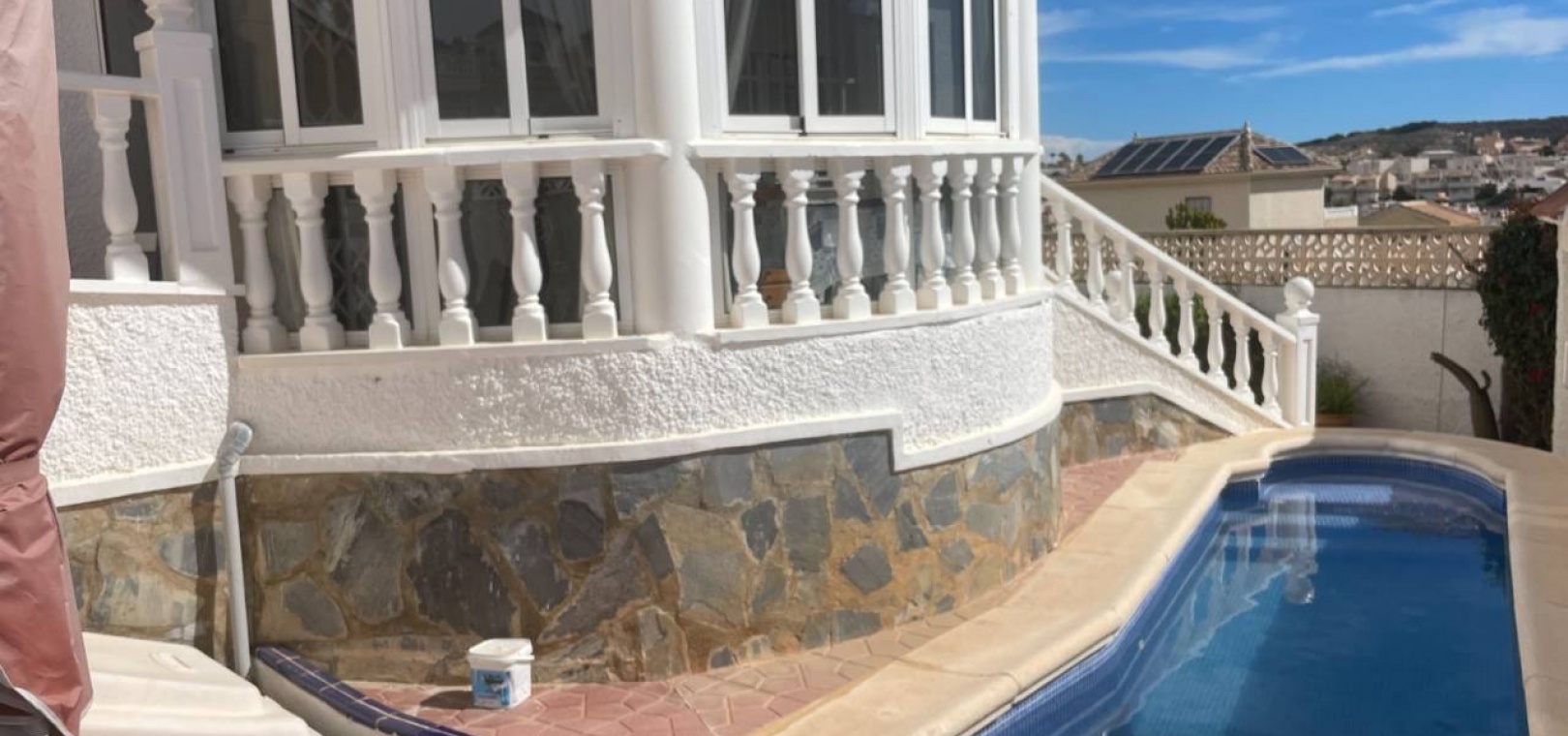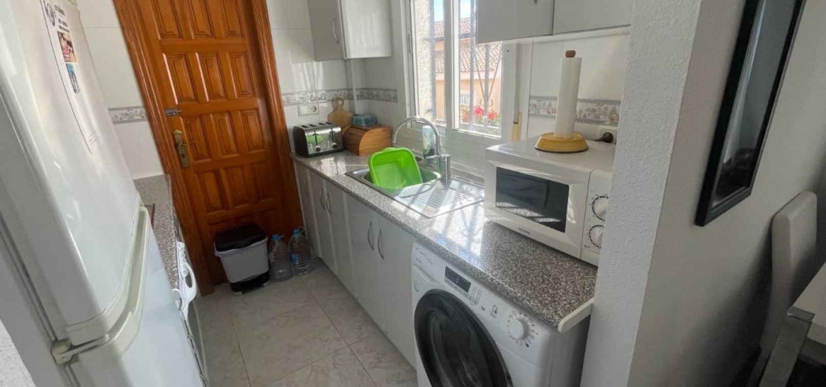 Diese elegante, freistehende Villa mit 2 Schlafzimmern und 2 Bädern befindet sich in der prestigeträchtigen Wohngegend La Marquesa und bietet eine ruhige und malerische Lage in unmittelbarer Nähe zum Golfplatz sowie einen atemberaubenden Blick auf Pool und Garten. Die Villa ist auf Komfort und Bequemlichkeit ausgelegt und verfügt über einen großzügigen Wohnbereich, eine separate, voll ausgestattete Küche und ein zusätzliches Badezimmer en suite. Die Einbauschränke bieten ausreichend Stauraum, während Klimaanlage und Deckenventilatoren ganzjährig für ein angenehmes Klima sorgen. Der private Außenbereich ist ein echtes Highlight: Er umfasst ein komplett gefliestes Grundstück, einen privaten Swimmingpool, ein Solarium und eine nach Südwesten ausgerichtete Terrasse, auf der Sie die mediterrane Sonne genießen können. Der Parkplatz abseits der Straße und die private Auffahrt tragen zum Komfort der Villa bei. Zu den weiteren Ausstattungsmerkmalen gehören: Glasfaser-Internet für Highspeed-Verbindungen. Haushaltsgeräte sind sofort einsatzbereit. Möbel sind verhandelbar, um den Übergang zu erleichtern. In unmittelbarer Nähe zu Schulen, Geschäften und wichtigen Annehmlichkeiten. Nur 5 Minuten vom Golfplatz La Marquesa, 10 Minuten von den atemberaubenden Stränden und 35 Minuten vom Flughafen entfernt, ist diese Villa ein ideales Zuhause für Golfliebhaber, Urlauber oder Dauerbewohner. Mit ihrem hervorragenden Zustand, der wunderschönen Umgebung und der unschlagbaren Lage ist diese Villa ein absolutes Muss!