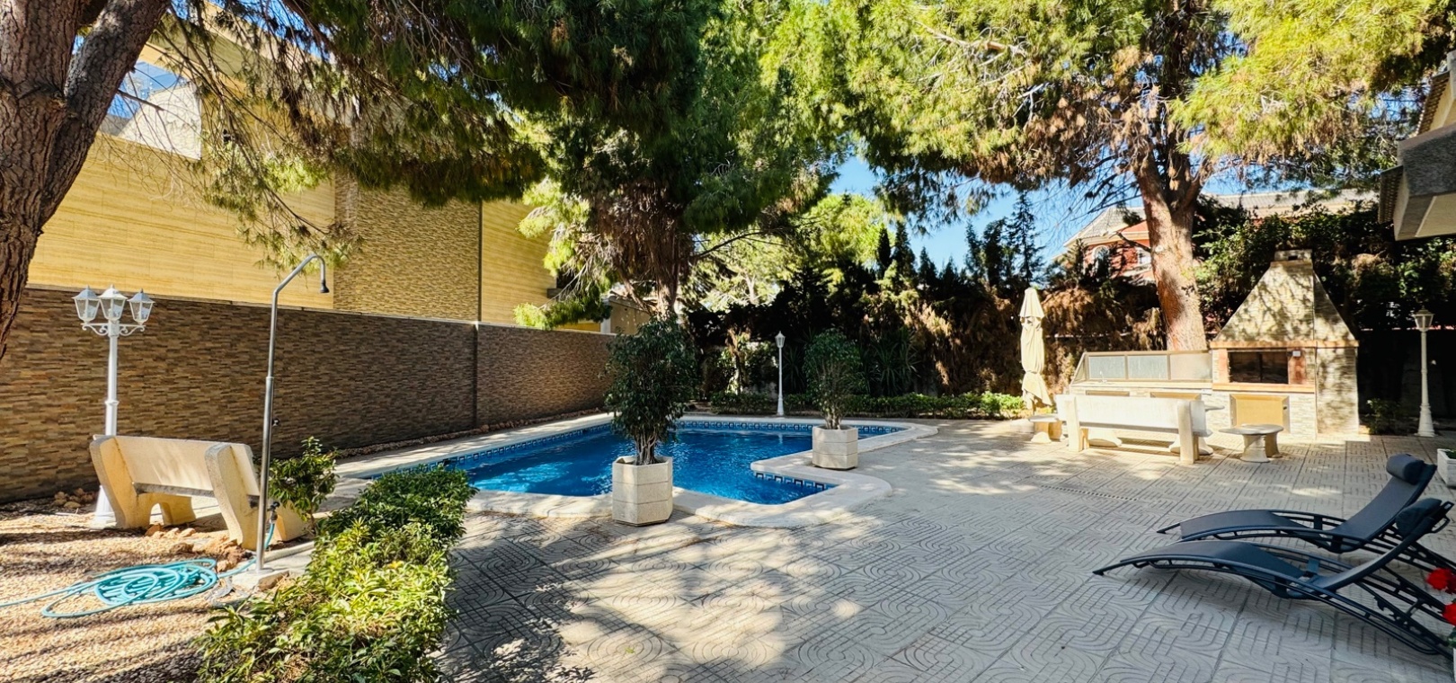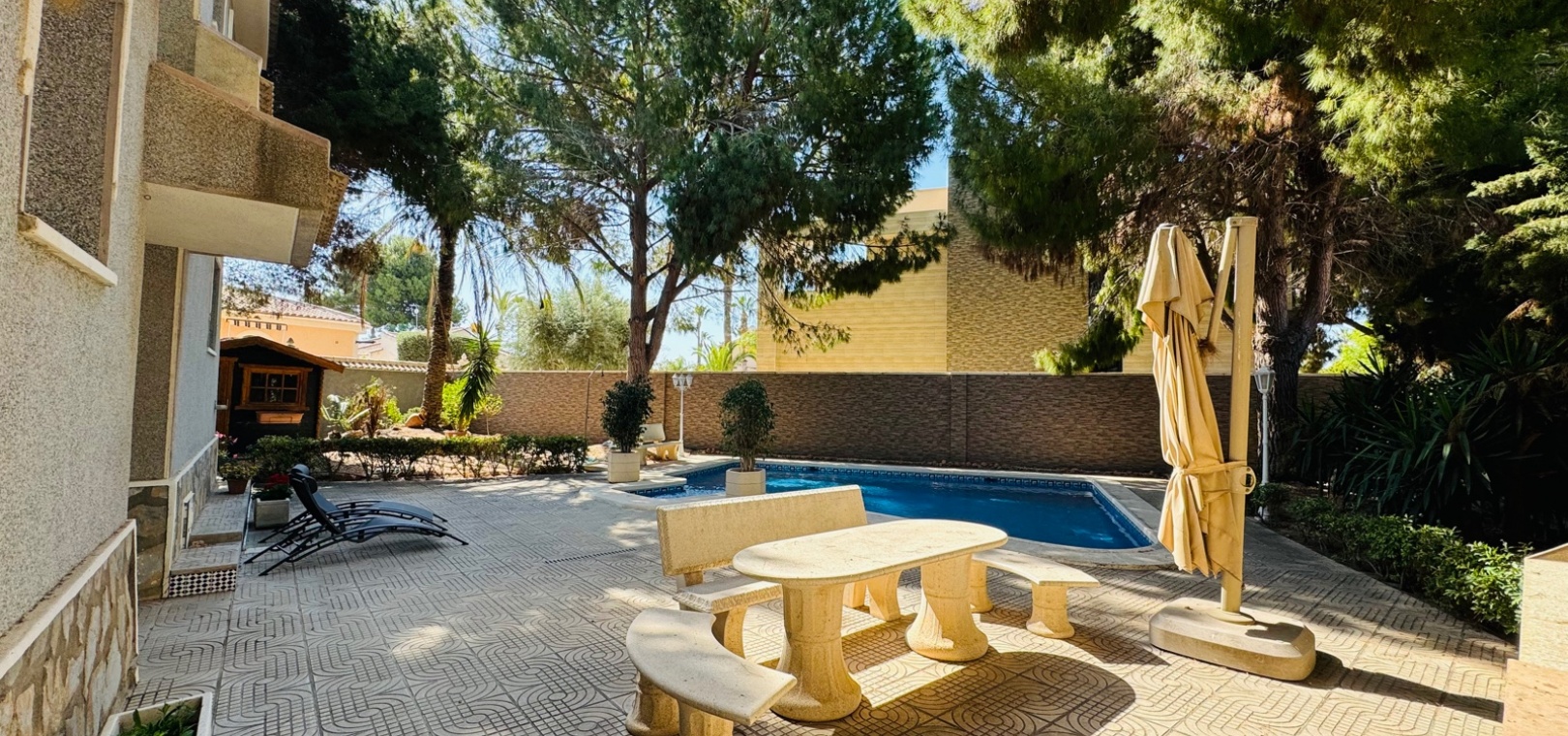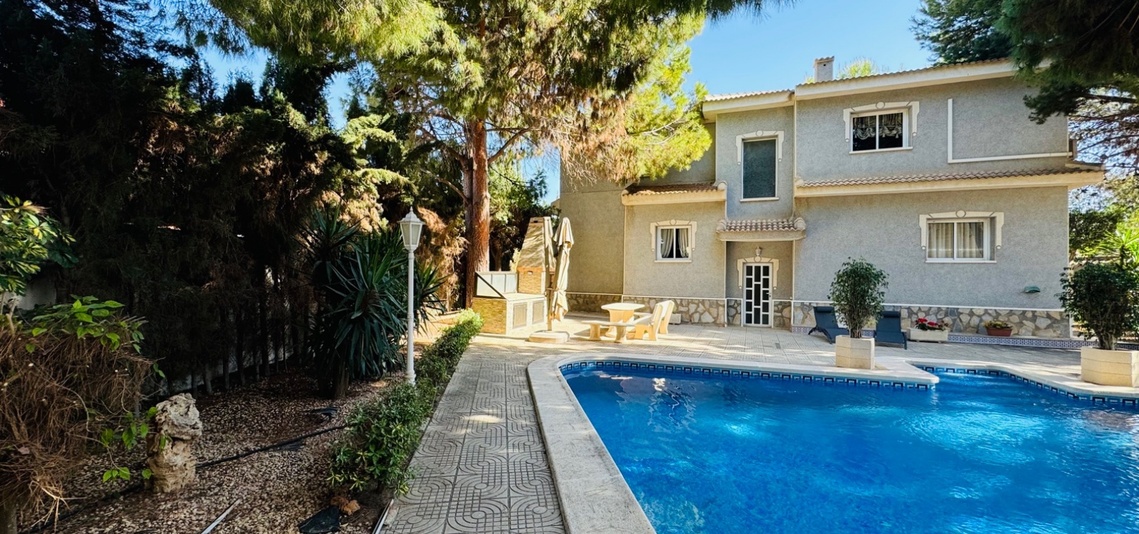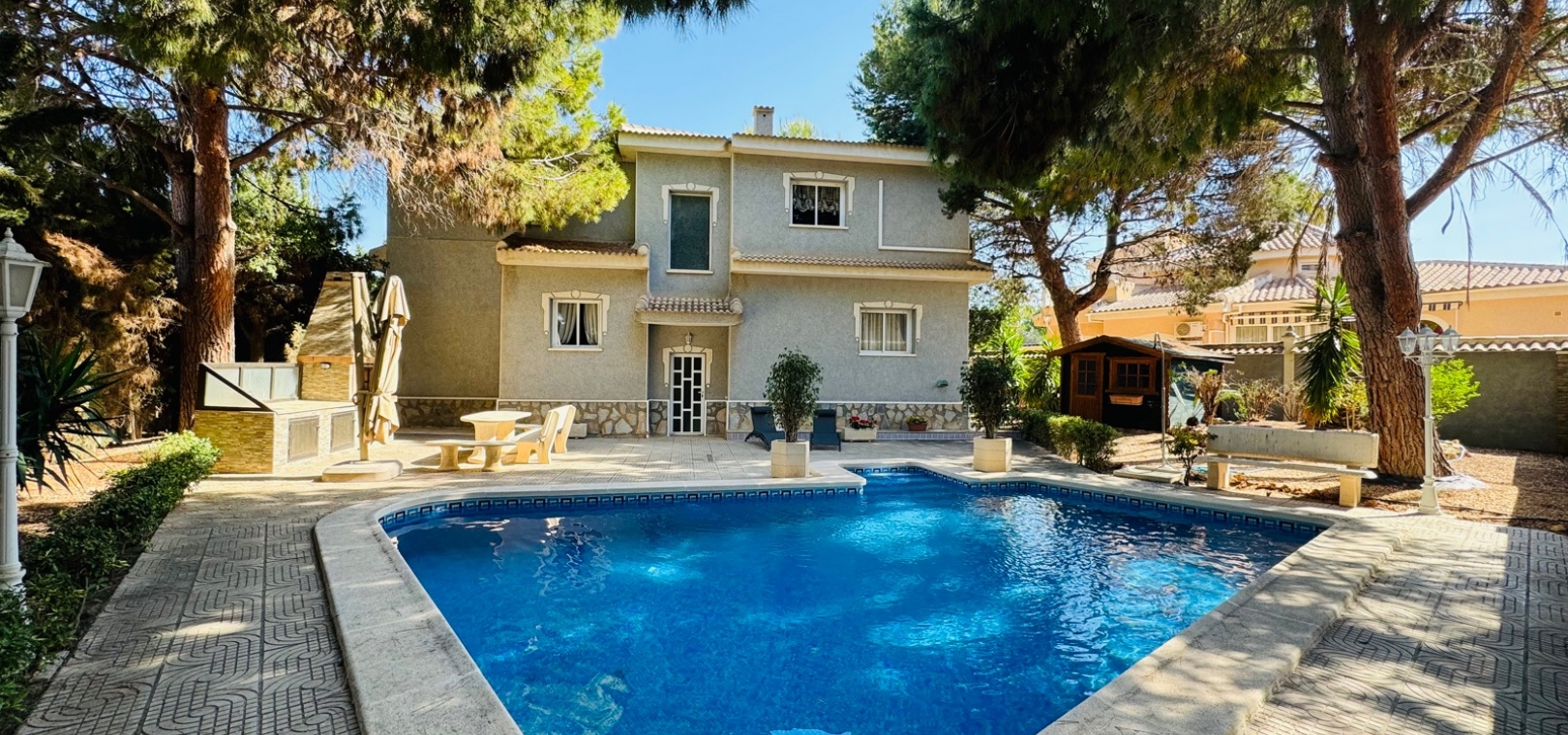 Diese großzügige Villa mit 5 Schlafzimmern und 5 Bädern befindet sich in der prestigeträchtigen Wohngegend Doña Pepa in Ciudad Quesada und verkörpert Luxus und Komfort. Perfekt konzipiert für große Familien oder diejenigen, die viel Platz genießen, verfügt diese Villa über einen privaten Pool und wunderschön angelegte Gärten und bietet eine ruhige Oase zum Entspannen und Genießen. Das Interieur der Villa ist sorgfältig gestaltet und bietet geräumige, lichtdurchflutete Wohnbereiche, moderne Annehmlichkeiten und hochwertige Oberflächen. Jedes Schlafzimmer bietet großzügigen Platz und Privatsphäre sowie ein eigenes Bad, das für einen Hauch von Eleganz und Komfort sorgt. Die Küche ist komplett mit erstklassigen Geräten ausgestattet und eignet sich perfekt für die Zubereitung von Gourmetgerichten. Die offenen Wohn- und Essbereiche schaffen einen nahtlosen Übergang und sind ideal, um Gäste zu bewirten oder Zeit mit der Familie zu verbringen. Im Außenbereich ist der private Pool der Villa von üppigem Grün und einem gepflegten Garten umgeben und bietet den perfekten Rahmen für Treffen im Freien oder einen ruhigen Rückzugsort. Die große Terrasse bietet zusätzlichen Platz zum Essen im Freien oder zum Entspannen in der Sonne. Dona Pepa ist eine der begehrtesten Gegenden von Ciudad Quesada. Diese Villa liegt in der Nähe lokaler Annehmlichkeiten wie Geschäften, Restaurants und Freizeiteinrichtungen und ist somit die ideale Wahl für alle, die einen luxuriösen Lebensstil in erstklassiger Lage suchen.