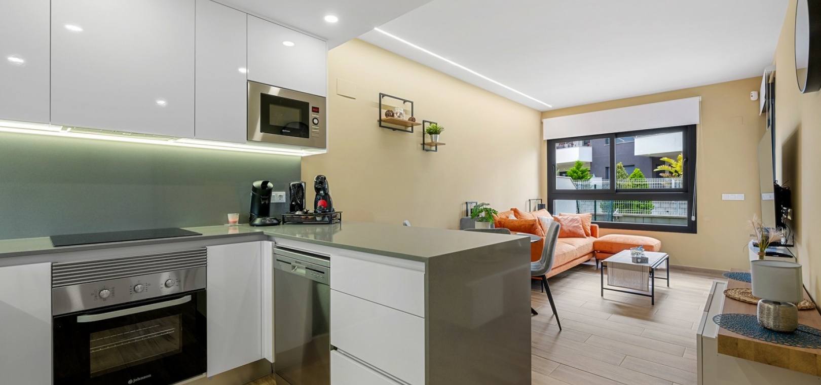 Diese stilvolle Eckwohnung im Erdgeschoss mit 2 Schlafzimmern und 2 Bädern befindet sich in Villamartín, Alicante, in hervorragender Lage. Alle lokalen Annehmlichkeiten wie Restaurants, Bars und Geschäfte erreichen Sie in wenigen Gehminuten. Der wunderschöne Strand La Zenia und das renommierte Einkaufszentrum La Zenia Boulevard sind weniger als 10 Autominuten entfernt. Auch die Villamartín Plaza und Villamartín Golf sind in wenigen Minuten erreichbar.