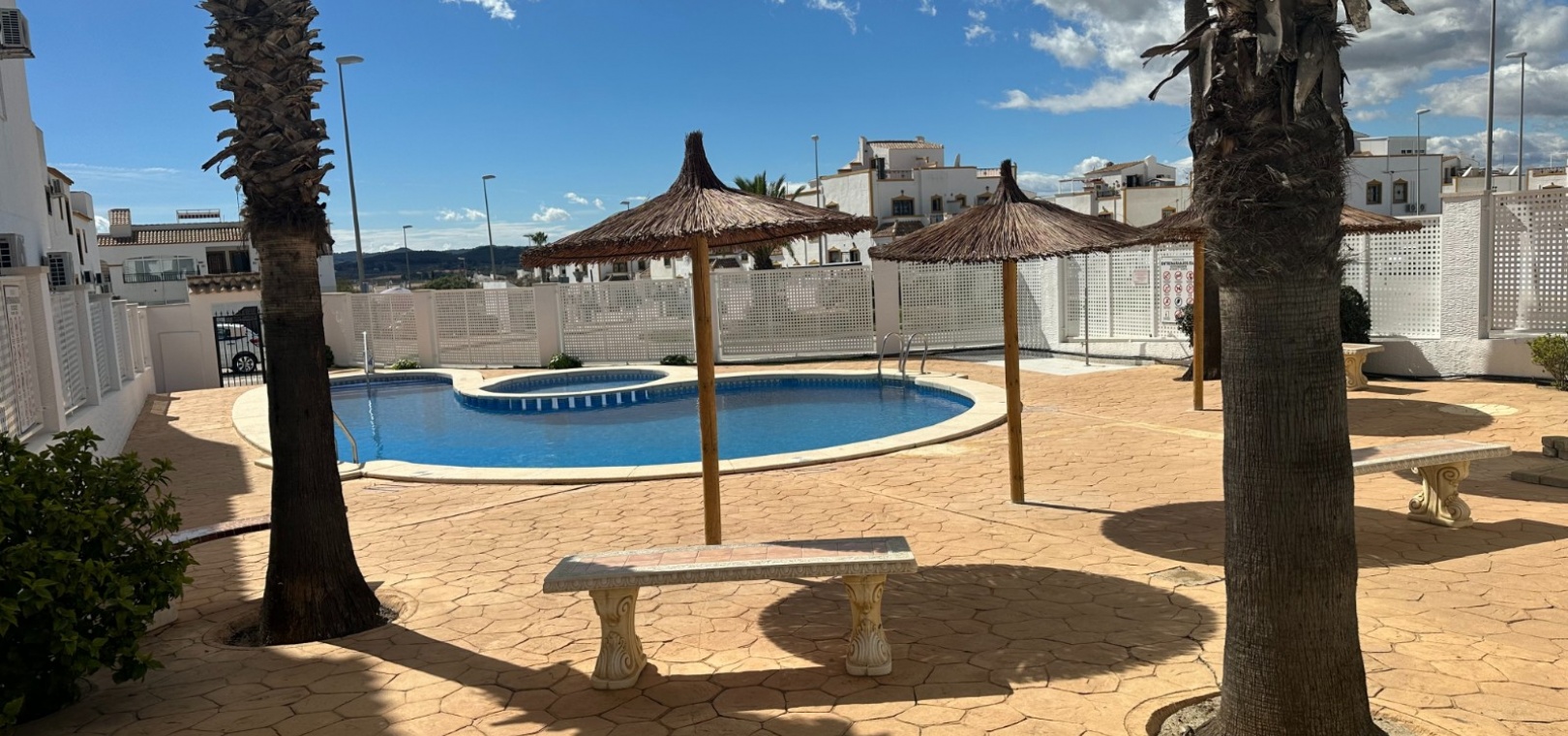 Diese nach Süden ausgerichtete Eckwohnung mit 2 Schlafzimmern und 1 Badezimmer befindet sich in begehrter Lage im Vistabella Golf und bietet die perfekte Kombination aus Komfort und malerischer Schönheit. Mit Blick auf den Park und einer beeindruckenden Aussicht bis hin zu den Salzseen von Torrevieja ist diese Immobilie ideal für alle, die ein ruhiges und dennoch gut angebundenes Zuhause suchen. Die Wohnung verfügt über einen hellen, luftigen Wohnbereich mit Zugang zu einem verglasten Balkon, der ganzjährig einen gemütlichen Ort zum Genießen der Aussicht bietet. Eine große private Sonnenterrasse bietet zusätzlichen Platz zum Entspannen und Genießen der Umgebung. Die Bewohner können außerdem den gepflegten Gemeinschaftspool nutzen, der die Attraktivität der Immobilie noch weiter steigert. Mit ihrer erstklassigen Lage, der schönen Aussicht und den einladenden Wohnräumen ist diese Wohnung eine ausgezeichnete Wahl für den Urlaub, als Kapitalanlage oder zum ganzjährigen Wohnen.