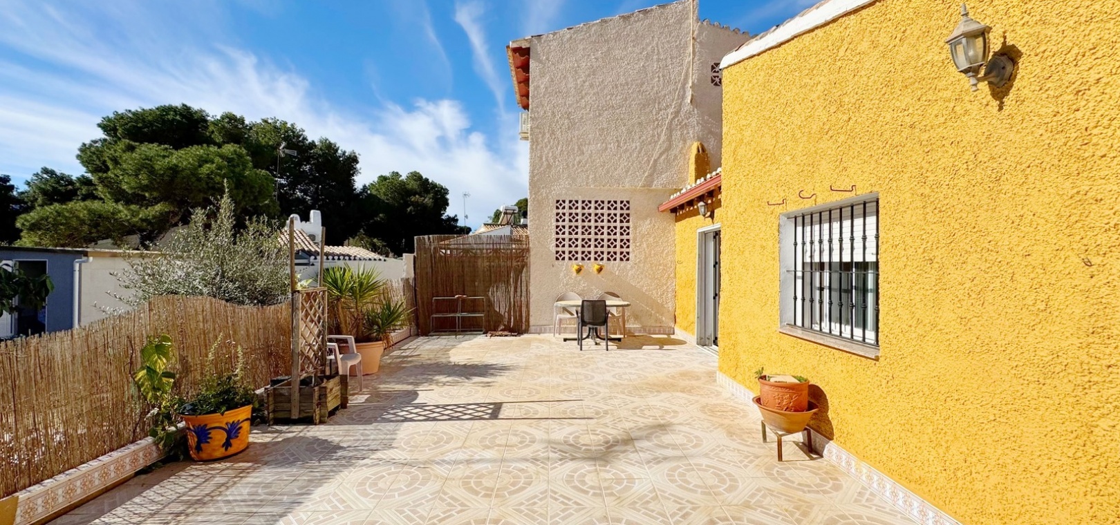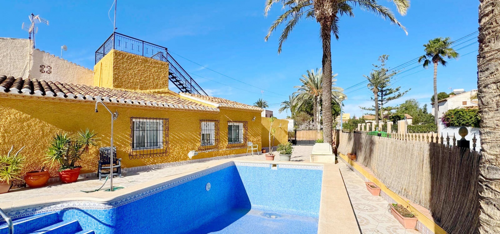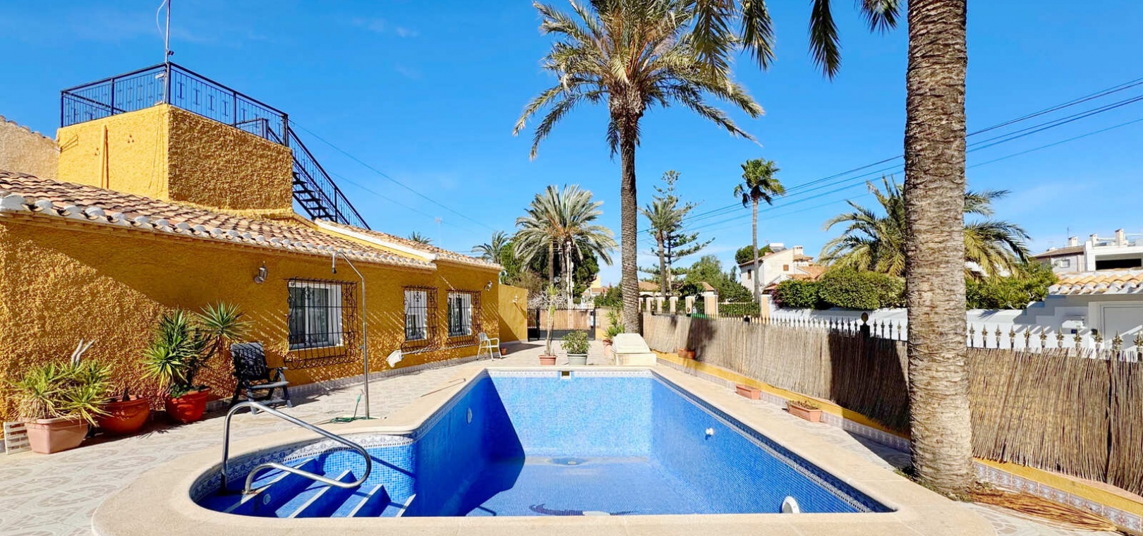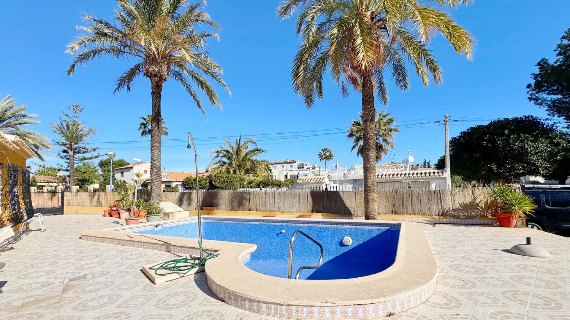 Diese charmante Villa im mediterranen Stil befindet sich in Punta Prima, einer der begehrtesten Gegenden von Orihuela Costa, nur 500 Meter vom Meer entfernt. Das Anwesen bietet eine bebaute Fläche von 104 m² auf einem 353 m² großen Grundstück, verteilt auf drei Schlafzimmer und zwei Badezimmer. Die großzügigen und hellen Wohnbereiche ermöglichen einen komfortablen Lebensstil.