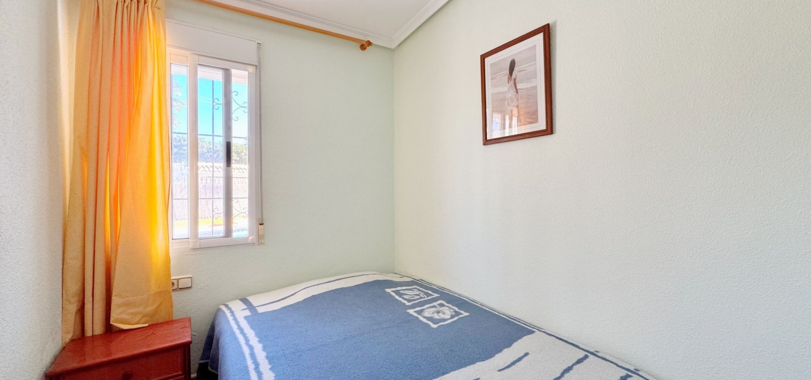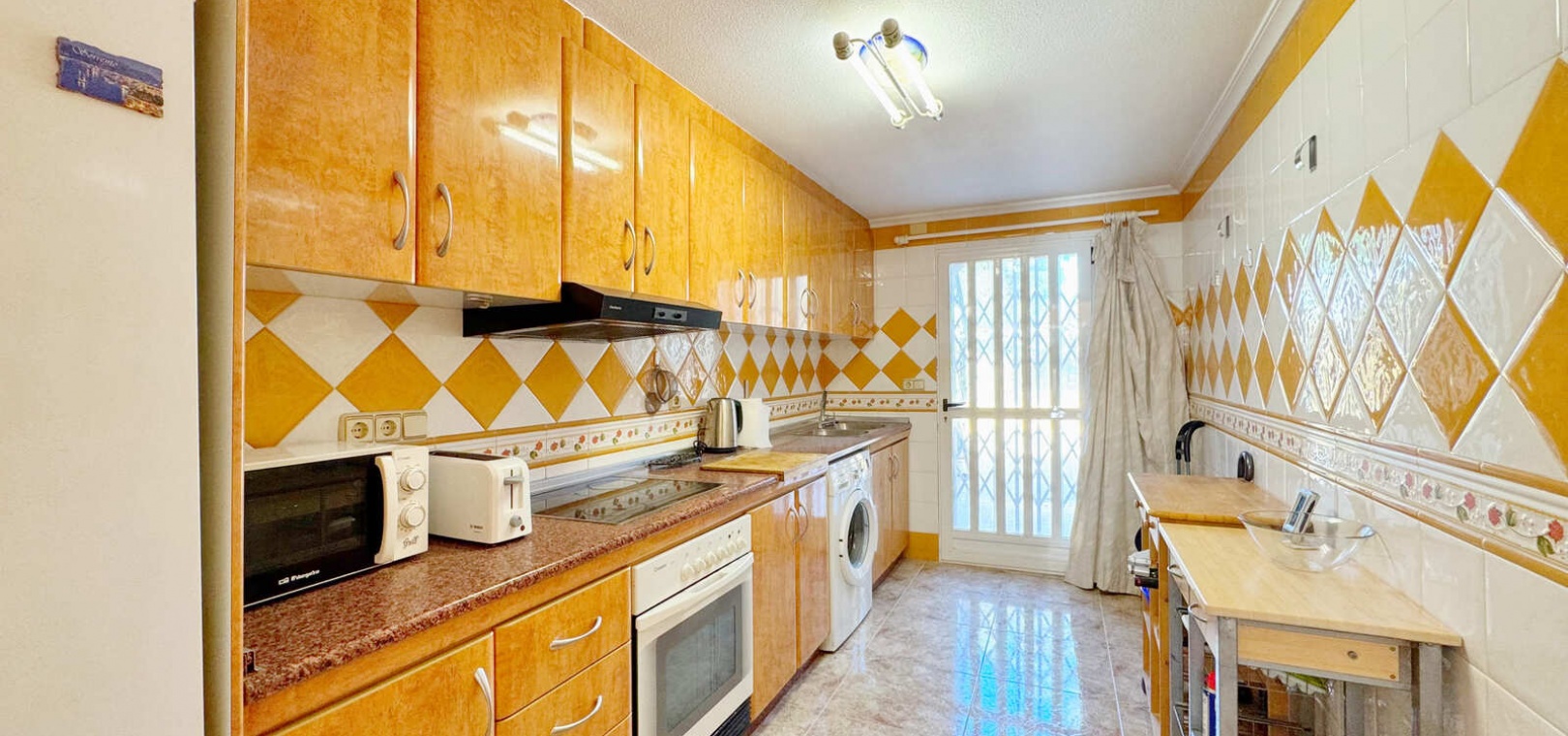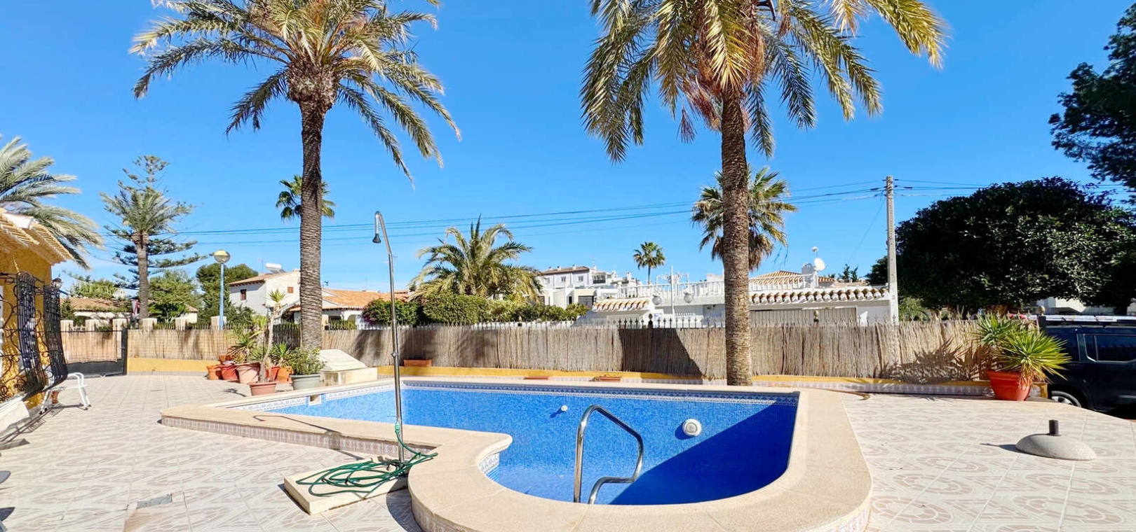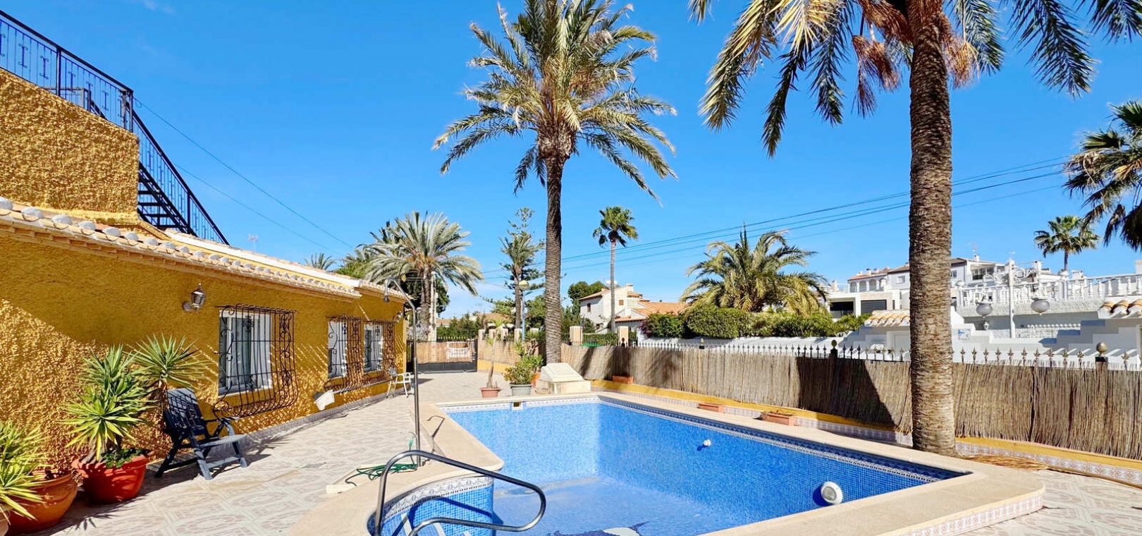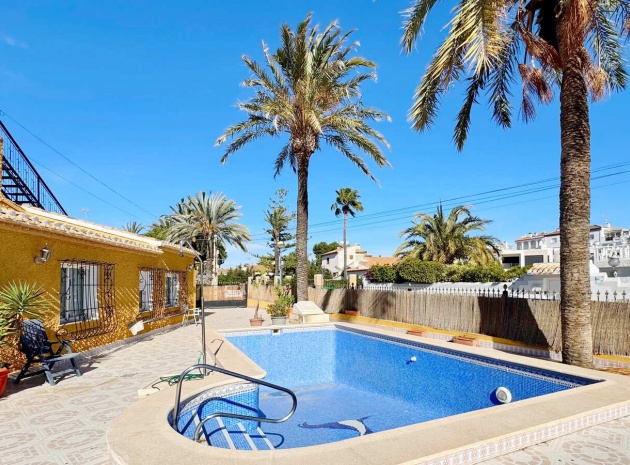 Diese charmante Villa im mediterranen Stil befindet sich in Punta Prima, einer der begehrtesten Gegenden von Orihuela Costa, nur 500 Meter vom Meer entfernt. Das Anwesen bietet eine bebaute Fläche von 104 m² auf einem 353 m² großen Grundstück, verteilt auf drei Schlafzimmer und zwei Badezimmer. Die großzügigen und hellen Wohnbereiche ermöglichen einen komfortablen Lebensstil.