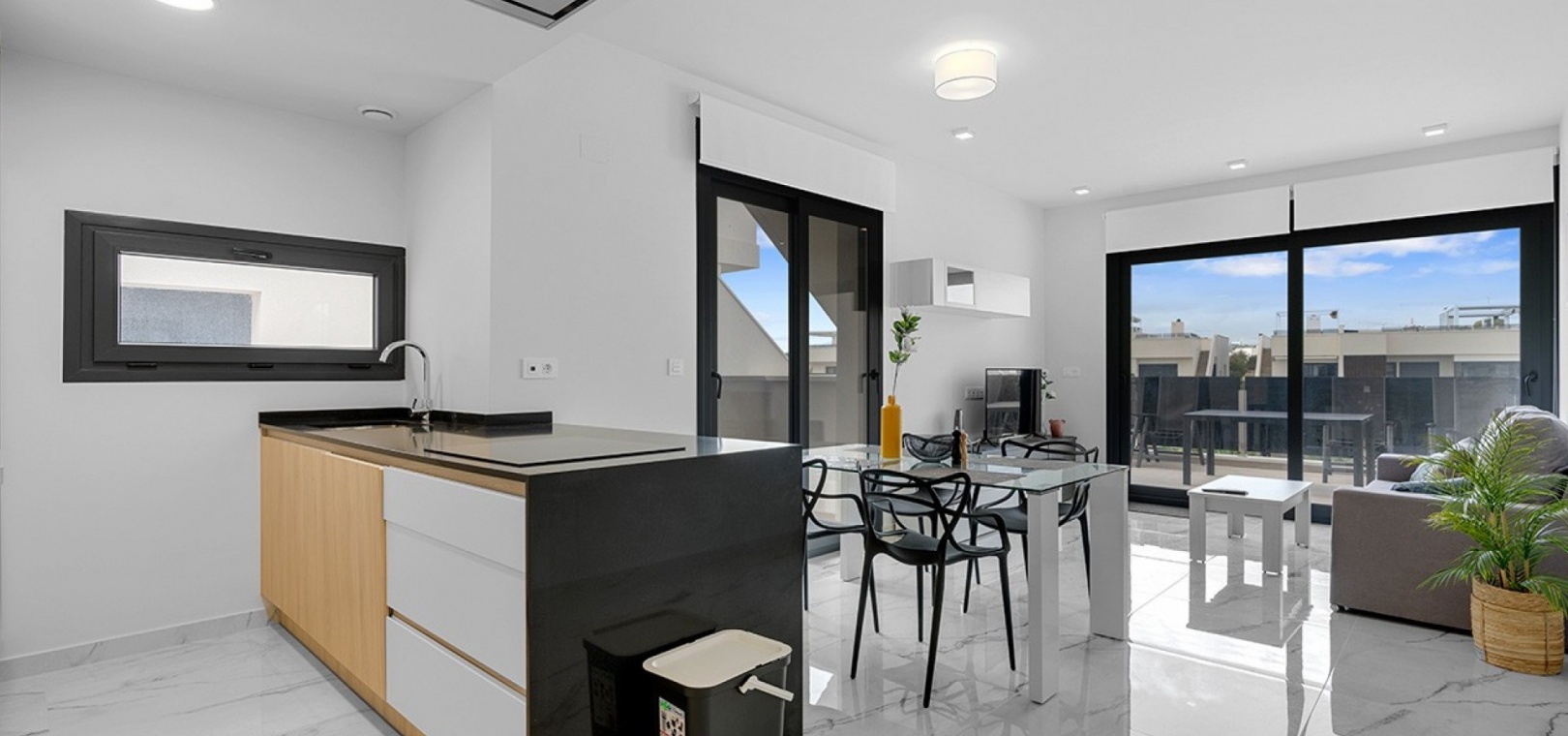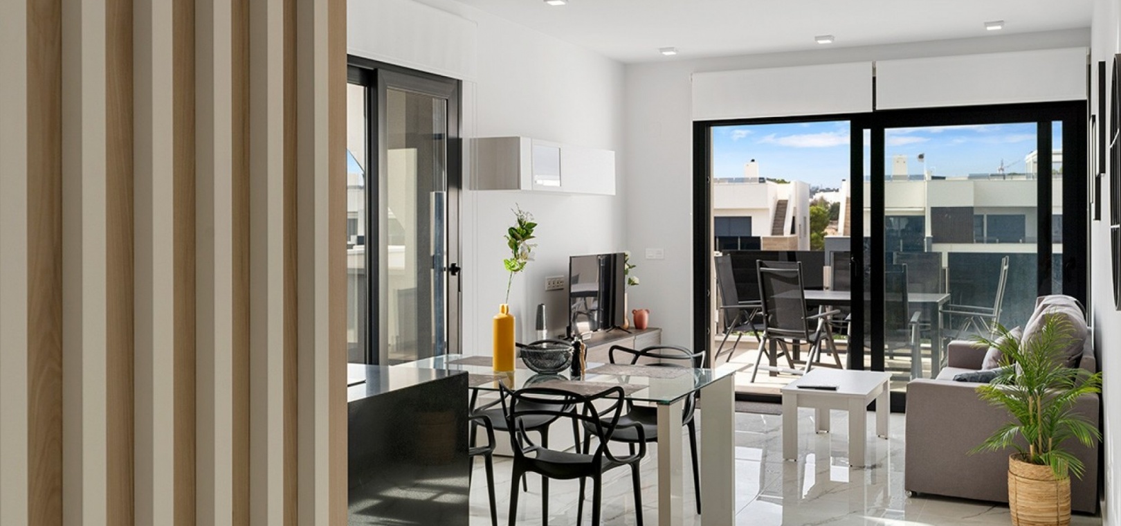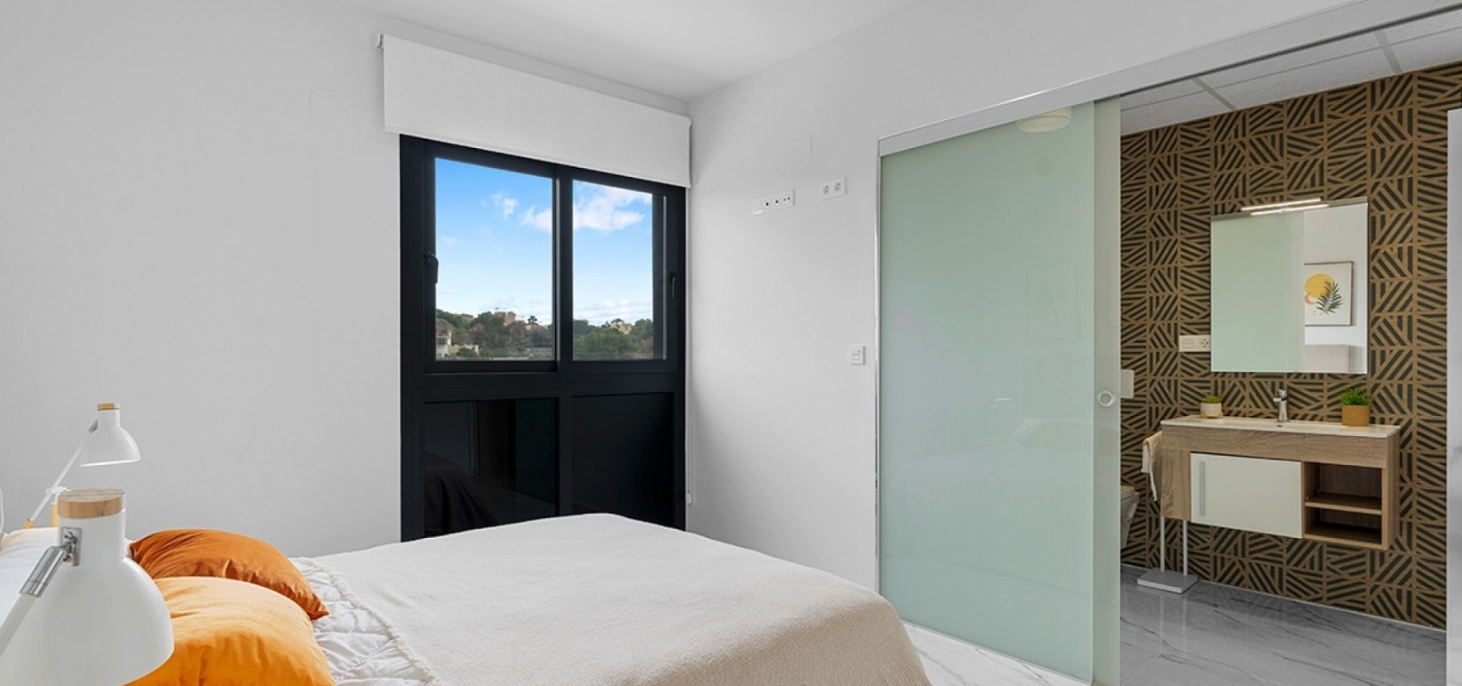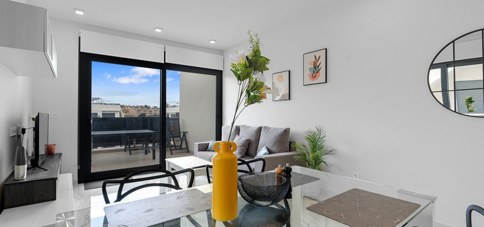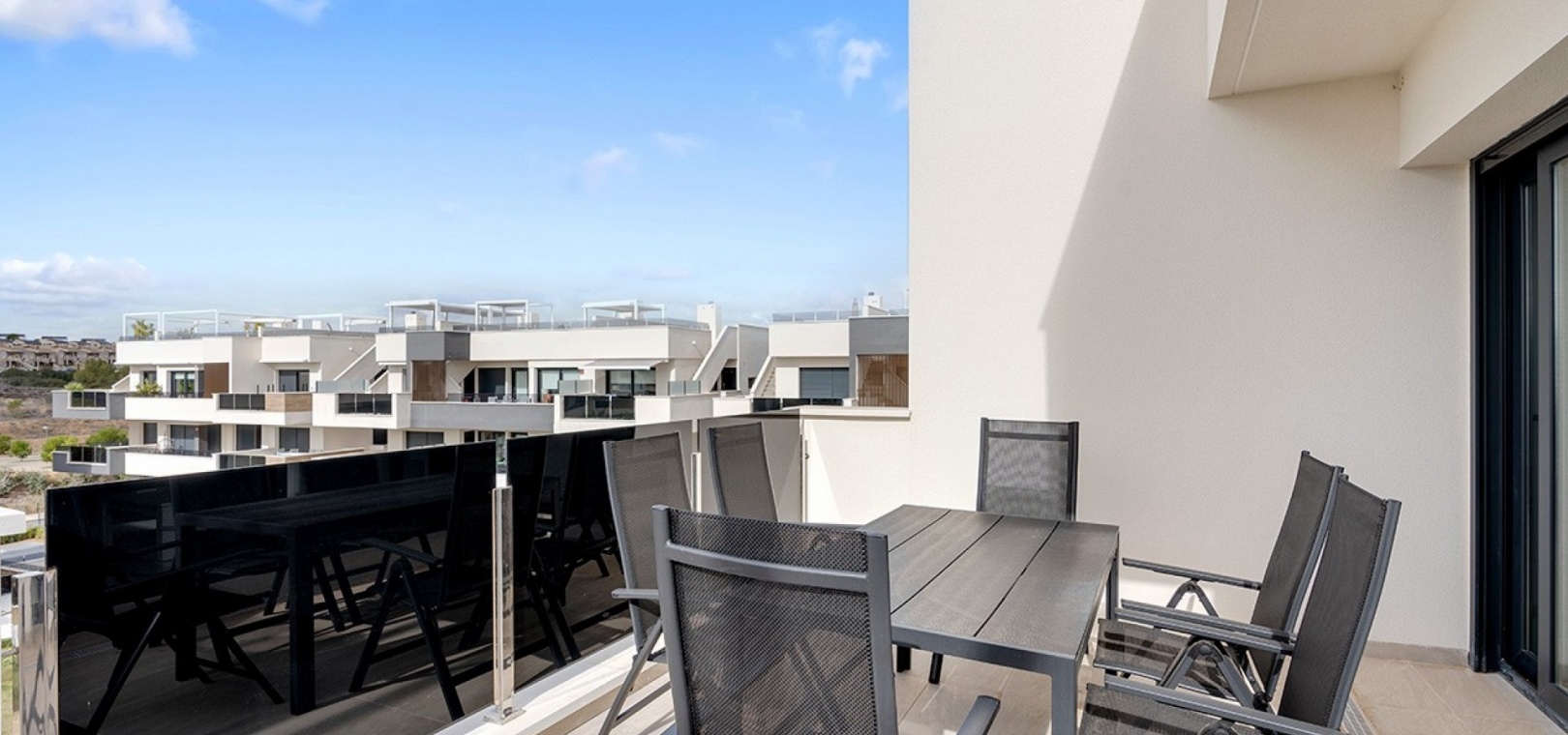 Eine moderne Wohnung in der exklusiven Wohnanlage Amanecer IX in Orihuela Costa. Dieses Haus verbindet zeitgenössisches Design mit Funktionalität und bietet helle Räume und hochwertige Ausstattung – ideal, um den mediterranen Lebensstil zu genießen.