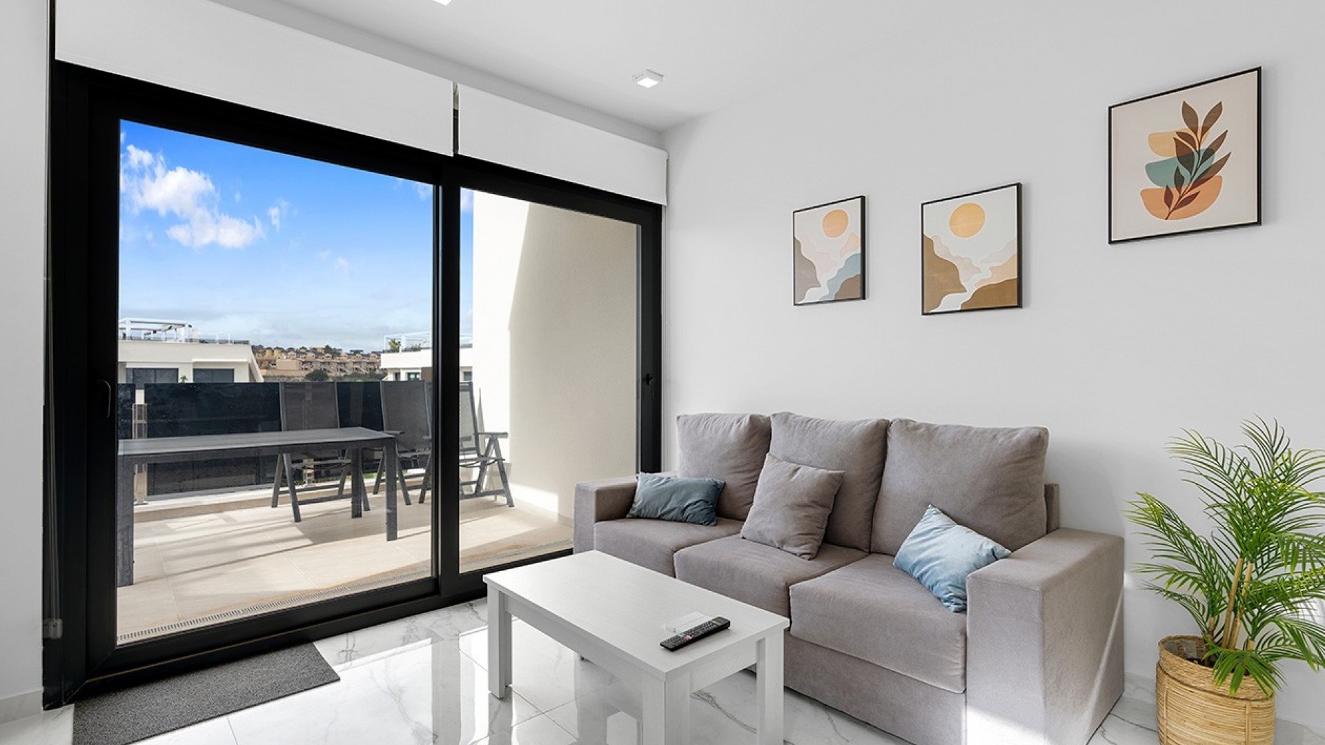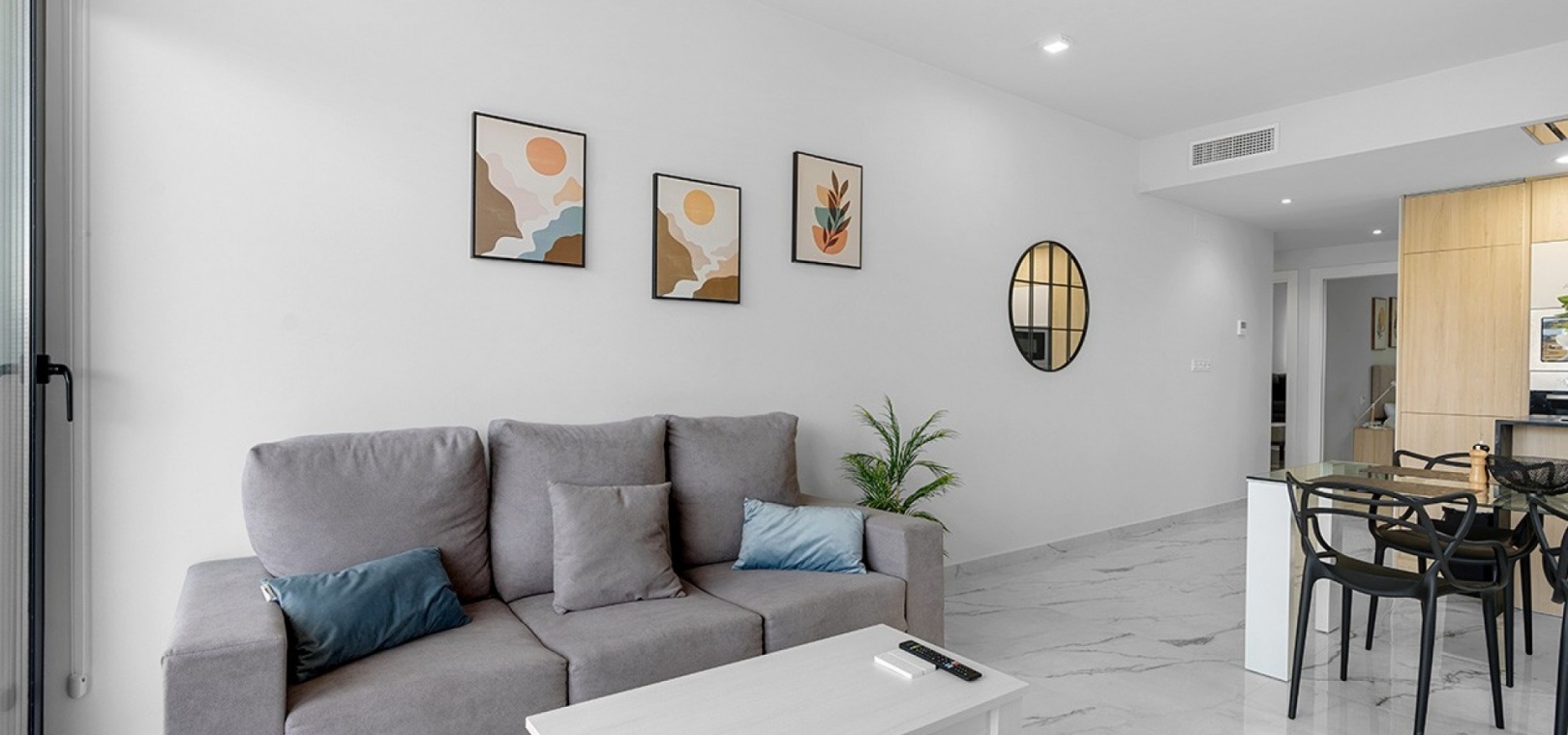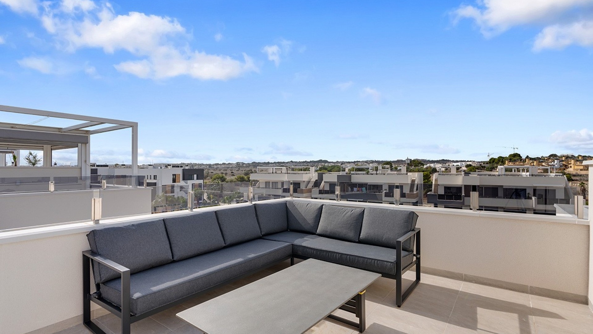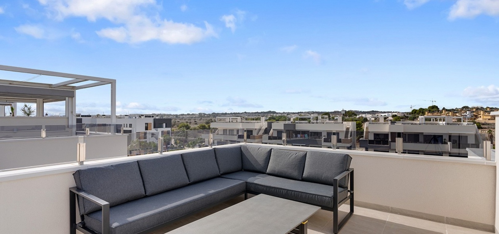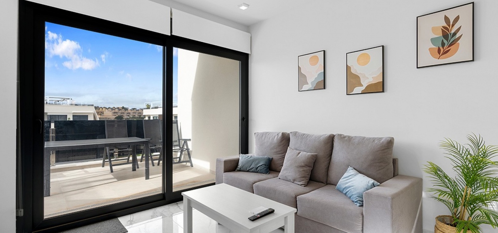 Eine moderne Wohnung in der exklusiven Wohnanlage Amanecer IX in Orihuela Costa. Dieses Haus verbindet zeitgenössisches Design mit Funktionalität und bietet helle Räume und hochwertige Ausstattung – ideal, um den mediterranen Lebensstil zu genießen.