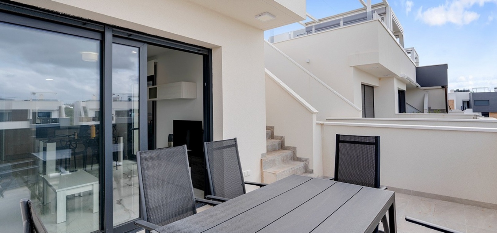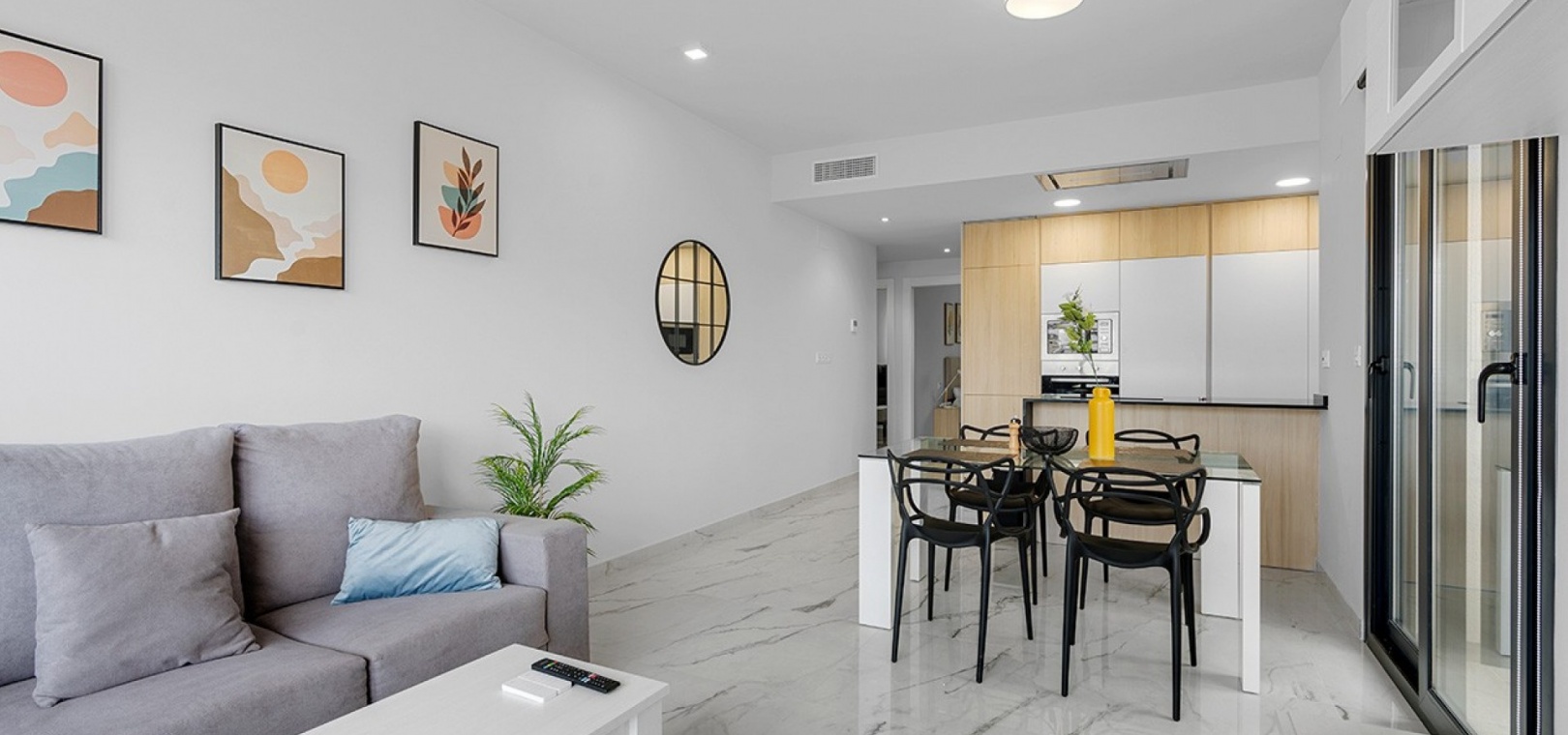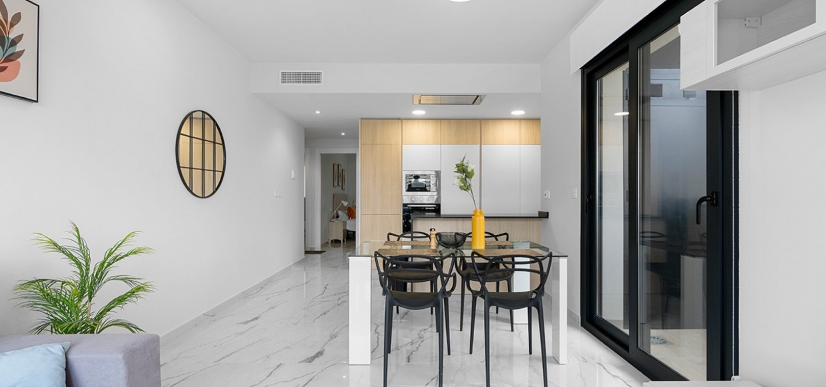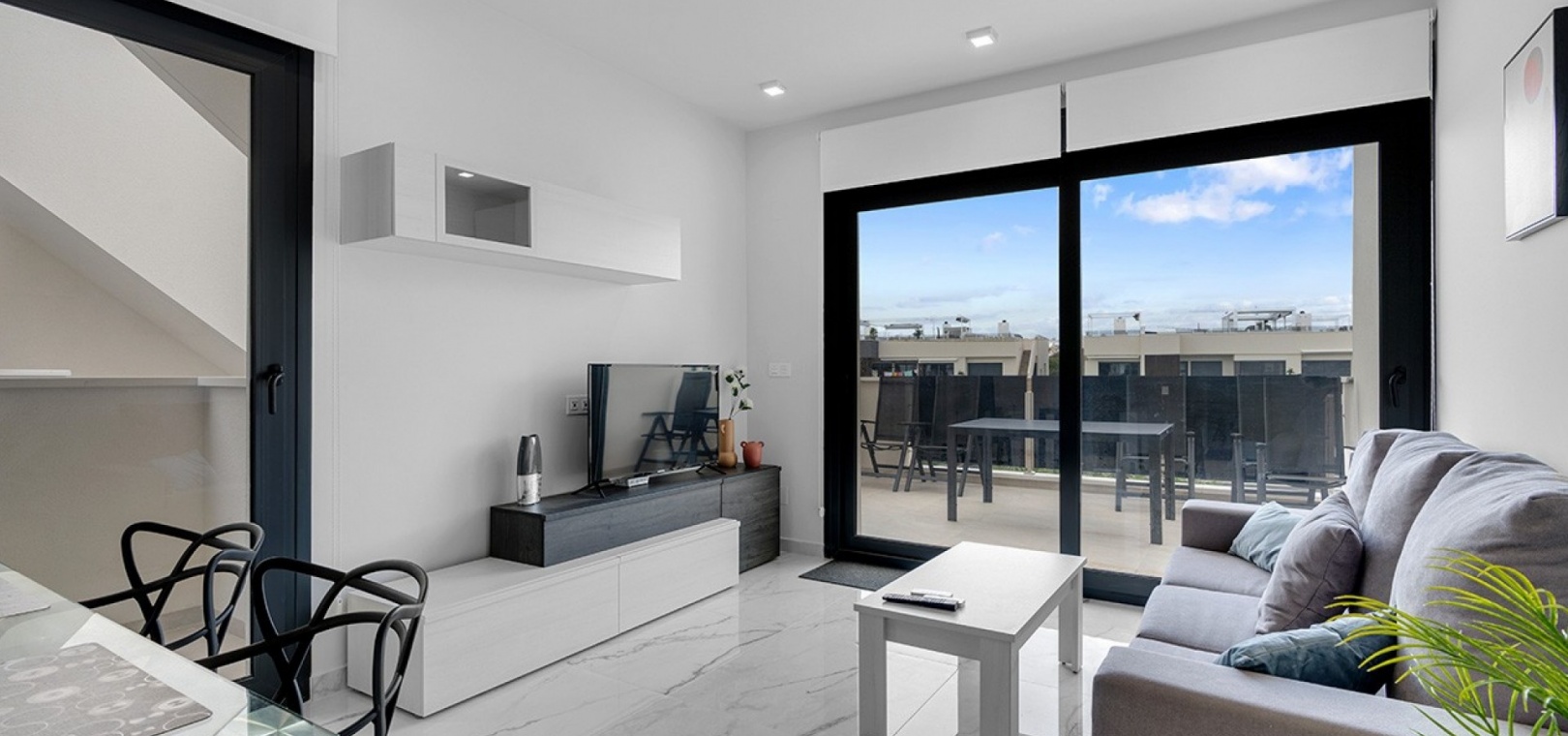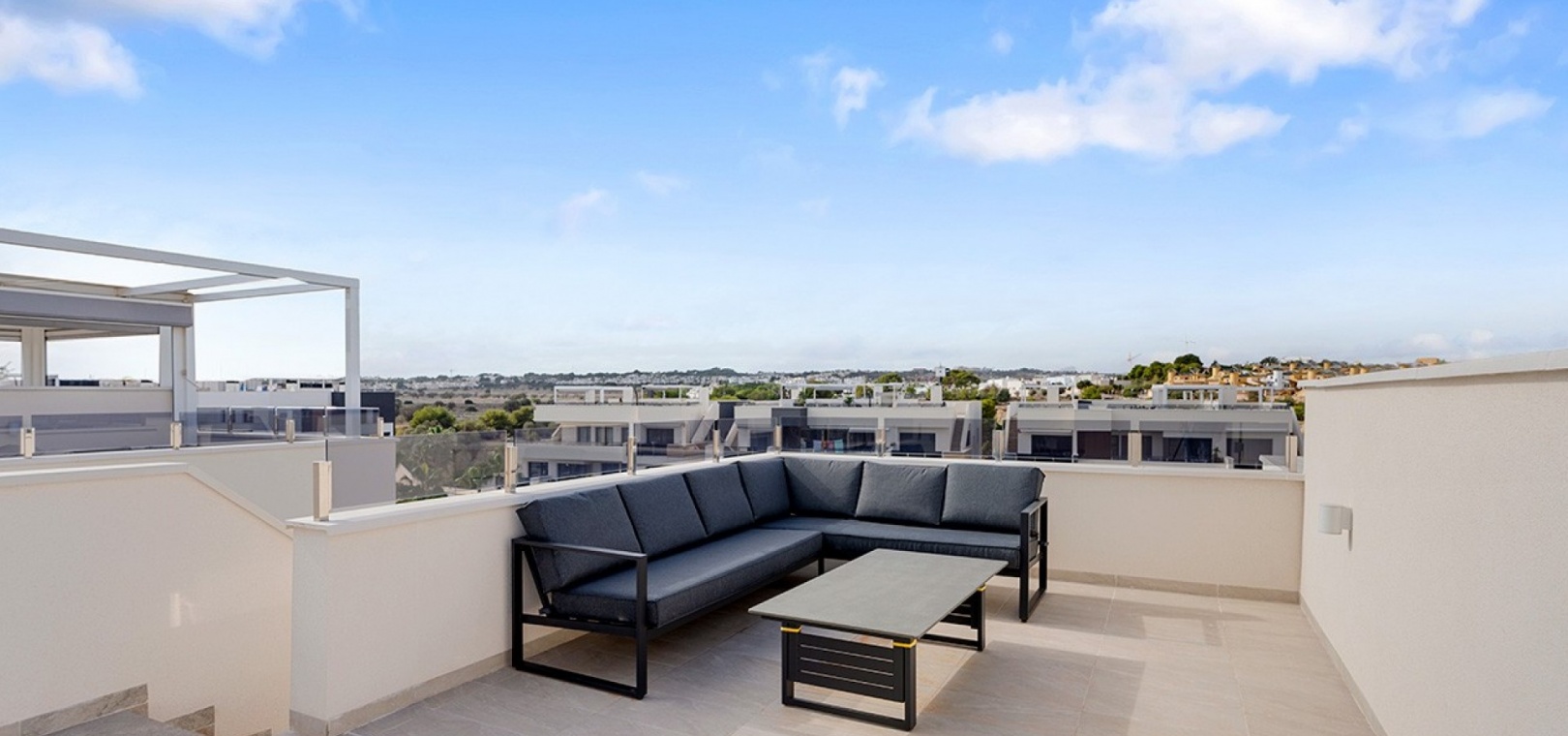 Eine moderne Wohnung in der exklusiven Wohnanlage Amanecer IX in Orihuela Costa. Dieses Haus verbindet zeitgenössisches Design mit Funktionalität und bietet helle Räume und hochwertige Ausstattung – ideal, um den mediterranen Lebensstil zu genießen.