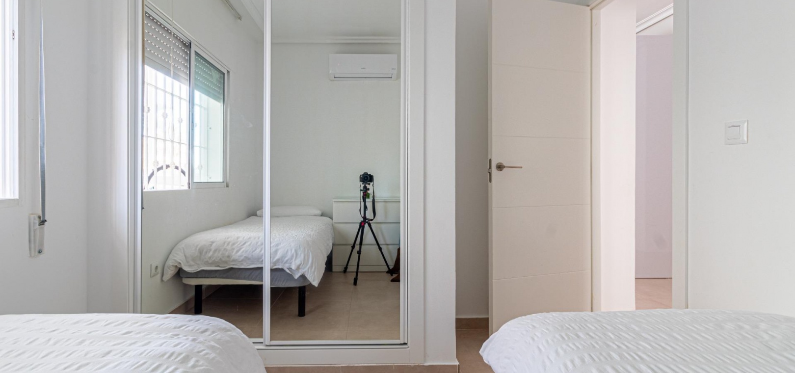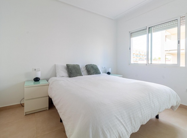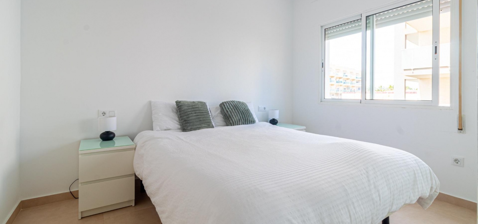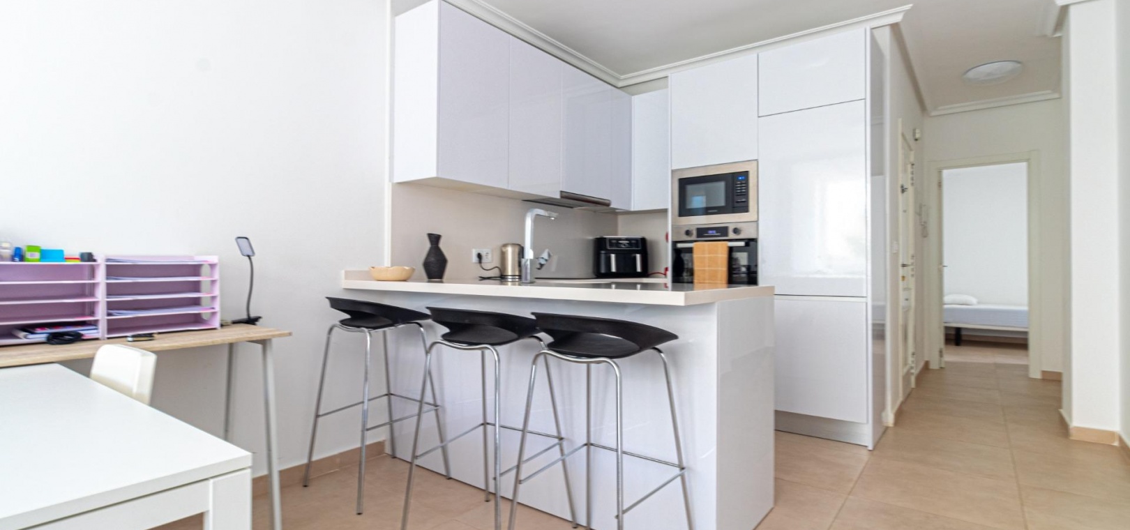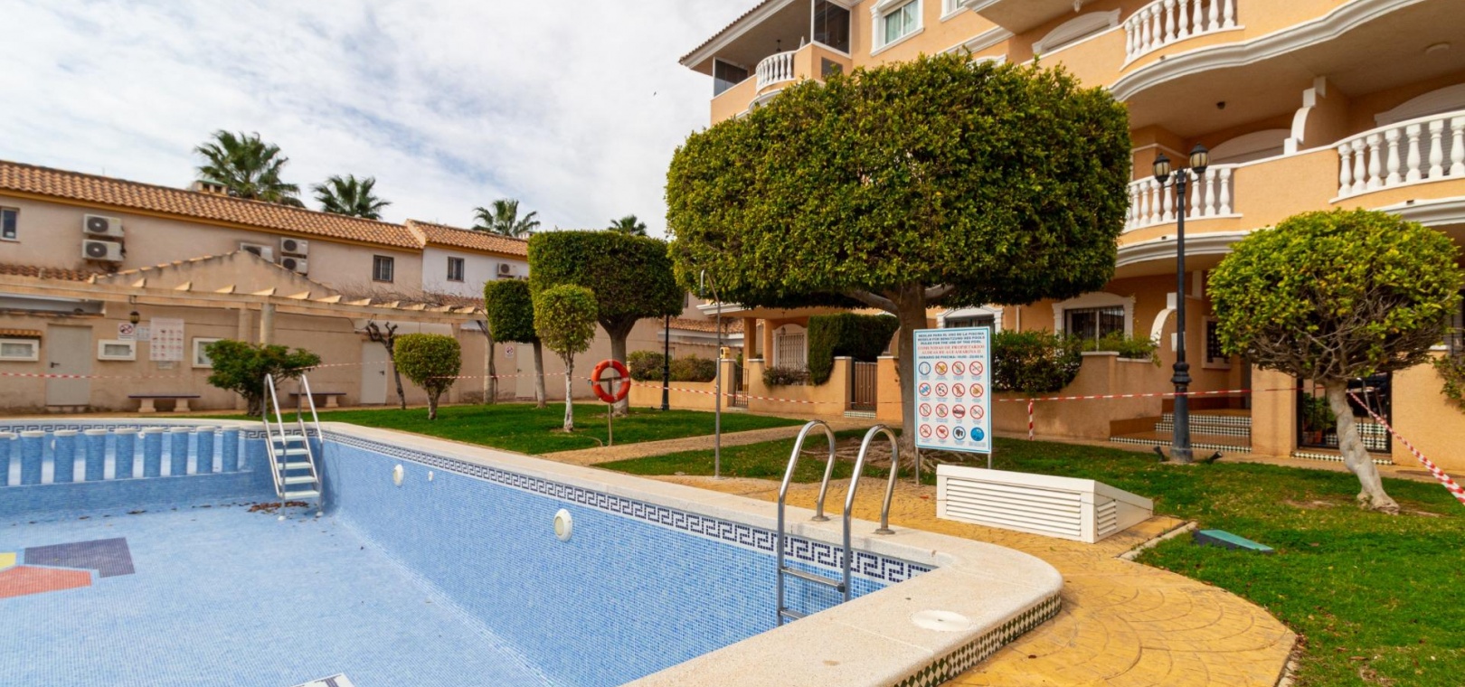 Willkommen in Ihrem neuen Zuhause in der exklusiven Wohnanlage Aldeas de Aguamarina II. Diese komplett renovierte und möblierte Wohnung im ersten Stockwerk bietet ein unvergleichliches Wohnerlebnis. Genießen Sie den unverbauten Blick auf die Wohnanlage und genießen Sie eine ruhige und entspannte Atmosphäre. Drei Schlafzimmer, jedes mit eigenem Einbauschrank, bieten Ihnen ausreichend Platz für Ihren Komfort und den Ihrer Familie. Das moderne und funktionale Badezimmer ergänzt das Design perfekt. Die offene Küche, die zum geräumigen Wohn-Esszimmer führt, schafft eine helle und luftige Atmosphäre – ideal für gemütliche Stunden mit Familie oder Freunden. Das Wohnzimmer mit seinen großen, bodentiefen Fenstern ist den ganzen Tag über lichtdurchflutet und schafft eine warme und einladende Atmosphäre. Die Klimaanlage sorgt ganzjährig für eine angenehme Temperatur. Aldeas de Aguamarina II befindet sich in Cabo Roig, einer außergewöhnlichen Wohngegend an der Costa Blanca. Cabo Roig ist berühmt für seine kristallklaren, goldenen Sandstrände, die sich perfekt zum Sonnenbaden, Schwimmen oder für Wassersport eignen. Nur einen kurzen Spaziergang vom Apartment entfernt finden Sie den Strand Cala Capitan mit seinem ruhigen Wasser und seiner familienfreundlichen Atmosphäre oder den lebhaften Strand La Zenia mit seiner langen Promenade voller Restaurants und Geschäfte. Die Lage dieses Apartments ist unschlagbar. Neben der Nähe zu den Stränden haben Sie einfachen Zugang zu einer Vielzahl von Dienstleistungen, darunter Supermärkte, Restaurants, Bars und Einkaufszentren. Genießen Sie außerdem die zahlreichen Golfplätze in der Umgebung sowie die natürliche Schönheit des Naturparks Salinas y Arenales de San Pedro del Pinatar, ein Paradies für Wander- und Vogelbeobachter. Kurz gesagt: Dieses Apartment bietet die perfekte Kombination aus Komfort, Stil und einer privilegierten Lage. Verpassen Sie nicht die Gelegenheit, an einem der charmantesten Orte der Costa Blanca zu wohnen. Kontaktieren Sie uns für einen Besichtigungstermin!