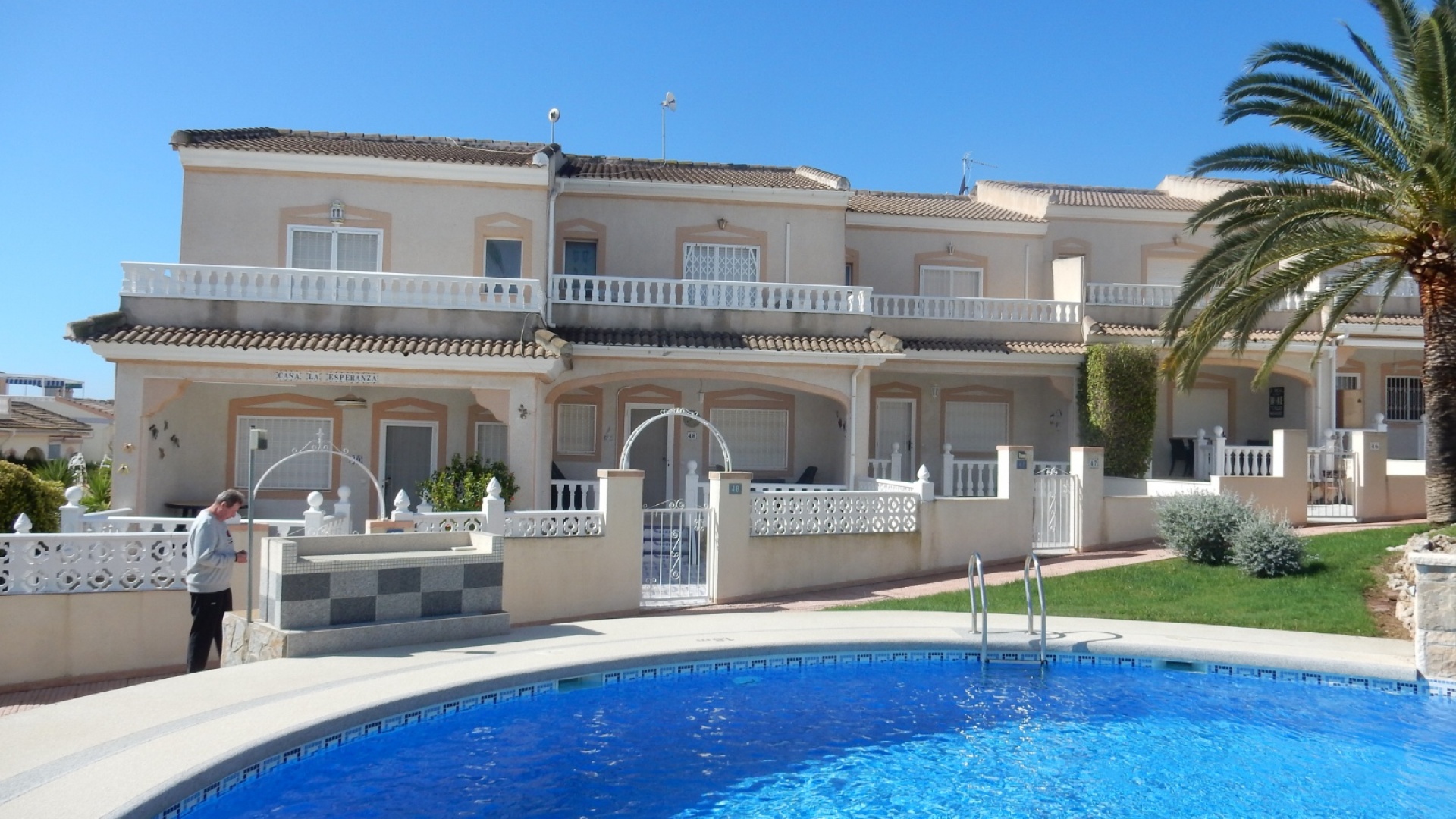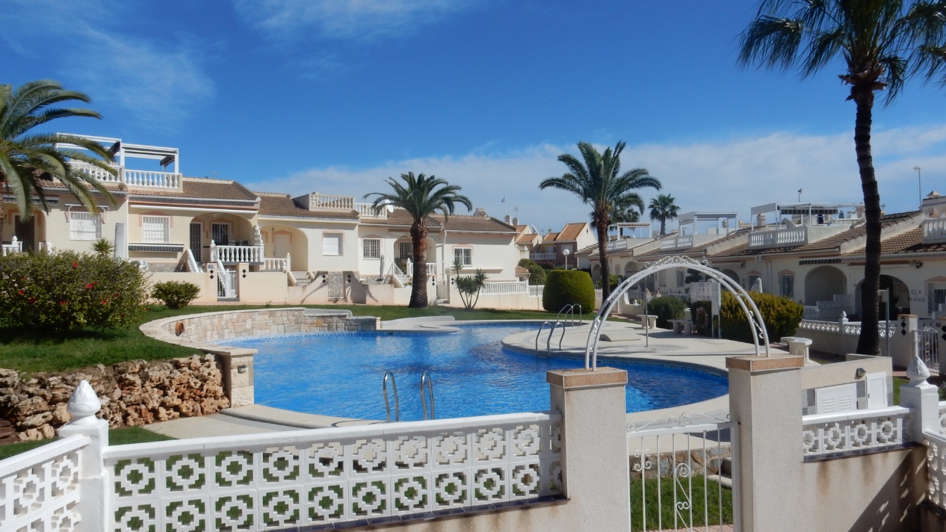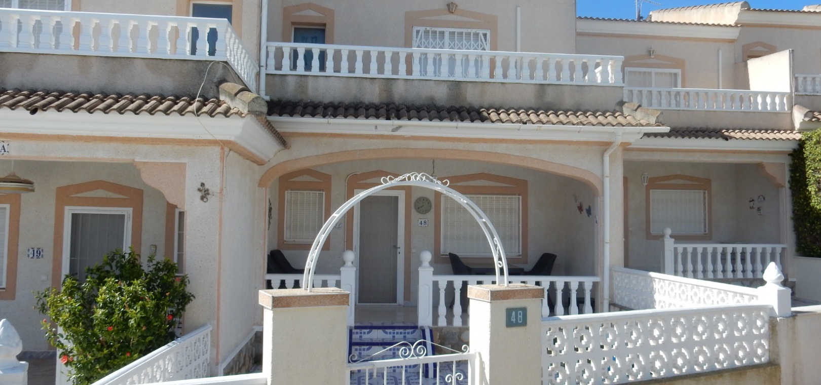 Dieses charmante Stadthaus „Lola“ mit 3 Schlafzimmern und 2 Bädern befindet sich in der begehrten Wohnanlage Granada in Doña Pepa. Mit atemberaubendem Blick auf den Gemeinschaftspool bietet dieses Haus eine ruhige und entspannte Atmosphäre – perfekt für alle, die die spanische Sonne genießen möchten. Das Stadthaus ist gut geschnitten und verfügt über großzügige Wohnbereiche, die sich ideal für Familien und Gäste eignen. Im Inneren erwarten Sie moderne Ausstattung und eine komfortable Raumaufteilung mit drei großzügigen Schlafzimmern und zwei stilvollen Badezimmern. Der offene Wohnbereich geht nahtlos in eine private Terrasse über, auf der Sie entspannen und die wunderschöne Umgebung genießen können. Die Lage ist unschlagbar – nur wenige Gehminuten von lokalen Bars, Restaurants und zahlreichen Annehmlichkeiten entfernt, sodass Sie alles, was Sie brauchen, direkt vor der Haustür haben. Ob Sie einen ruhigen Rückzugsort oder ein Zuhause mit guter Anbindung an das pulsierende Leben der Region suchen – das Stadthaus Lola in Doña Pepa bietet die perfekte Mischung aus Komfort, Bequemlichkeit und Stil.