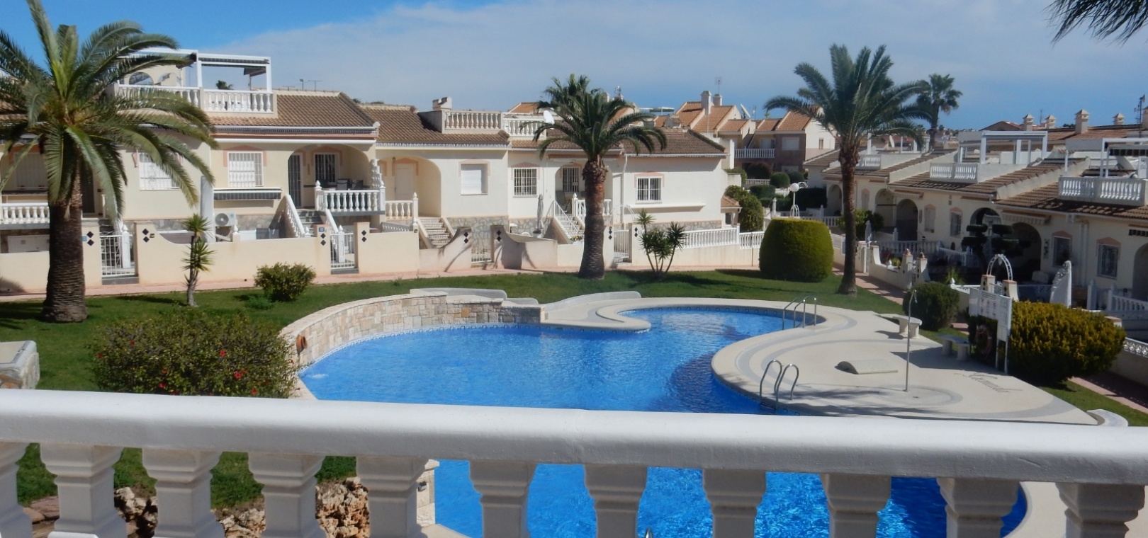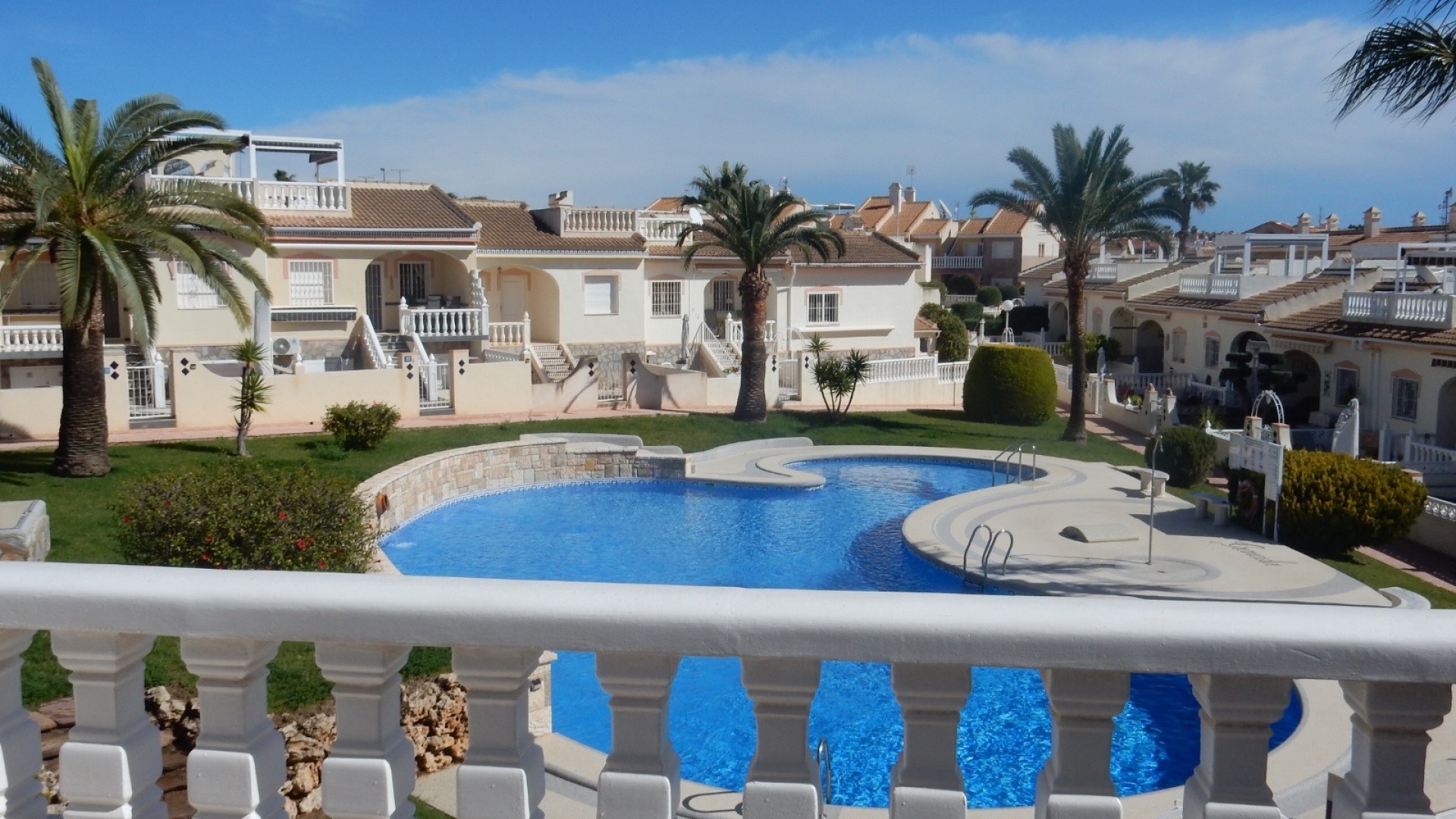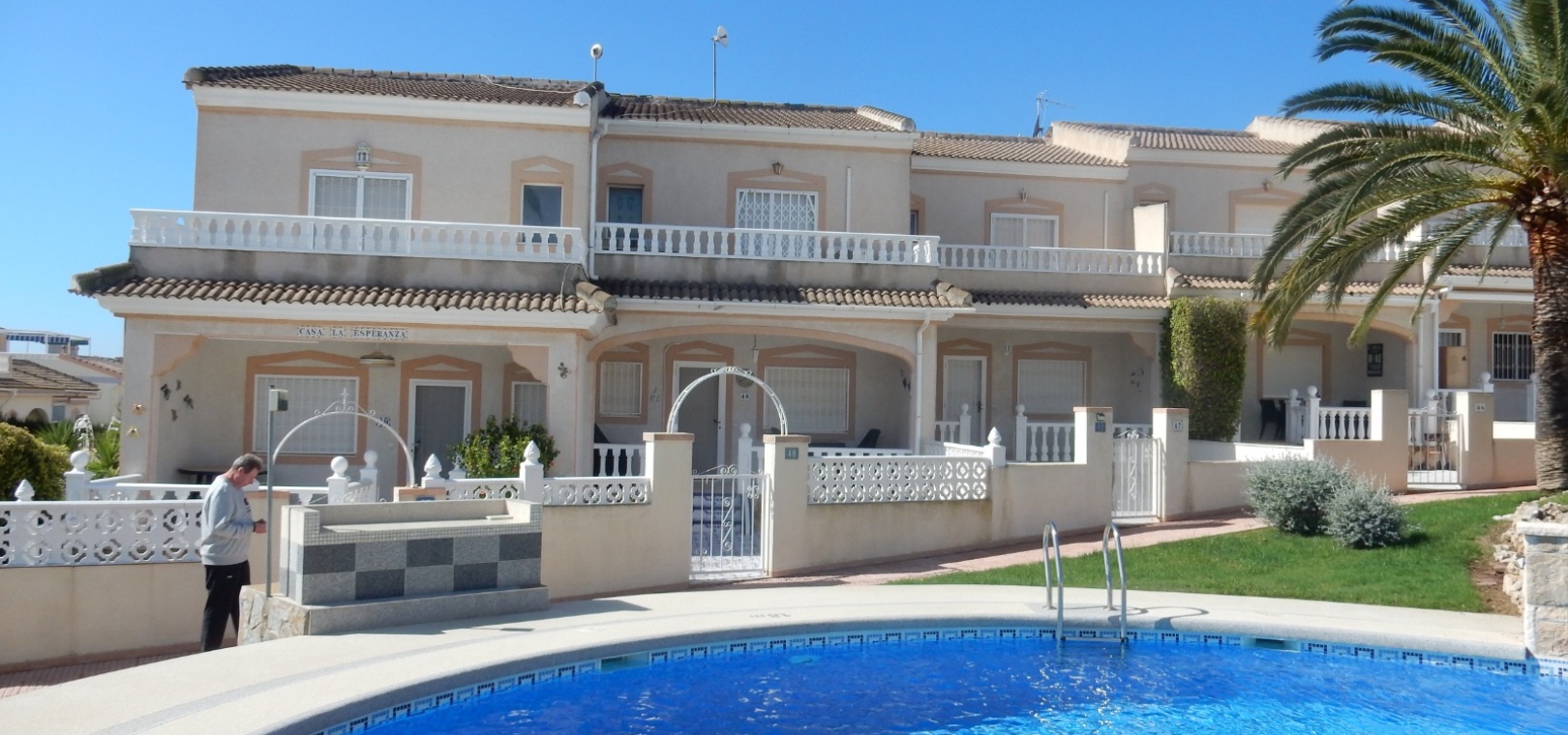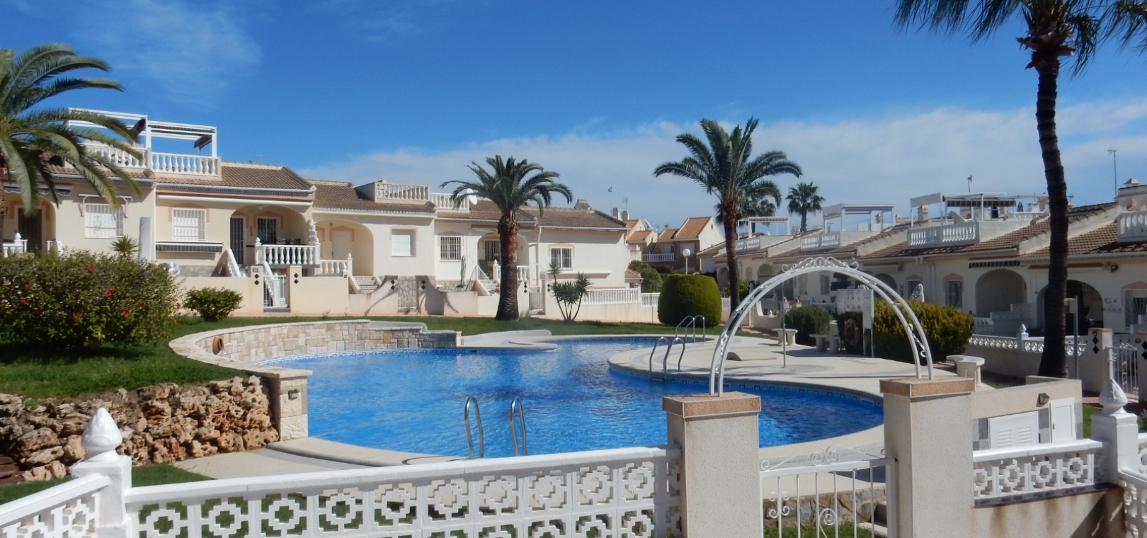 Dieses charmante Stadthaus „Lola“ mit 3 Schlafzimmern und 2 Bädern befindet sich in der begehrten Wohnanlage Granada in Doña Pepa. Mit atemberaubendem Blick auf den Gemeinschaftspool bietet dieses Haus eine ruhige und entspannte Atmosphäre – perfekt für alle, die die spanische Sonne genießen möchten. Das Stadthaus ist gut geschnitten und verfügt über großzügige Wohnbereiche, die sich ideal für Familien und Gäste eignen. Im Inneren erwarten Sie moderne Ausstattung und eine komfortable Raumaufteilung mit drei großzügigen Schlafzimmern und zwei stilvollen Badezimmern. Der offene Wohnbereich geht nahtlos in eine private Terrasse über, auf der Sie entspannen und die wunderschöne Umgebung genießen können. Die Lage ist unschlagbar – nur wenige Gehminuten von lokalen Bars, Restaurants und zahlreichen Annehmlichkeiten entfernt, sodass Sie alles, was Sie brauchen, direkt vor der Haustür haben. Ob Sie einen ruhigen Rückzugsort oder ein Zuhause mit guter Anbindung an das pulsierende Leben der Region suchen – das Stadthaus Lola in Doña Pepa bietet die perfekte Mischung aus Komfort, Bequemlichkeit und Stil.