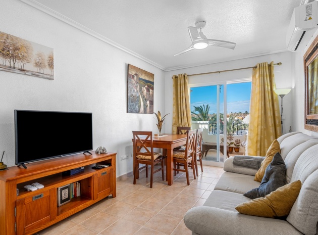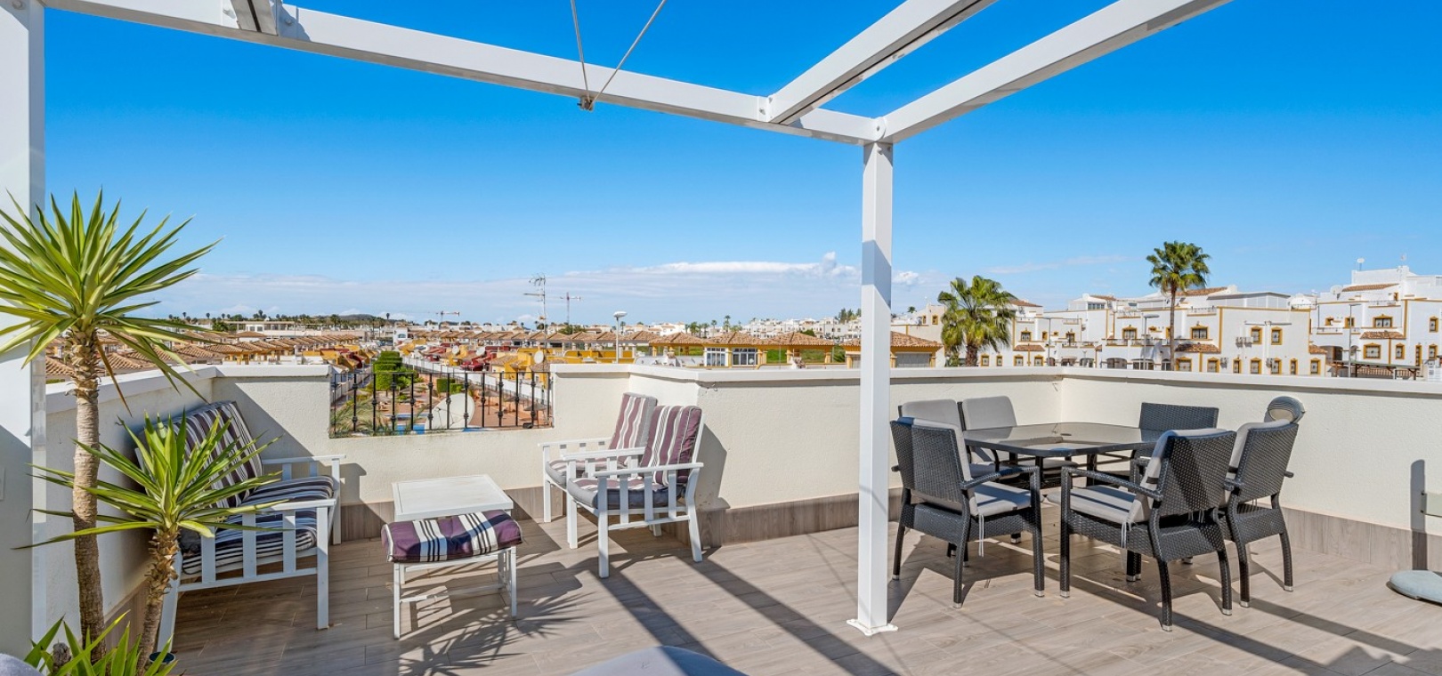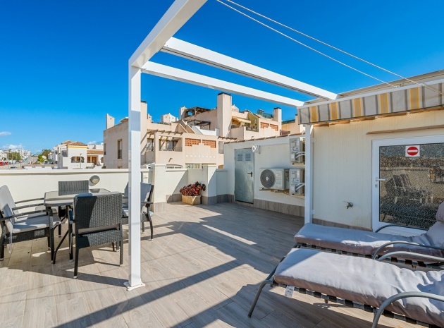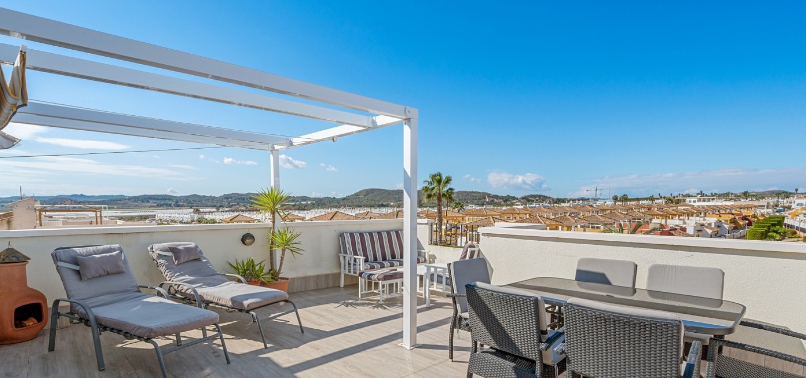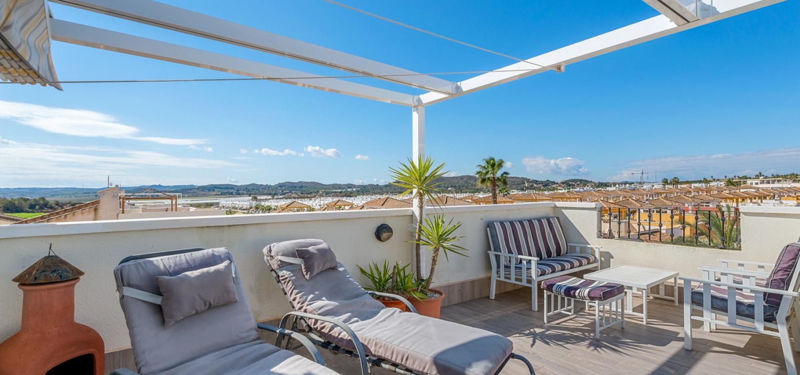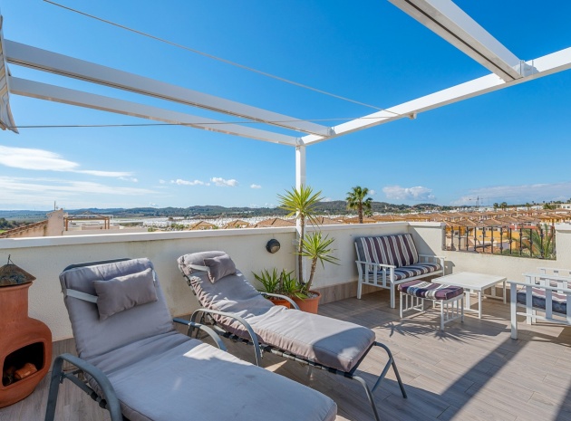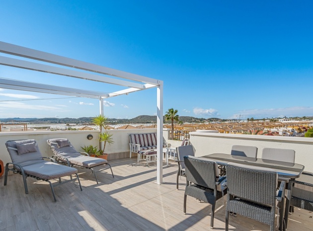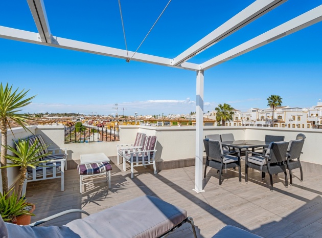 Eine nach Westen ausgerichtete Dachgeschosswohnung mit 2 Schlafzimmern und 2 Bädern sowie einem privaten Solarium und Garten auf dem Dach in Laguna Green, Vistabella Golf, Costa Blanca.
