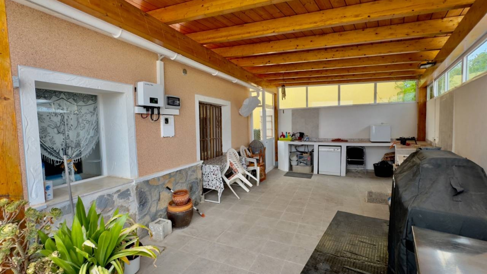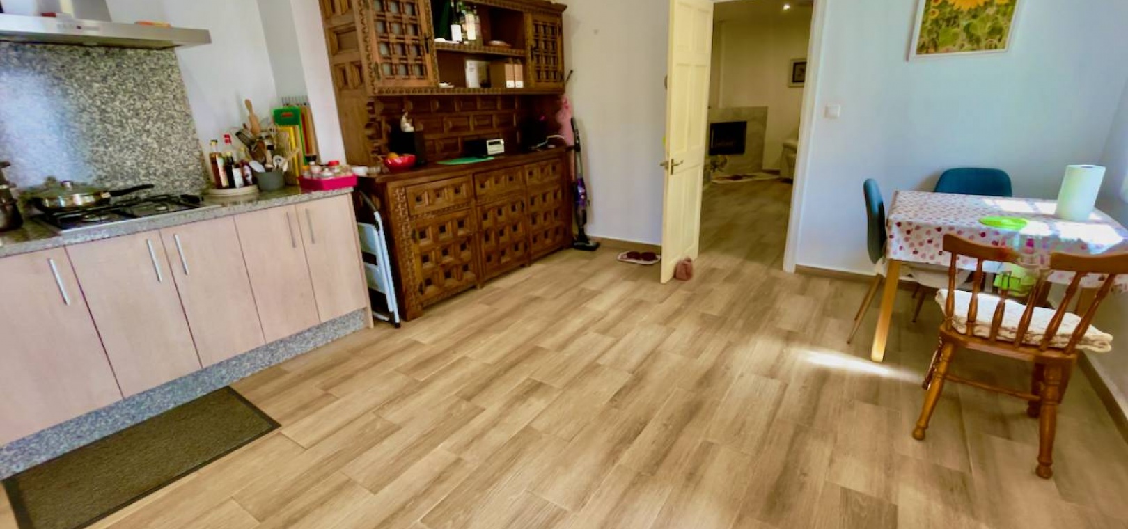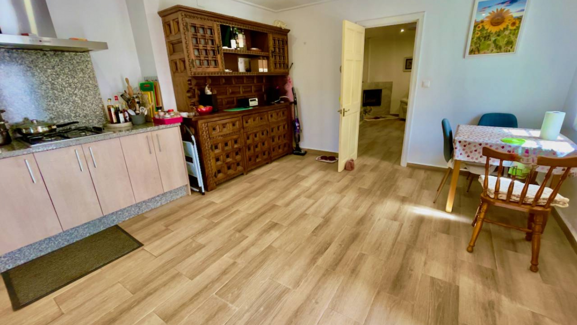 Dies ist ein schönes, freistehendes Landhaus in ländlicher Umgebung, nur 5 Autominuten vom Dorf entfernt. Das Anwesen wurde vor zwei Jahren komplett renoviert und mit schönen Fliesenböden ausgestattet. Es verfügt über zwei Schlafzimmer im Erdgeschoss und ein Familienbadezimmer mit Dusche. Es besteht die Möglichkeit, ein drittes Schlafzimmer in der Garage einzurichten. Beim Betreten des Anwesens gelangt man in eine große Küche mit Essbereich, ein separates Wohnzimmer mit Kamin und Türen, die in den Garten führen. Auf der Rückseite befindet sich ein praktischer Hauswirtschaftsraum mit separatem WC. Eine Treppe führt zur Dachterrasse mit herrlichem Blick auf Ackerland und Berge. Seit der ersten Vermarktung haben die derzeitigen Eigentümer Solarmodule (mit virtueller Batterie) installiert, wodurch sich die monatlichen Stromrechnungen (bei aktuellem Verbrauch) auf rund 20 Euro reduziert haben.