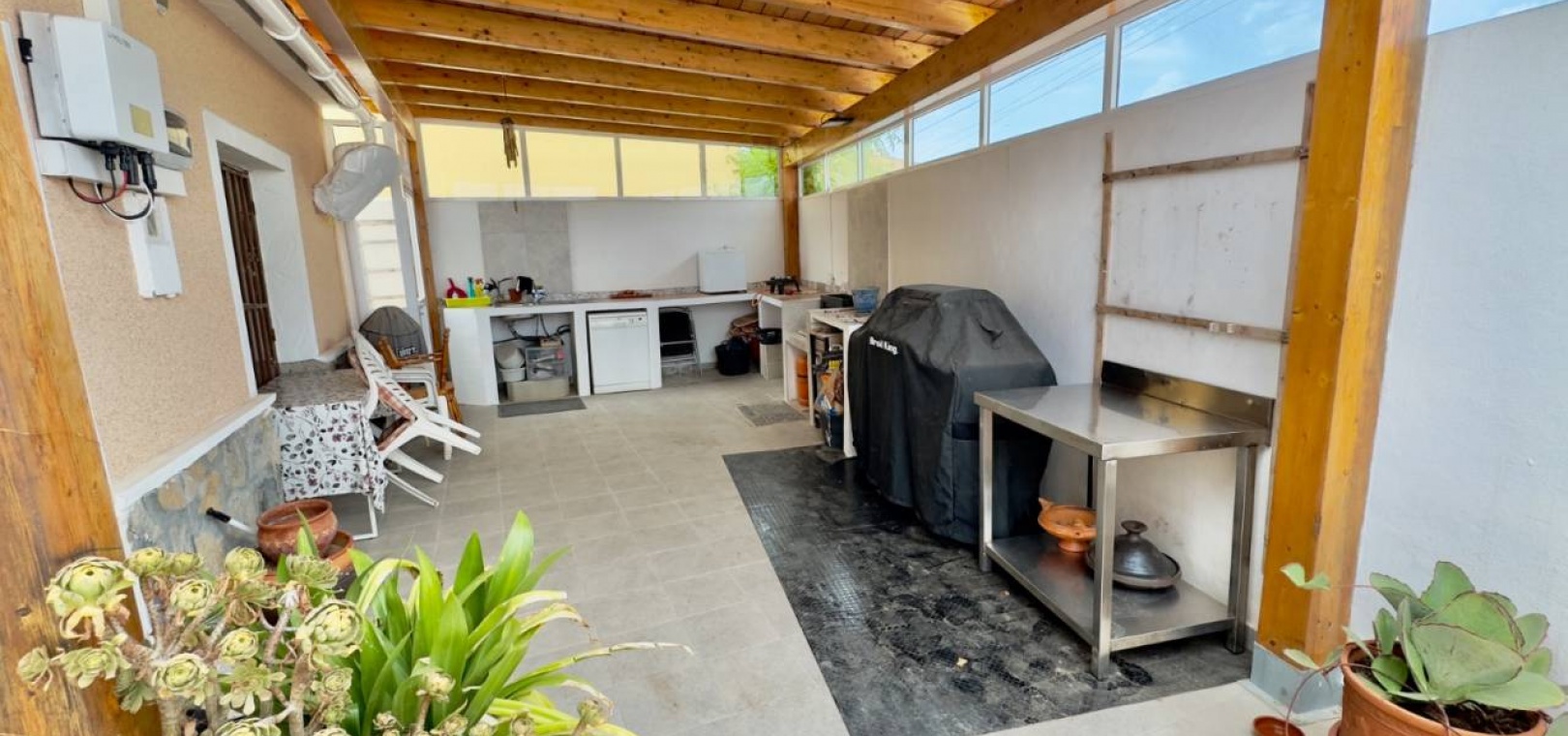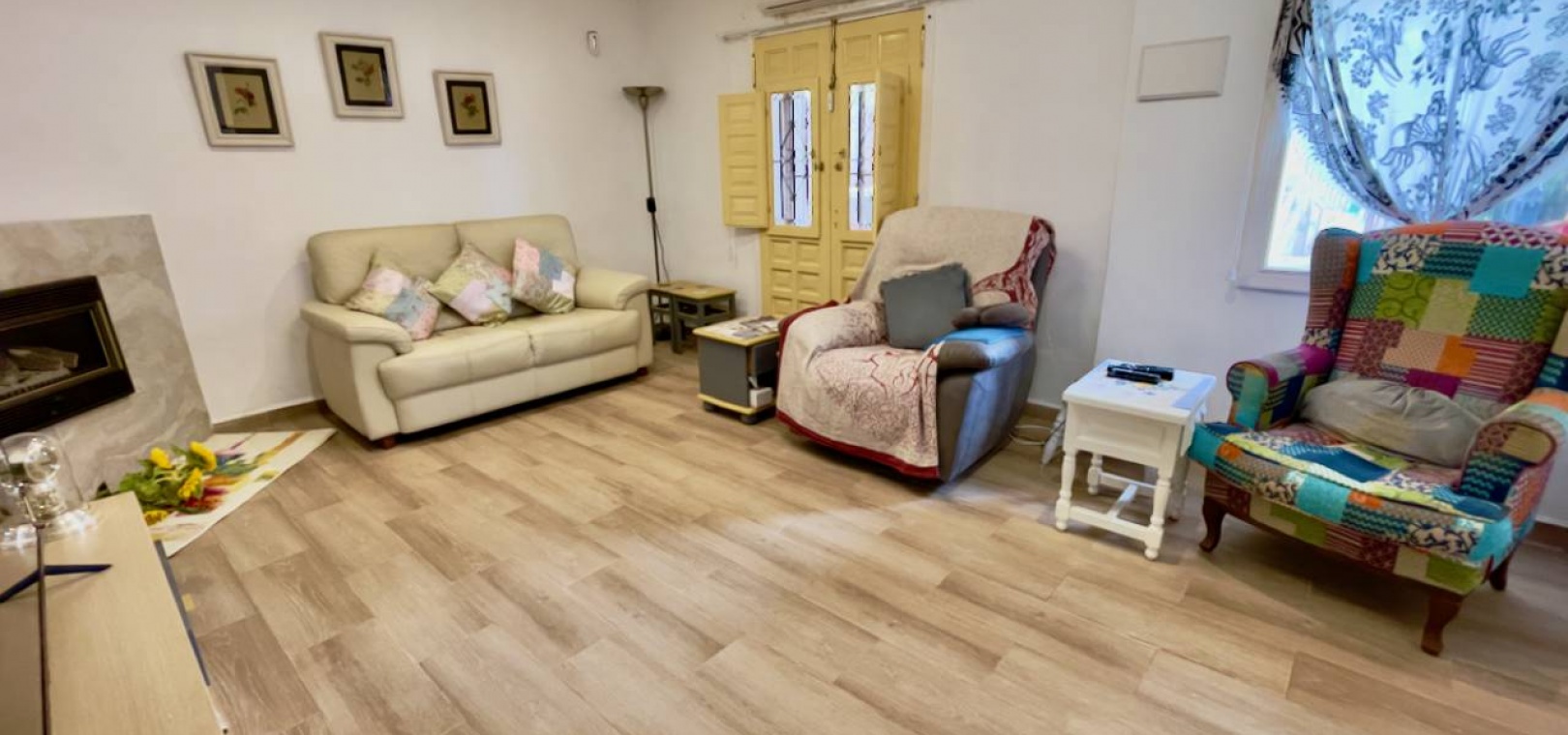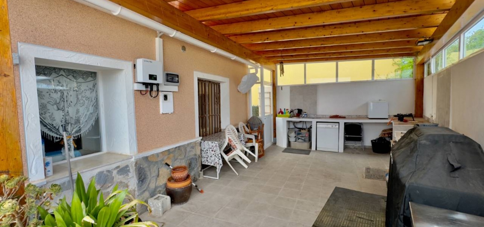 Dies ist ein schönes, freistehendes Landhaus in ländlicher Umgebung, nur 5 Autominuten vom Dorf entfernt. Das Anwesen wurde vor zwei Jahren komplett renoviert und mit schönen Fliesenböden ausgestattet. Es verfügt über zwei Schlafzimmer im Erdgeschoss und ein Familienbadezimmer mit Dusche. Es besteht die Möglichkeit, ein drittes Schlafzimmer in der Garage einzurichten. Beim Betreten des Anwesens gelangt man in eine große Küche mit Essbereich, ein separates Wohnzimmer mit Kamin und Türen, die in den Garten führen. Auf der Rückseite befindet sich ein praktischer Hauswirtschaftsraum mit separatem WC. Eine Treppe führt zur Dachterrasse mit herrlichem Blick auf Ackerland und Berge. Seit der ersten Vermarktung haben die derzeitigen Eigentümer Solarmodule (mit virtueller Batterie) installiert, wodurch sich die monatlichen Stromrechnungen (bei aktuellem Verbrauch) auf rund 20 Euro reduziert haben.