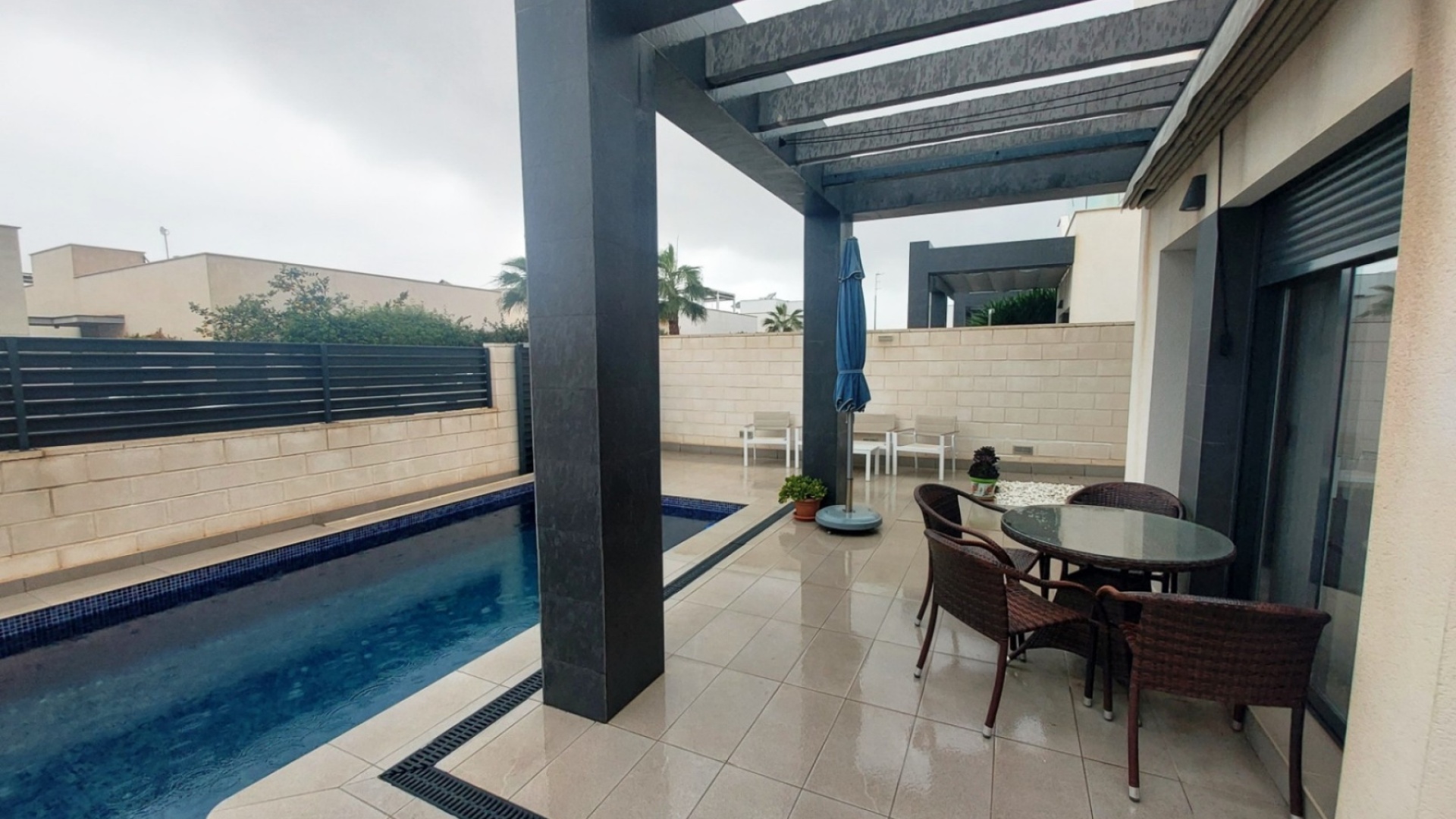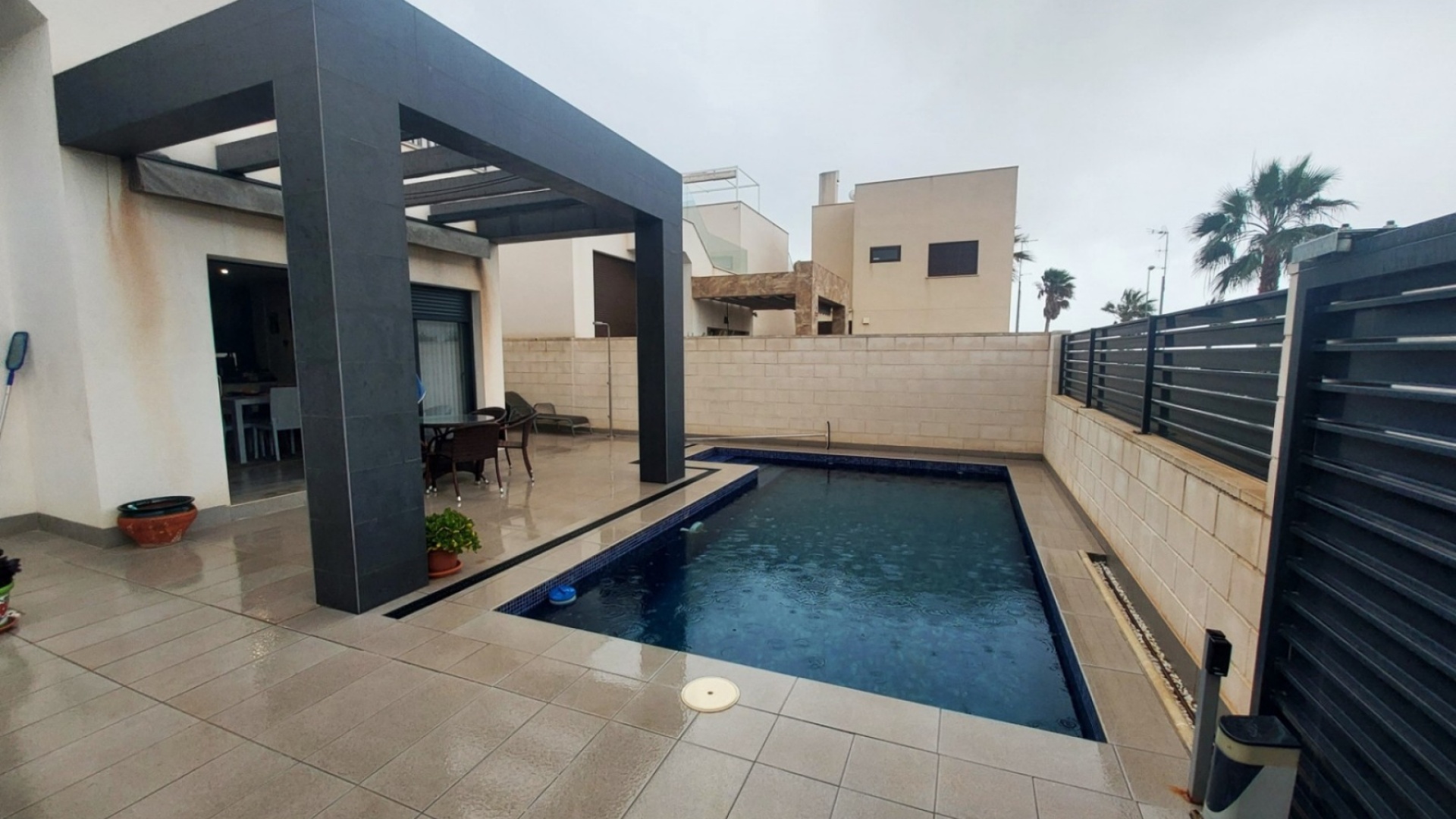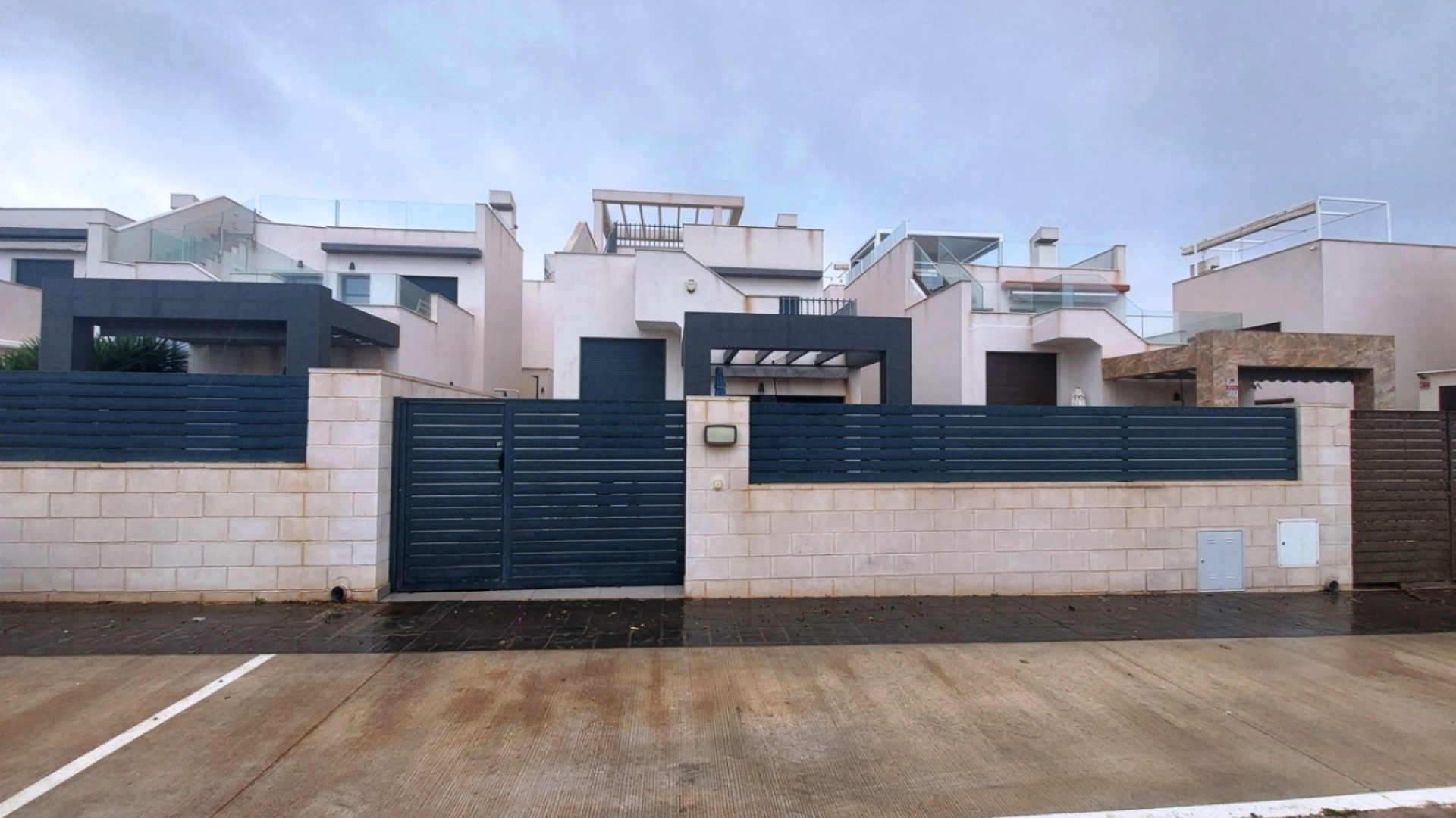 Erleben Sie modernen Luxus in dieser atemberaubenden, freistehenden Villa mit 3 Schlafzimmern und 2 Bädern im begehrten Viertel Pueblo Bravo von Ciudad Quesada. Dieses moderne Haus bietet die perfekte Mischung aus Komfort und Stil und ist somit die ideale Wahl für alle, die ein hochwertiges Wohnumfeld suchen. Die Villa verfügt über einen privaten Swimmingpool, eine ruhige Oase zum Entspannen und Genießen. Die großzügige Sonnenterrasse bietet einen Panoramablick auf die Umgebung und lädt zum Genießen der mediterranen Sonne ein. Im Inneren besticht die Immobilie durch einen offenen Wohnbereich mit einer voll ausgestatteten modernen Küche, die all Ihre kulinarischen Wünsche erfüllt. Dank der Nähe zu lokalen Annehmlichkeiten genießen die Bewohner einfachen Zugang zu Supermärkten, Restaurants und Freizeiteinrichtungen. Die wunderschönen Strände von Guardamar del Segura mit ihrem makellosen Sand und klarem Wasser sind nur eine kurze Autofahrt entfernt. Golfbegeisterte werden die Nähe zum renommierten Golfplatz La Marquesa zu schätzen wissen. Hauptmerkmale: Schlafzimmer: 3 geräumige SchlafzimmerBadezimmer: 2 moderne BadezimmerPrivater Pool: JaSolarium: Geräumig mit PanoramablickWohnbereich: Offener Wohnbereich mit moderner KücheNähe zu Annehmlichkeiten: In der Nähe von Supermärkten, Restaurants und FreizeiteinrichtungenStrände: Kurze Fahrt nach Guardamar del SeguraGolf: In der Nähe des Golfplatzes La Marquesa Diese Villa bietet eine fantastische Gelegenheit für alle, die ein modernes Zuhause in bester Lage suchen. Lassen Sie sich diese außergewöhnliche Immobilie nicht entgehen. Kontaktieren Sie uns noch heute, um einen Besichtigungstermin zu vereinbaren!