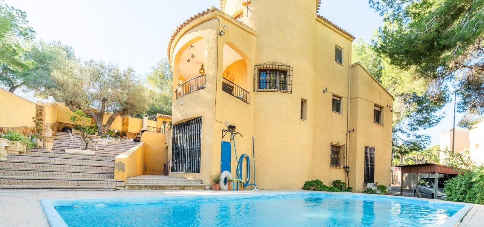 Diese beeindruckende Immobilie, auf einem 800 m² großen Grundstück gelegen, ist das perfekte Zuhause für diejenigen, die Geräumigkeit, Komfort und eine privilegierte Lage in einer der exklusivsten und neuesten Gegenden von Orihuela Costa suchen. Mit 217 m² Wohnfläche bietet dieses Chalet mehr als genug Platz, um das Leben mit Familie oder Freunden zu genießen.~~Das Chalet verfügt über 6 großzügige Doppelzimmer und 4 vollständige Badezimmer, die für Privatsphäre und Komfort sorgen. Sein helles und elegantes Design mit Holzelementen im Innenbereich und Fliesenböden schafft von Anfang an eine einladende und warme Atmosphäre.~~Die voll ausgestattete Küche ist ideal für diejenigen, die Freude am Kochen und an kulinarischen Genüssen haben. Darüber hinaus umfasst die Immobilie einen geräumigen Keller, der sich perfekt für zusätzlichen Stauraum oder als Freizeitbereich eignet.~~Der Außenbereich lässt keine Wünsche offen. Die Immobilie besticht durch ihren privaten Pool, umgeben von einem großen Garten und mediterranen Pinien, sowie durch eine Steinmauer, die das Grundstück umgibt. Zudem gibt es eine Grillzone für gesellige Zusammenkünfte im Freien sowie einen Gemeinschaftspool, der die Entspannungsmöglichkeiten ergänzt.~~Dank der südöstlichen Ausrichtung erhält das Haus den ganzen Tag über natürliches Licht, was seinen hellen Charakter unterstreicht. Die Ecklage garantiert Privatsphäre und einen freien Blick, wodurch es zu einem außergewöhnlichen Ort zum Abschalten wird.~~Dieses Chalet liegt nur 3500 Meter vom Strand entfernt und in unmittelbarer Nähe zu wichtigen Einrichtungen wie Einkaufszentren, Schulen, Krankenhäusern und Golfplätzen. Zudem bietet es eine gute Anbindung an öffentliche Verkehrsmittel, Grünflächen und Kinderbereiche, was diese Immobilie zu einer ausgezeichneten Wahl für Familien und Naturliebhaber macht.~~Die Immobilie verfügt außerdem über Klimaanlage, Heizung, Kamin, Einbauschränke, Telefonanschluss, Fernsehempfang und einen Parkplatz auf dem Grundstück.~~Eine einmalige Gelegenheit, das Haus Ihrer Träume in Villamartín-Las Filipinas zu erwerben!~~