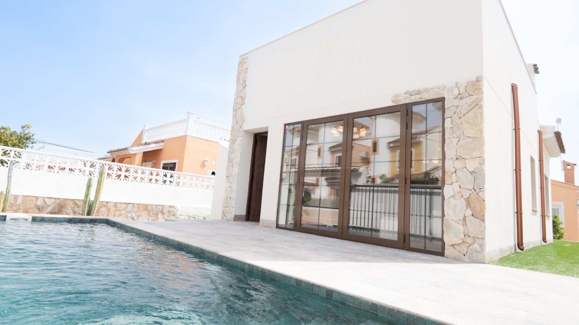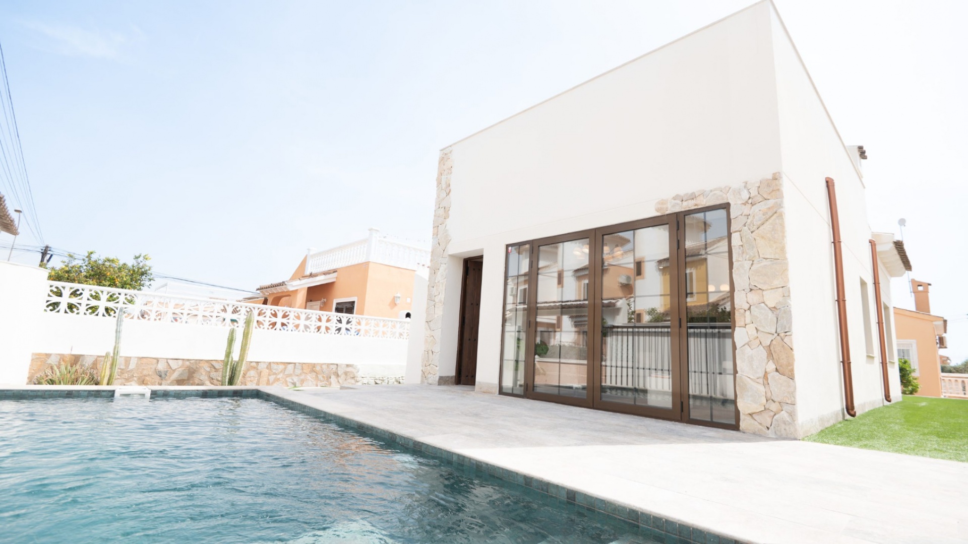 Eine ultramoderne freistehende Villa mit 3 Schlafzimmern, 2 Bädern und privatem Pool in Urb Horizonte, Playa Flamenca, Costa Blanca Süd