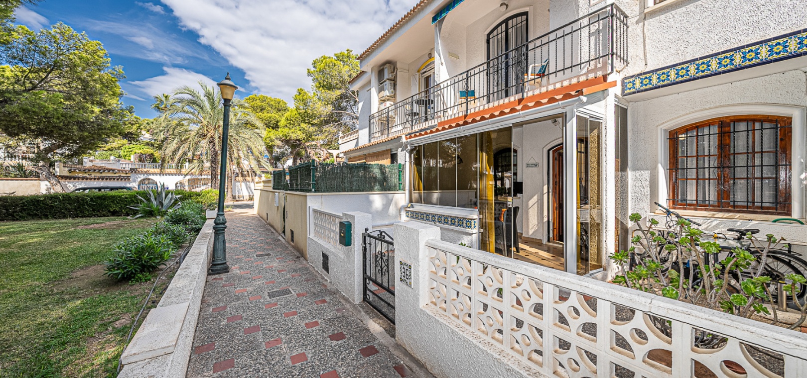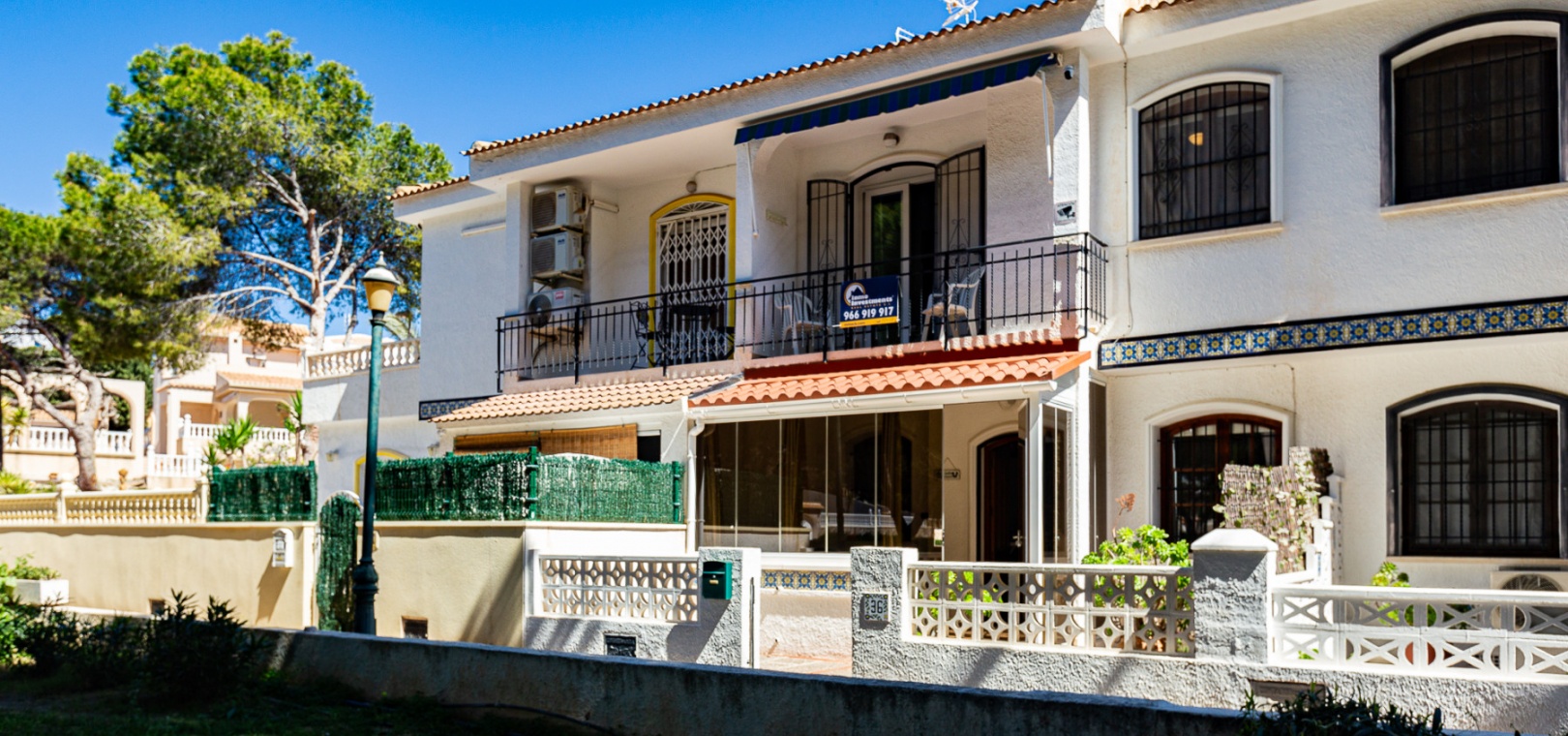 Dieses charmante Stadthaus befindet sich in fantastischer Lage, nur einen kurzen Spaziergang vom Strand La Zenia entfernt. Dieses gut gelegene Haus eignet sich perfekt als Dauerwohnsitz oder als Rückzugsort am Strand. Das Anwesen verfügt über eine verglaste Vorderterrasse, die im Winter angenehm warm hält und als zusätzlicher Ess- oder Entspannungsbereich dient, einen geräumigen Wohn-/Essbereich, der im Erdgeschoss in eine komplett renovierte Küche mit Frühstücksbar und WC/Garderobe übergeht. Die zweite Etage bietet zwei Doppelschlafzimmer, das Hauptschlafzimmer mit Balkonterrasse und friedlichem Ausblick auf den Park und die Gärten sowie ein Familienbadezimmer. Das Haus bietet einen pflegeleichten Patiogarten und eine Terrasse, ebenfalls mit malerischem Blick auf den Park und die Gärten. Das Anwesen wird voll möbliert verkauft (Inventar wird bereitgestellt), ist jedoch mit Sicherheitsrollläden/-gittern, Jalousien, Deckenventilatoren und Einbauschränken ausgestattet. Das Anwesen liegt nur 300 m vom mit der Blauen Flagge ausgezeichneten Strand La Zenia entfernt und bietet alle Annehmlichkeiten in unmittelbarer Nähe, was es zum idealen Zuhause für den Urlaub, zur Vermietung als Kapitalanlage oder zum Dauerwohnen macht. La Zenia liegt im Herzen der Orihuela Costa und bietet erstklassige Immobilien für Urlauber, zum dauerhaften Wohnen oder als hervorragendes Mietinvestitionspotenzial. Dank seiner umfangreichen und vielfältigen Annehmlichkeiten, der fantastischen Infrastruktur und der einfachen Anbindung an die Flughäfen Alicante und Covera (beide 45 Autominuten entfernt) sind alle notwendigen Annehmlichkeiten vor Ort zu finden, darunter renommierte Brasserien, Café-Bars, Restaurants, Geschäfte, Supermärkte und die mit der Blauen Flagge ausgezeichneten Strände von La Zenia. Beide Strände werden jedes Jahr mit der Blauen Flagge ausgezeichnet, die für ihren hohen Pflegestandard und das makellos saubere Wasser des Mittelmeers anerkannt wird. La Zenias Hauptstrand, Cala Bosque, bietet mehr als 27.000 m² unberührten Sand und einen extra breiten Holzsteg, der den Bedürfnissen von Familien mit Kindern und Rollstuhlfahrern entgegenkommt. Cala Bosque bietet selbst in der Hochsaison viel Platz, und La Zenias kleinerer Strand, Cala Cerrada, bietet zusätzliche Kapazitäten mit einem breiten, feinsandigen, buchtförmigen Strand, der an der Wasserlinie 167 m misst.