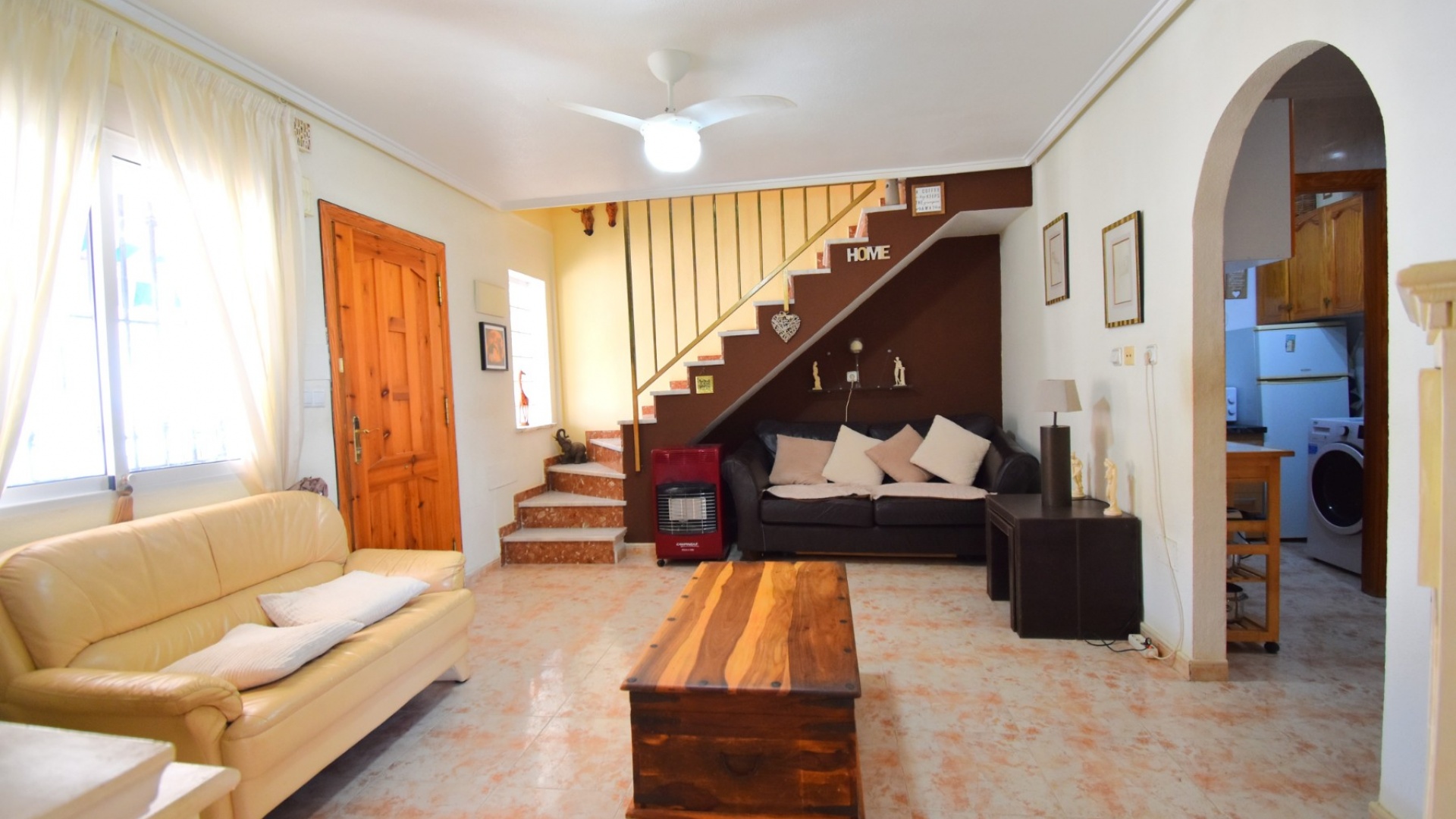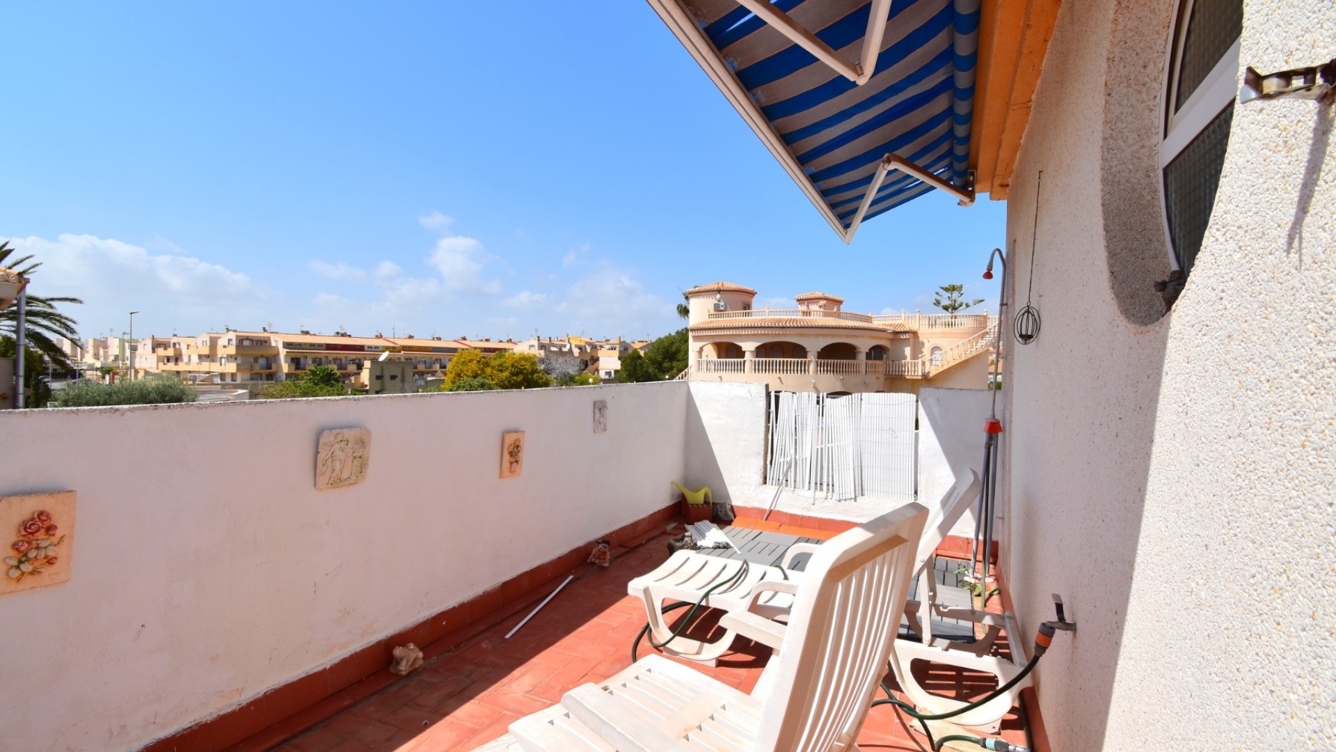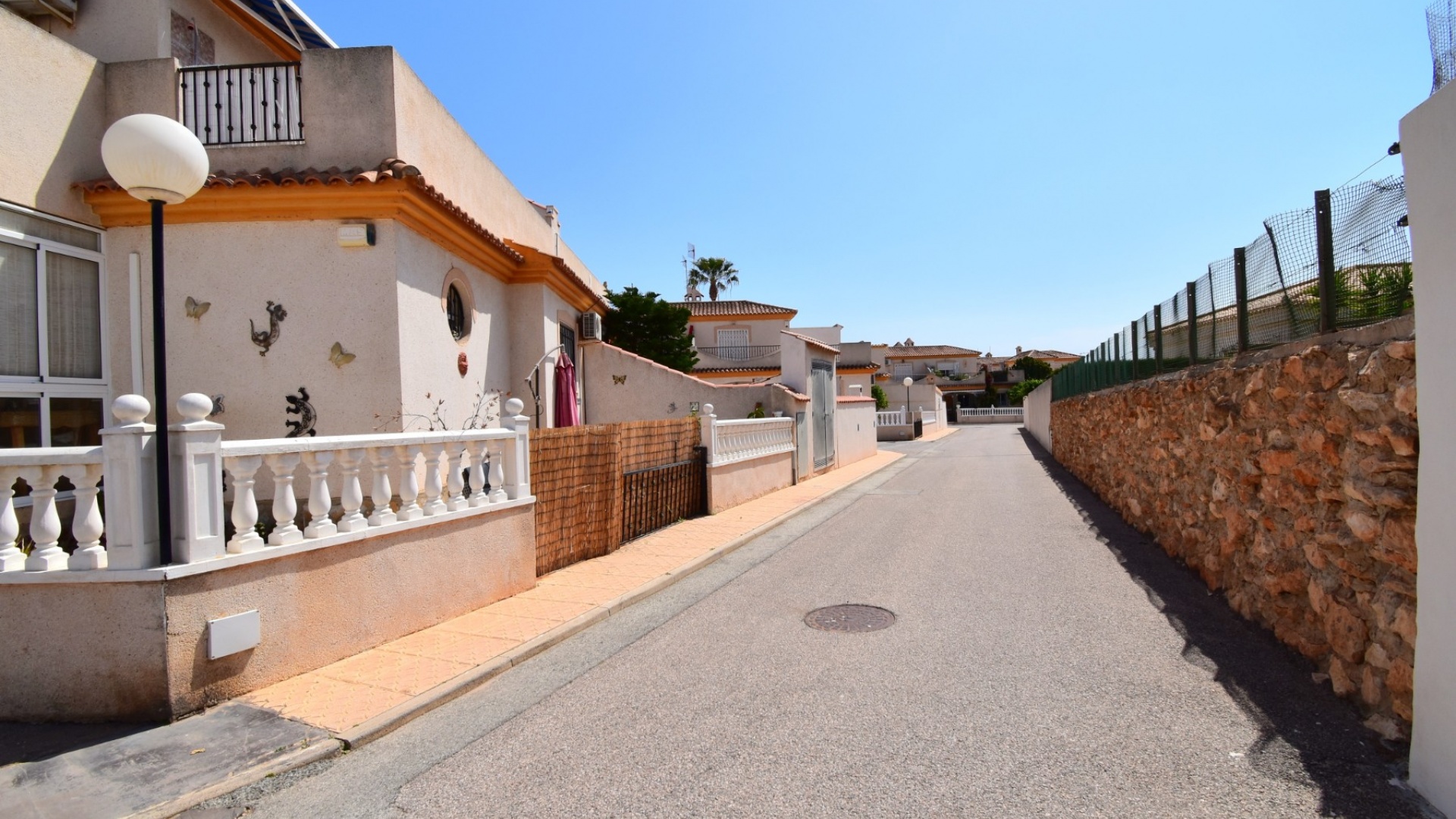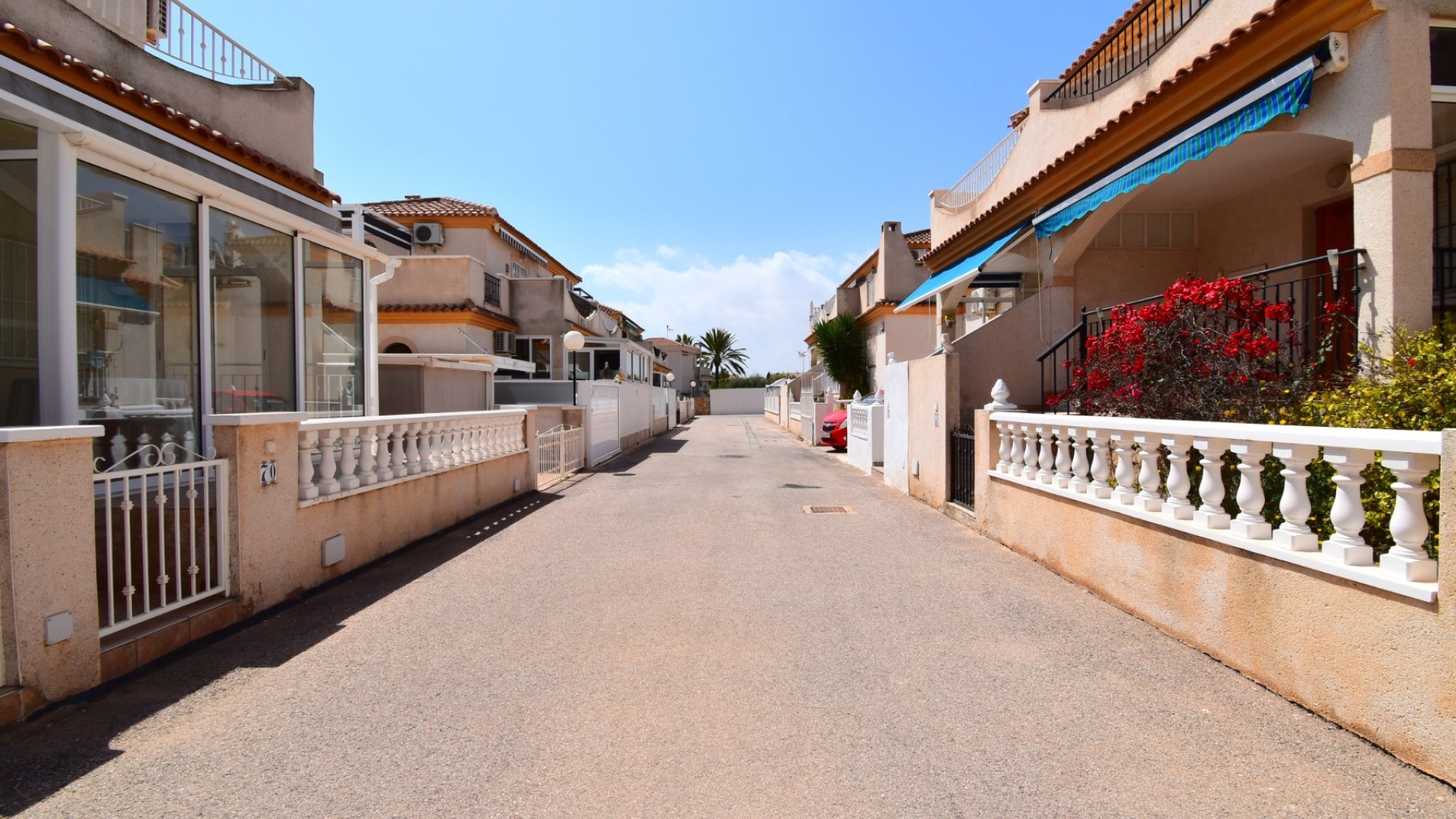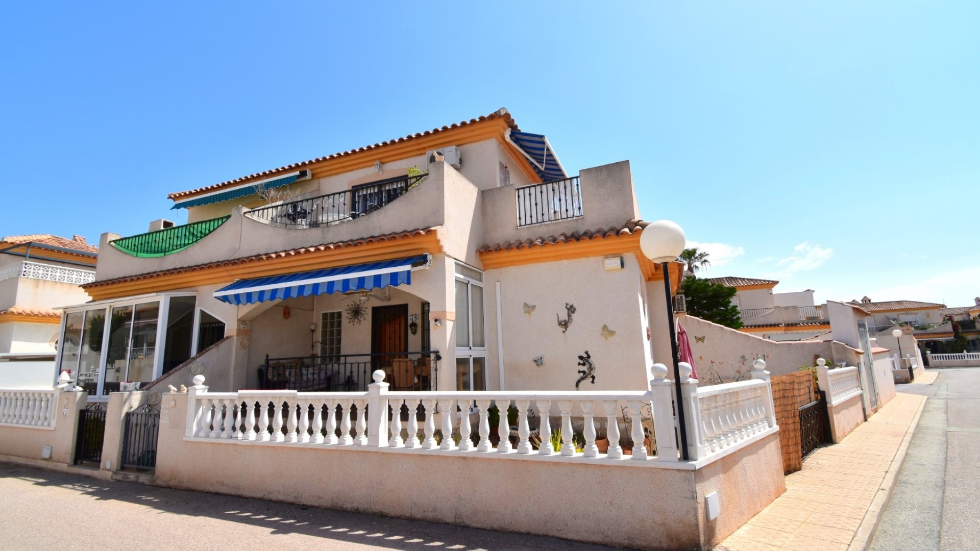 Diese nach Westen ausgerichtete Eck-Villa mit zwei Schlafzimmern und vier Schlafzimmern in Playa Flamenca befindet sich in einer beliebten und etablierten Gegend der Costa Blanca Süd, nur 10 Gehminuten von einer Auswahl an Restaurants und Café-Bars entfernt. Das lebhafte Einkaufszentrum La Zenia Boulevard ist etwa 20 Gehminuten entfernt, die wunderschönen Sandstrände erreichen Sie in nur 5 Autominuten. Mehrere renommierte Golfplätze sind ebenfalls in 10 Minuten erreichbar, was diese Immobilie zu einem idealen Zuhause sowohl für dauerhaftes Wohnen als auch für den Urlaub macht. Das Anwesen befindet sich auf einem begehrten Eckgrundstück und verfügt über eine überdachte Eingangsterrasse, die sich ideal für den Morgenkaffee oder die abendliche Entspannung eignet. Im Inneren führt eine Treppe vom hellen Wohn-/Esszimmer in den ersten Stock. Ein Torbogen führt in die voll ausgestattete Küche mit angrenzendem Hauswirtschaftsraum. Das Erdgeschoss bietet außerdem ein Doppelzimmer und ein Duschbad. Im Obergeschoss befinden sich das zweite Doppelzimmer mit Zugang zu einer schönen privaten Terrasse sowie ein Familienbadezimmer. Von dieser Ebene führt eine Innentreppe zur privaten Dachterrasse – ein idealer Platz zum Sonnenbaden. Der Garten ist pflegeleicht und besteht aus Kiesel- und Fliesenflächen. Zur weiteren Ausstattung gehören Klimaanlage, Einbauschränke, Zugang zu einem gepflegten Gemeinschaftspool und ein geschlossener Gemeinschaftsparkplatz. Dies ist eine fantastische Gelegenheit, ein charmantes und gut gelegenes Haus im Herzen von Playa Flamenca zu besitzen!