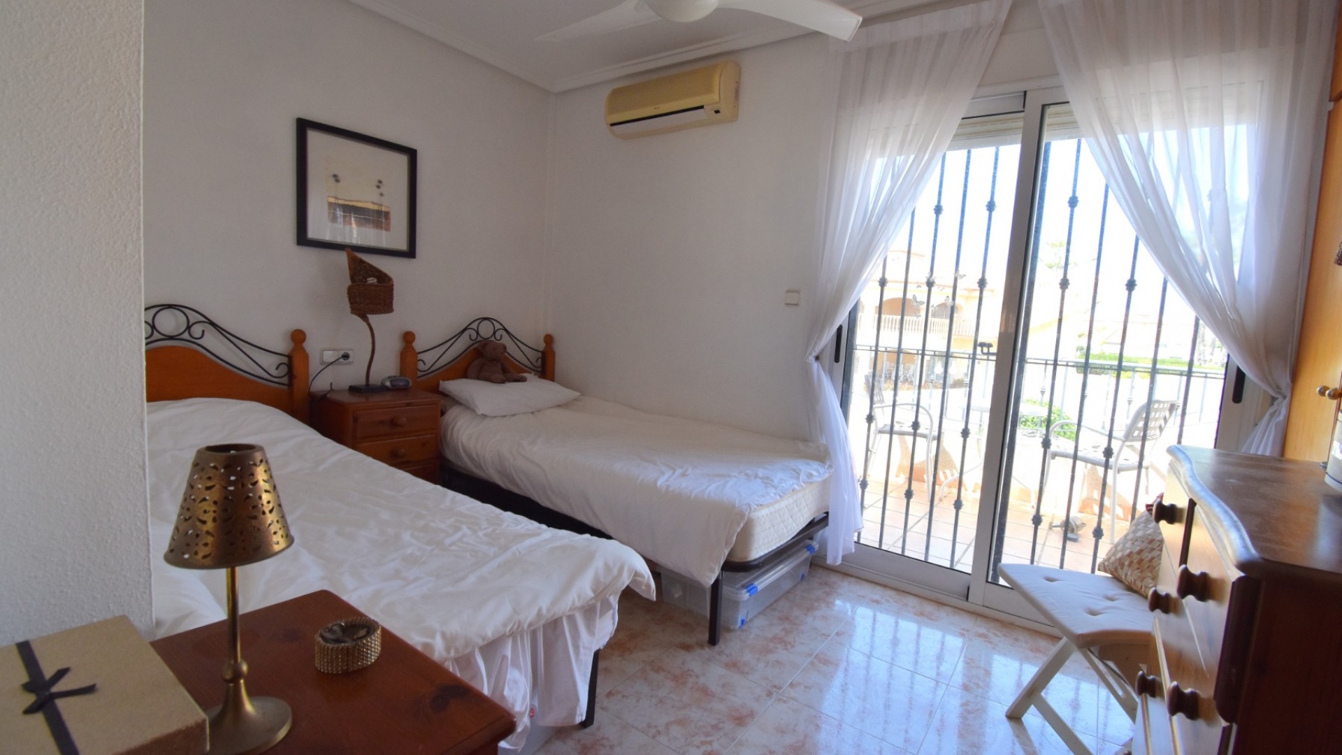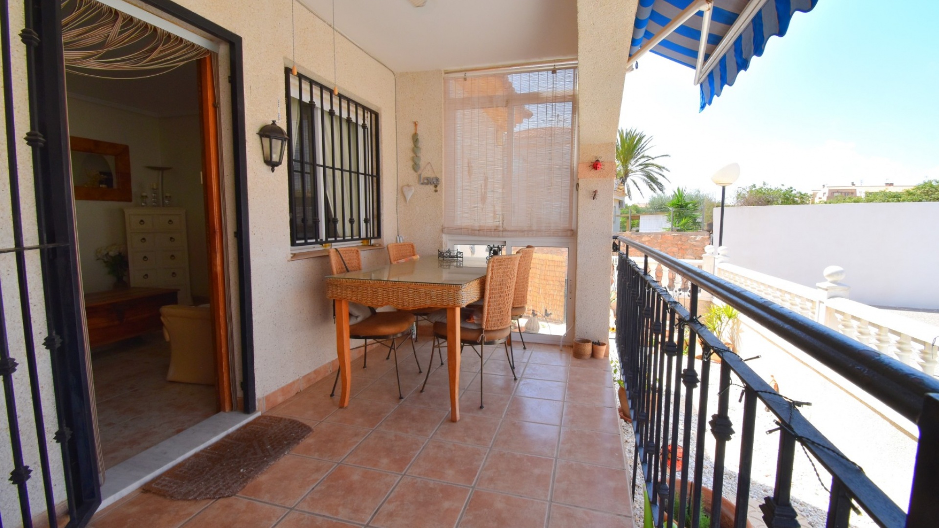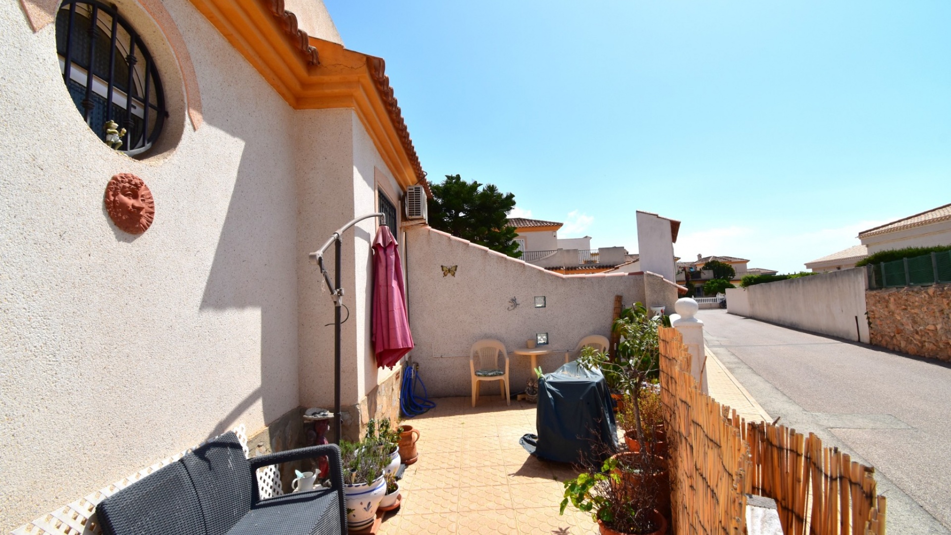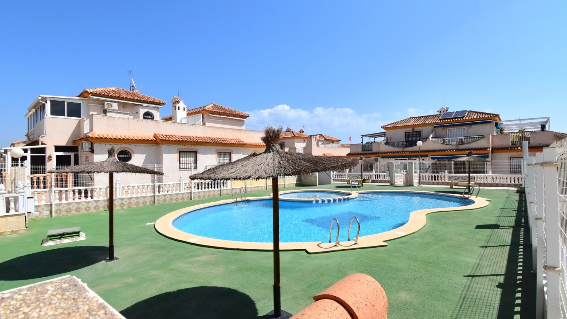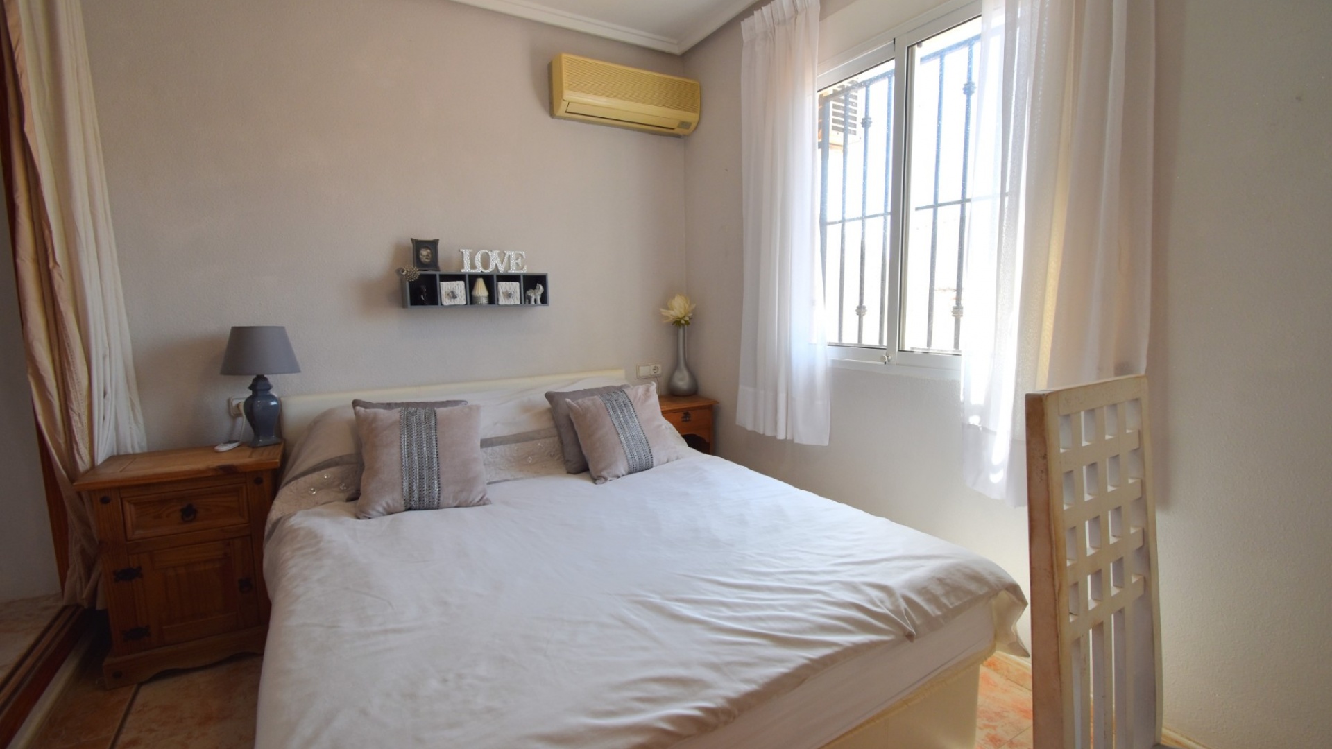 Diese nach Westen ausgerichtete Eck-Villa mit zwei Schlafzimmern und vier Schlafzimmern in Playa Flamenca befindet sich in einer beliebten und etablierten Gegend der Costa Blanca Süd, nur 10 Gehminuten von einer Auswahl an Restaurants und Café-Bars entfernt. Das lebhafte Einkaufszentrum La Zenia Boulevard ist etwa 20 Gehminuten entfernt, die wunderschönen Sandstrände erreichen Sie in nur 5 Autominuten. Mehrere renommierte Golfplätze sind ebenfalls in 10 Minuten erreichbar, was diese Immobilie zu einem idealen Zuhause sowohl für dauerhaftes Wohnen als auch für den Urlaub macht. Das Anwesen befindet sich auf einem begehrten Eckgrundstück und verfügt über eine überdachte Eingangsterrasse, die sich ideal für den Morgenkaffee oder die abendliche Entspannung eignet. Im Inneren führt eine Treppe vom hellen Wohn-/Esszimmer in den ersten Stock. Ein Torbogen führt in die voll ausgestattete Küche mit angrenzendem Hauswirtschaftsraum. Das Erdgeschoss bietet außerdem ein Doppelzimmer und ein Duschbad. Im Obergeschoss befinden sich das zweite Doppelzimmer mit Zugang zu einer schönen privaten Terrasse sowie ein Familienbadezimmer. Von dieser Ebene führt eine Innentreppe zur privaten Dachterrasse – ein idealer Platz zum Sonnenbaden. Der Garten ist pflegeleicht und besteht aus Kiesel- und Fliesenflächen. Zur weiteren Ausstattung gehören Klimaanlage, Einbauschränke, Zugang zu einem gepflegten Gemeinschaftspool und ein geschlossener Gemeinschaftsparkplatz. Dies ist eine fantastische Gelegenheit, ein charmantes und gut gelegenes Haus im Herzen von Playa Flamenca zu besitzen!