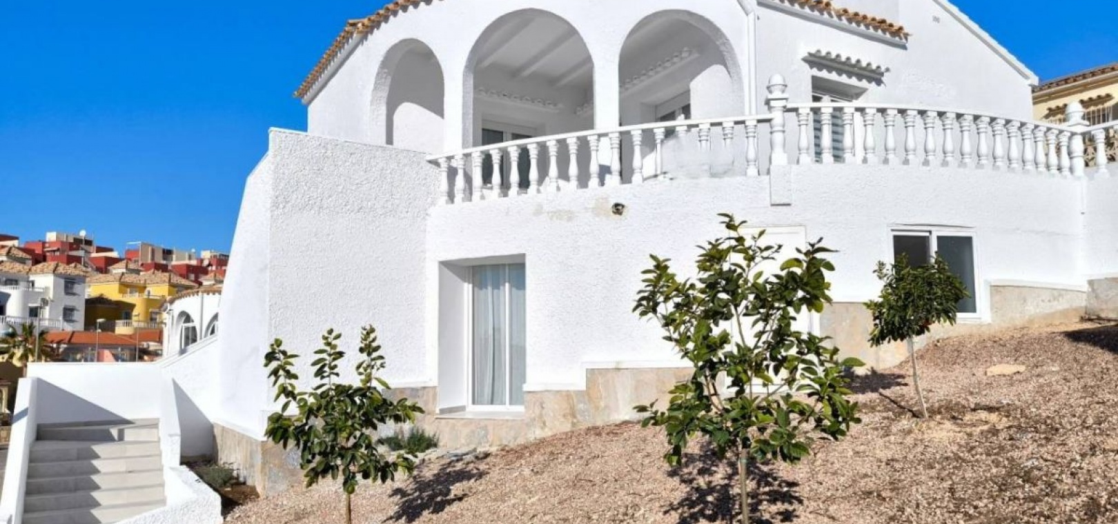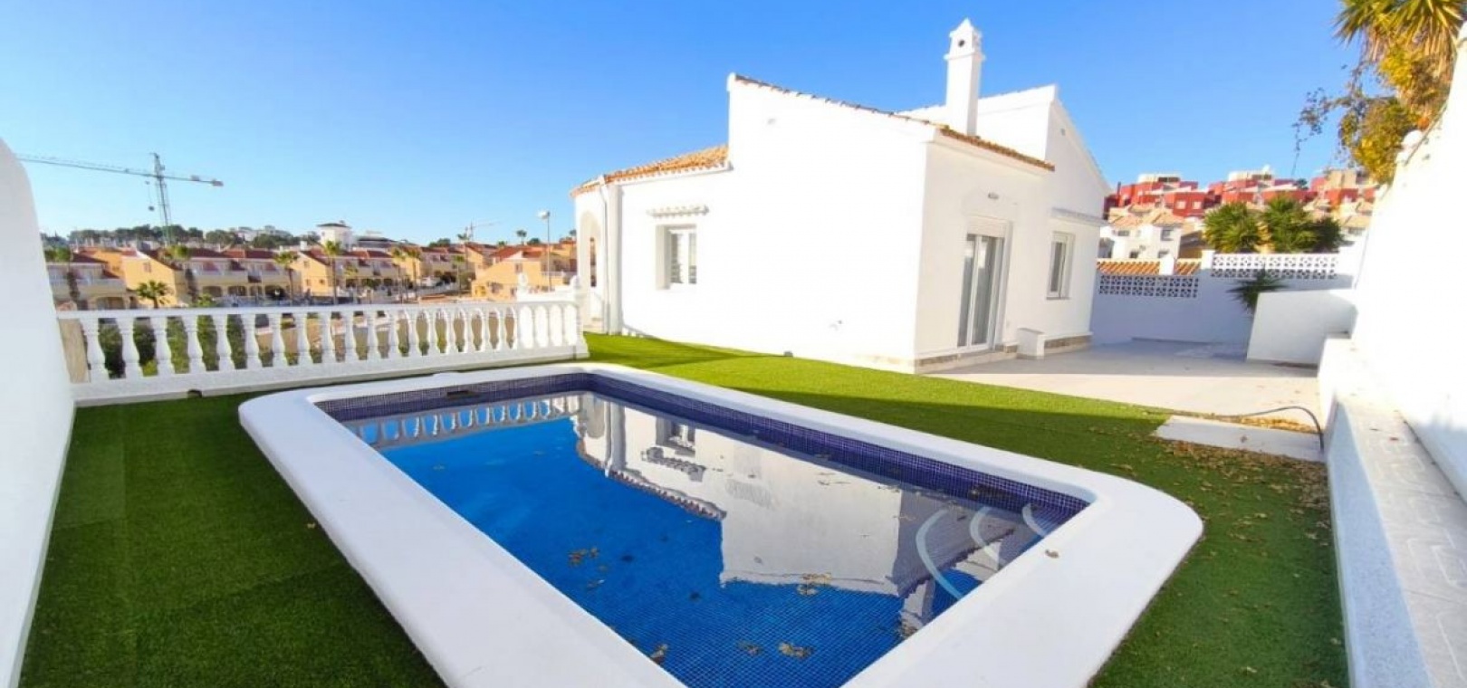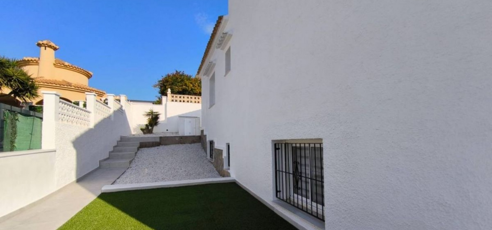 Renovierte mediterrane Villa in El Presidente, Villamartín Erleben Sie kultiviertes Küstenleben mit dieser komplett renovierten Villa in der prestigeträchtigen Wohnanlage El Presidente in Villamartín. Ob Sie ein wunderschönes Zweitwohnsitz oder eine renditestarke Investition suchen, diese Immobilie ist ein Highlight in einem der am schnellsten wachsenden Märkte der Costa Blanca. IMMOBILIEN-HIGHLIGHTS: 400 m² privates Grundstück mit 170 m² wunderschön verteilter Wohnfläche auf zwei unabhängigen Etagen Jede Etage verfügt über zwei geräumige Schlafzimmer, ein modernes Badezimmer und eine elegante Küche – ideal für Gäste oder als Mietobjekt Erdgeschoss mit hohen Decken, großen Fenstern und direktem Zugang zu einem privaten Pool Das Erdgeschoss öffnet sich zu einer ruhigen Gartenoase, perfekt zum Entspannen oder Unterhalten Beinhaltet eine geschlossene Garage für zusätzlichen Komfort und Sicherheit Die Villa wird derzeit vollständig renoviert und mit hochwertiger Ausstattung übergeben. Die bereitgestellten Bilder zeigen das endgültige Ergebnis. Unübertroffene Lage: In der Nähe von Elite-Golfplätzen: Villamartín Golf und Las Colinas Nur wenige Minuten von den wunderschönen Stränden von La Zenia, Campoamor und Mil Palmeras entfernt In der Nähe des Zenia Boulevards, Top-Restaurants und nur 15 km vom pulsierenden Torrevieja entfernt