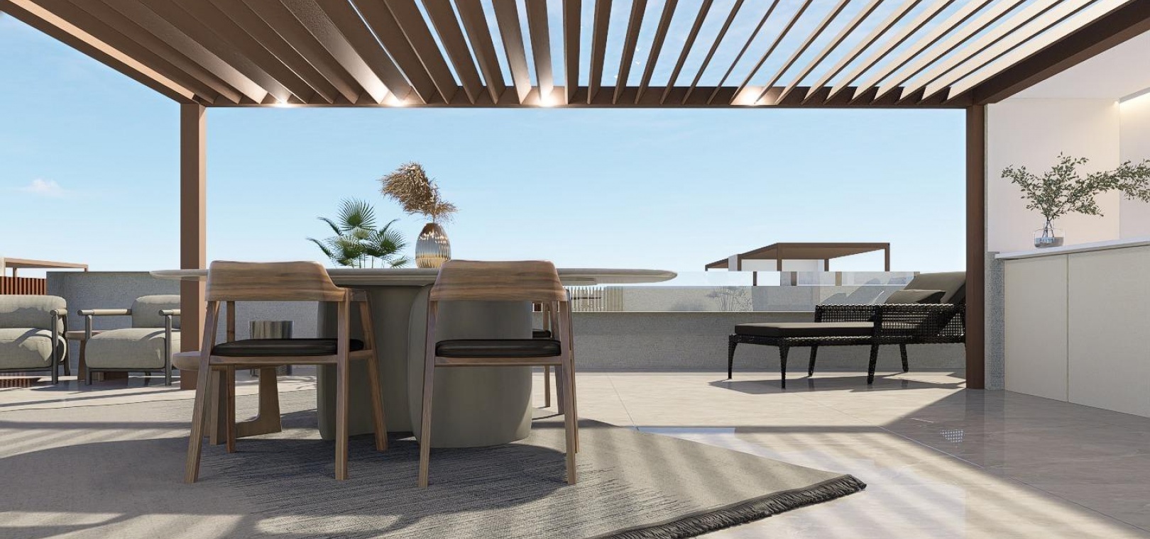 Entdecken Sie diese exklusive Neubausiedlung mit 16 modernen Bungalows in Pilar de la Horadada, einer charmanten Stadt im südlichsten Teil der Costa Blanca. Die Wohnanlage bietet Häuser mit 2 oder 3 Schlafzimmern und 2 voll ausgestatteten Bädern, die Komfort, Funktionalität und mediterranen Stil miteinander verbinden.
