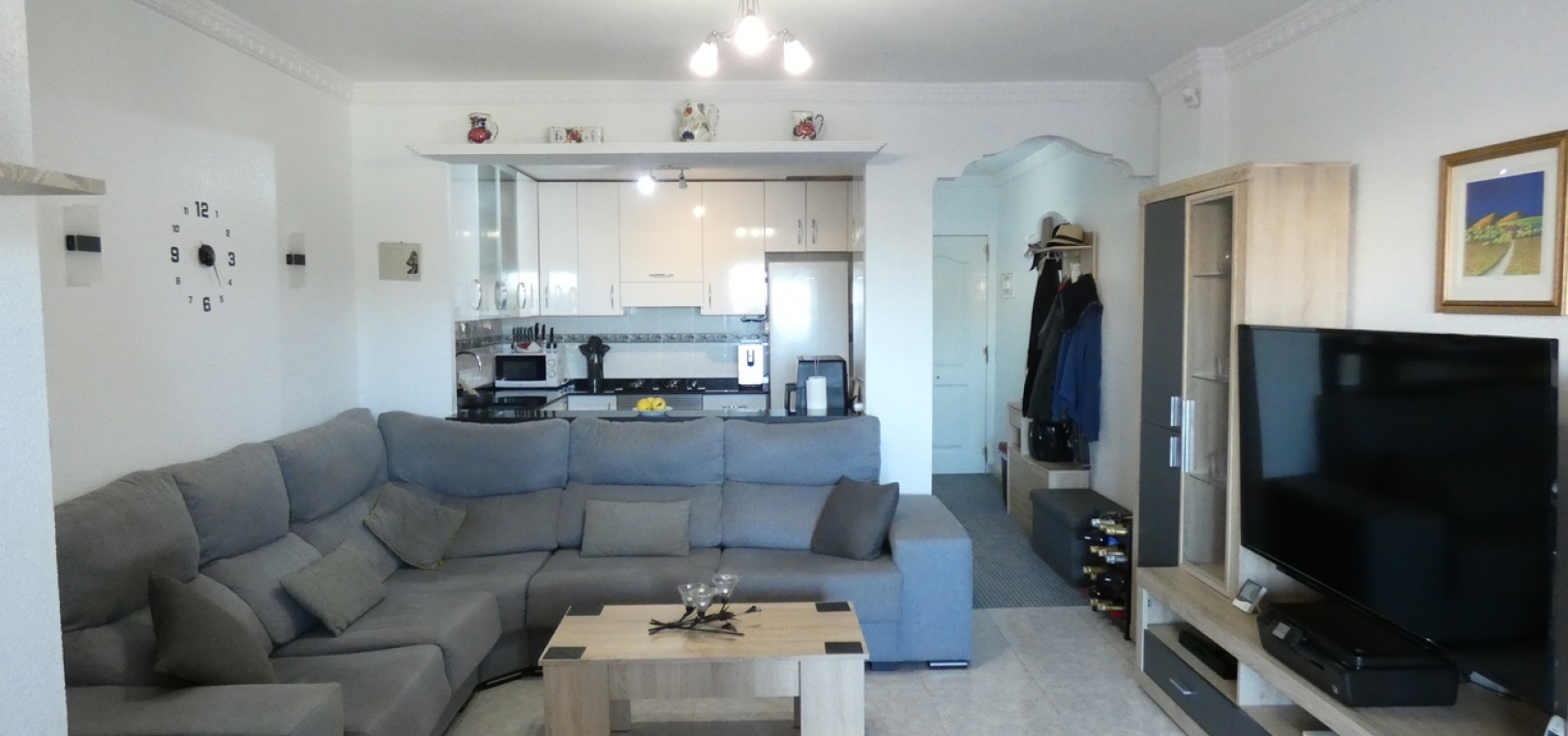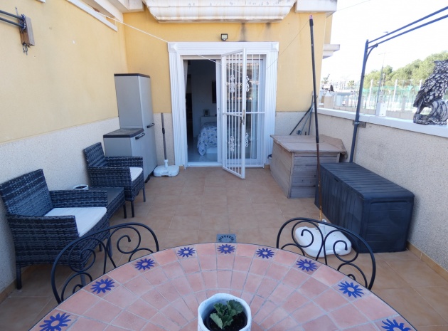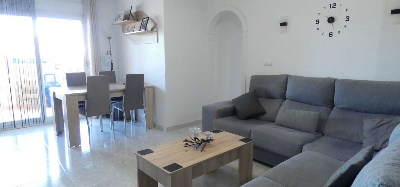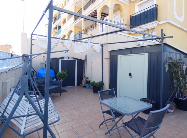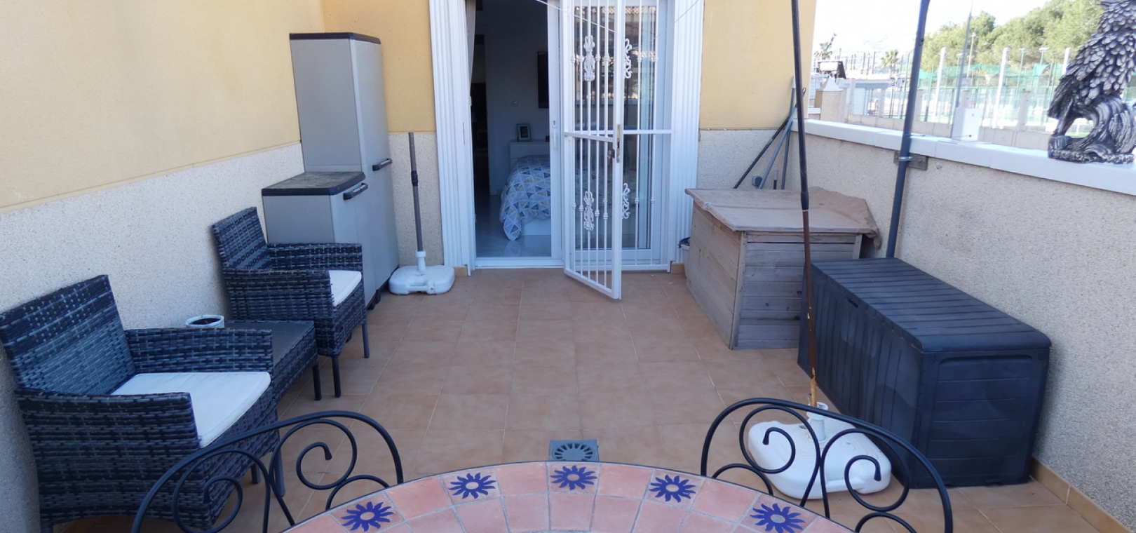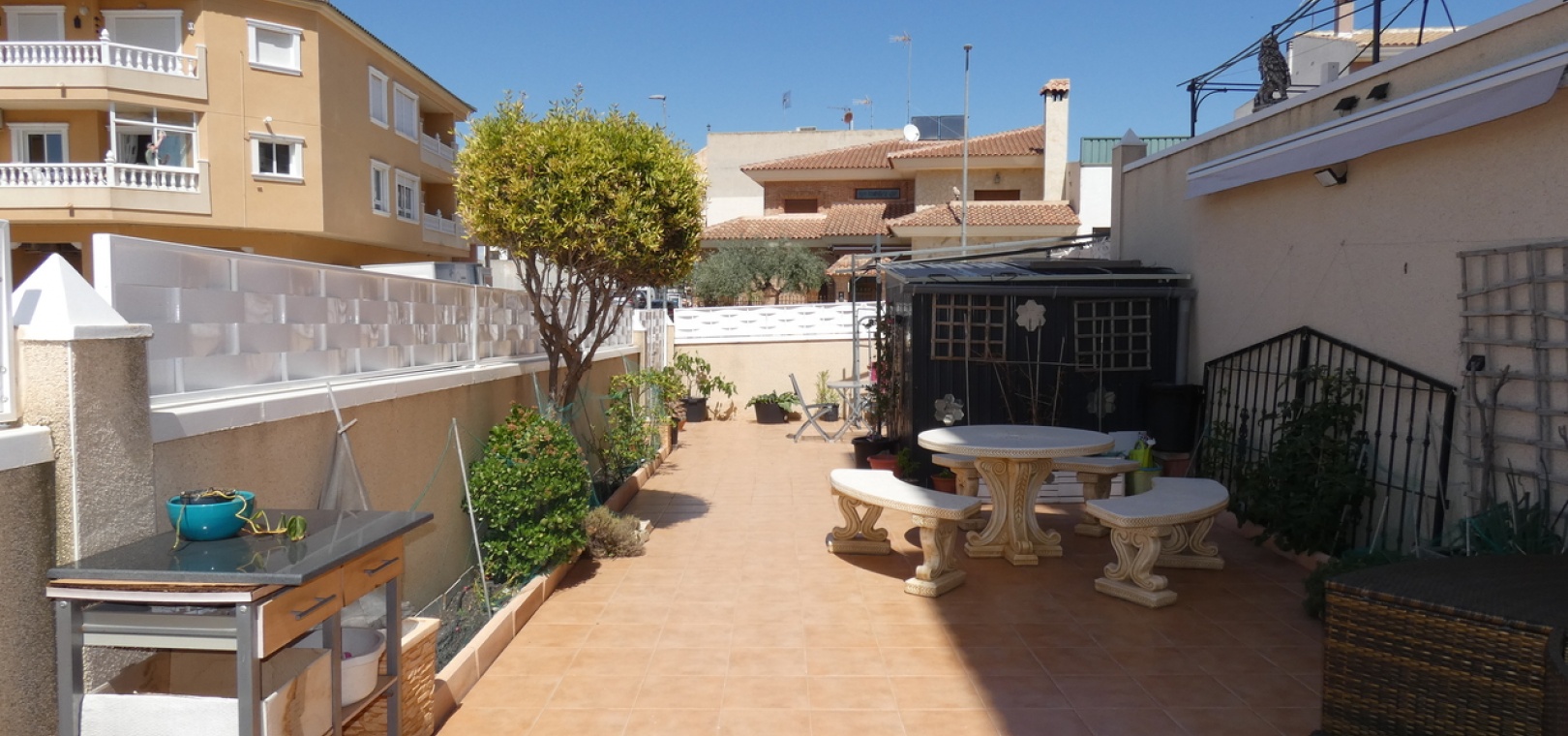 Willkommen in diesem atemberaubenden Apartment „Fontana 2“ im charmanten Dorf Algorfa. Dieses wunderschön gestaltete, nach Westen ausgerichtete Eckgrundstück im Erdgeschoss bietet viel privaten Außenbereich und ist somit die perfekte Wahl für alle, die Ruhe und ein sonniges Leben im Freien schätzen. Die Wohnung verfügt über eine großzügige Terrasse – ideal zum Entspannen, Sonnenbaden oder für Gäste. Im Inneren erwartet Sie ein modernes Wohnkonzept mit zwei Schlafzimmern und einem eleganten Badezimmer, allesamt modern und mit viel Liebe zum Detail eingerichtet. Besonders beeindruckend ist das Hauptschlafzimmer mit seiner eigenen großen privaten Terrasse, die einen ruhigen Rückzugsort mit herrlichem Blick auf die Umgebung bietet. Die Küche wurde komplett renoviert und ist sehr geräumig. Für zusätzlichen Komfort verfügt diese Immobilie über eine eigene Tiefgarage, in der Ihr Fahrzeug sicher und leicht zugänglich geparkt ist. Ob Sie den privaten Gartenbereich genießen, auf der Terrasse Sonne tanken oder in den komfortablen Innenräumen entspannen – diese Wohnung bietet die perfekte Mischung aus modernem Wohnen und Außenbereich. Die Immobilie bietet außerdem Zugang zum Gemeinschaftspool „Fontana II“.