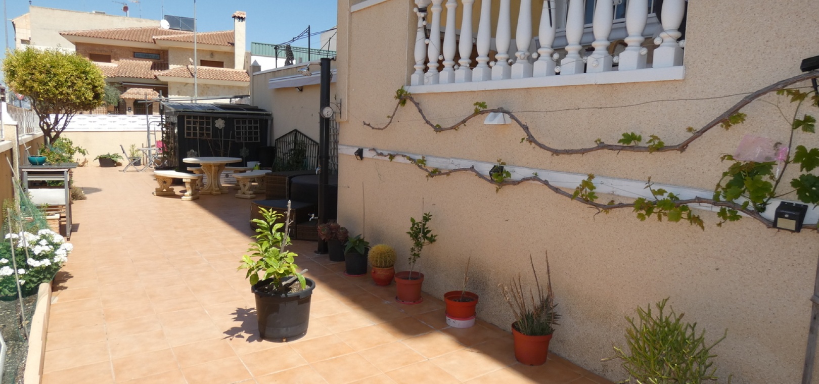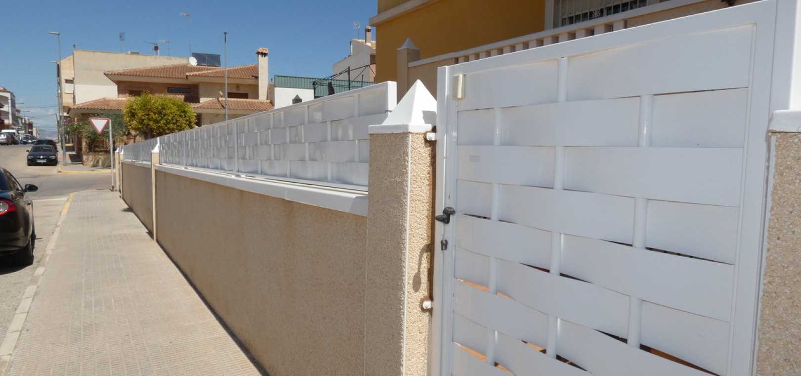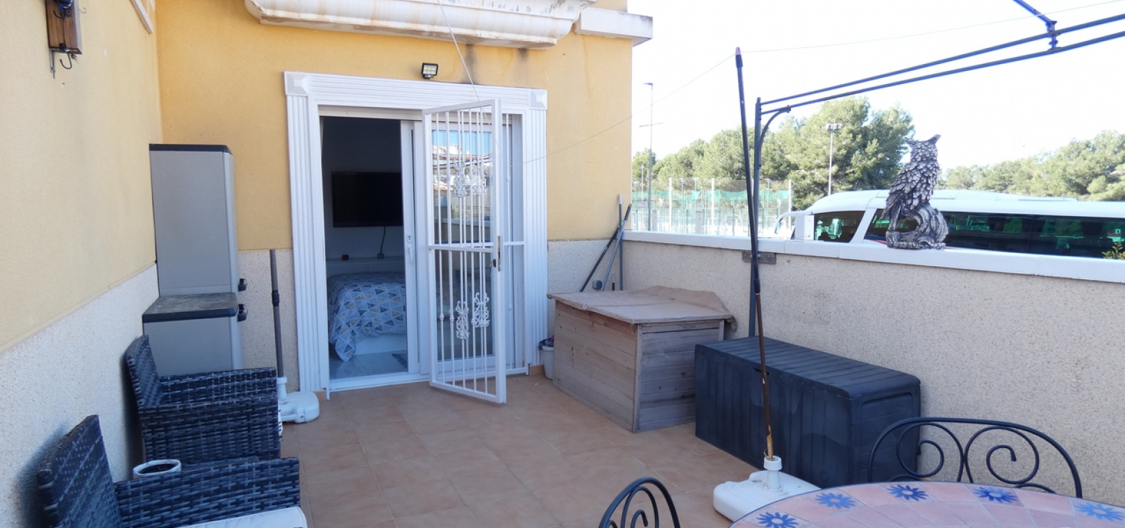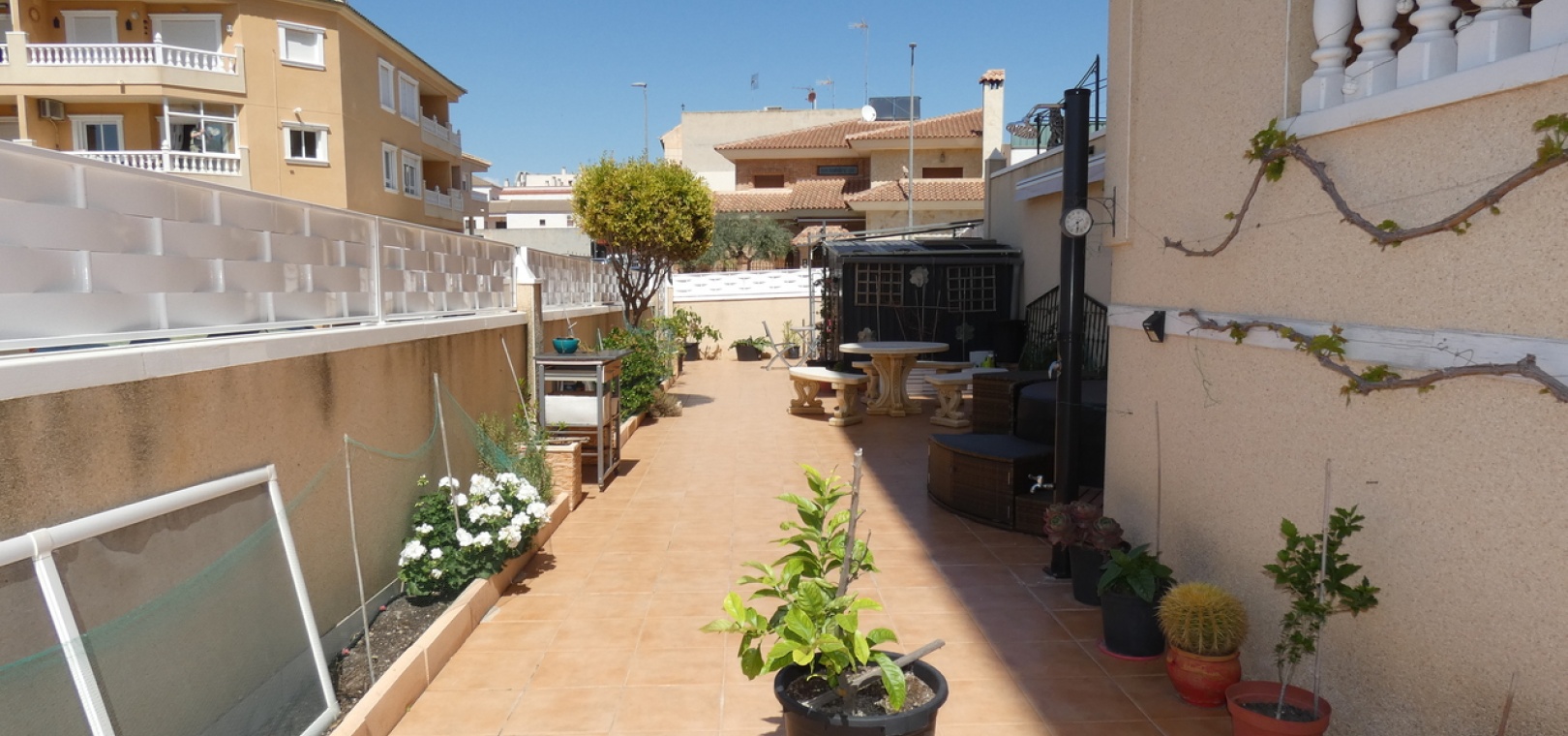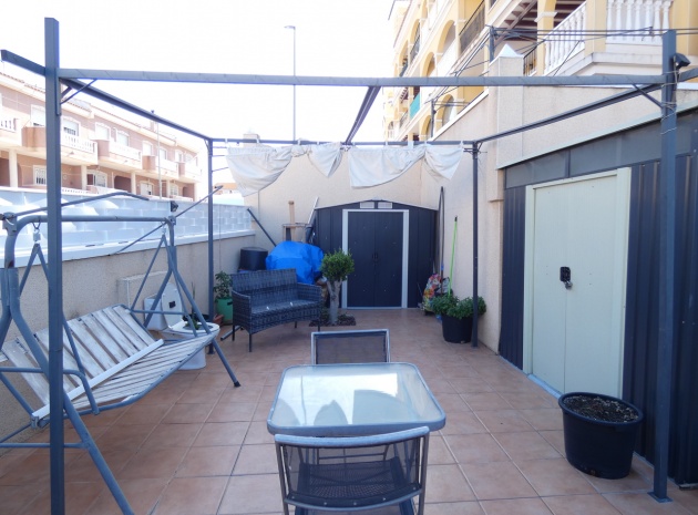 Willkommen in diesem atemberaubenden Apartment „Fontana 2“ im charmanten Dorf Algorfa. Dieses wunderschön gestaltete, nach Westen ausgerichtete Eckgrundstück im Erdgeschoss bietet viel privaten Außenbereich und ist somit die perfekte Wahl für alle, die Ruhe und ein sonniges Leben im Freien schätzen. Die Wohnung verfügt über eine großzügige Terrasse – ideal zum Entspannen, Sonnenbaden oder für Gäste. Im Inneren erwartet Sie ein modernes Wohnkonzept mit zwei Schlafzimmern und einem eleganten Badezimmer, allesamt modern und mit viel Liebe zum Detail eingerichtet. Besonders beeindruckend ist das Hauptschlafzimmer mit seiner eigenen großen privaten Terrasse, die einen ruhigen Rückzugsort mit herrlichem Blick auf die Umgebung bietet. Die Küche wurde komplett renoviert und ist sehr geräumig. Für zusätzlichen Komfort verfügt diese Immobilie über eine eigene Tiefgarage, in der Ihr Fahrzeug sicher und leicht zugänglich geparkt ist. Ob Sie den privaten Gartenbereich genießen, auf der Terrasse Sonne tanken oder in den komfortablen Innenräumen entspannen – diese Wohnung bietet die perfekte Mischung aus modernem Wohnen und Außenbereich. Die Immobilie bietet außerdem Zugang zum Gemeinschaftspool „Fontana II“.