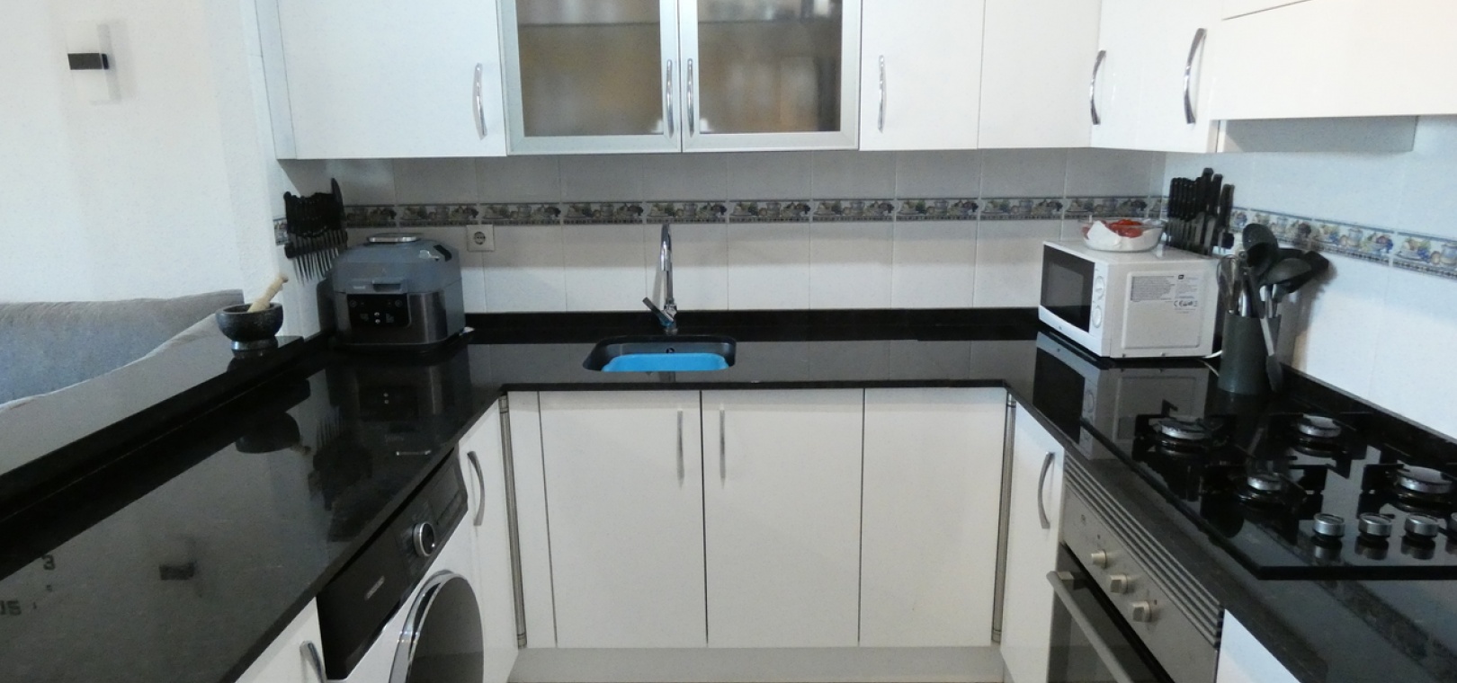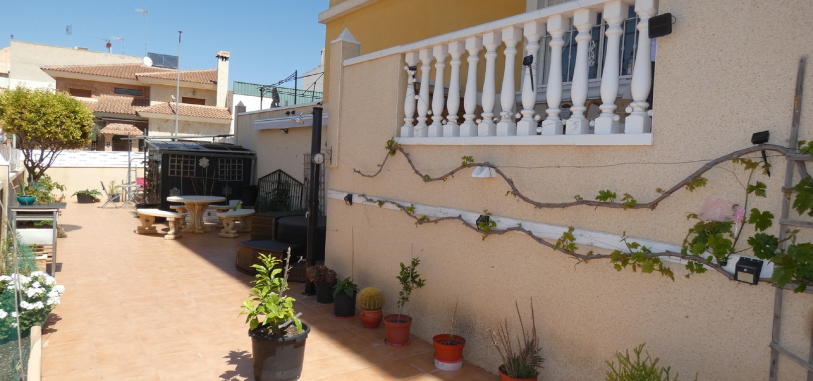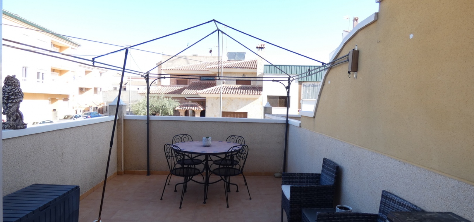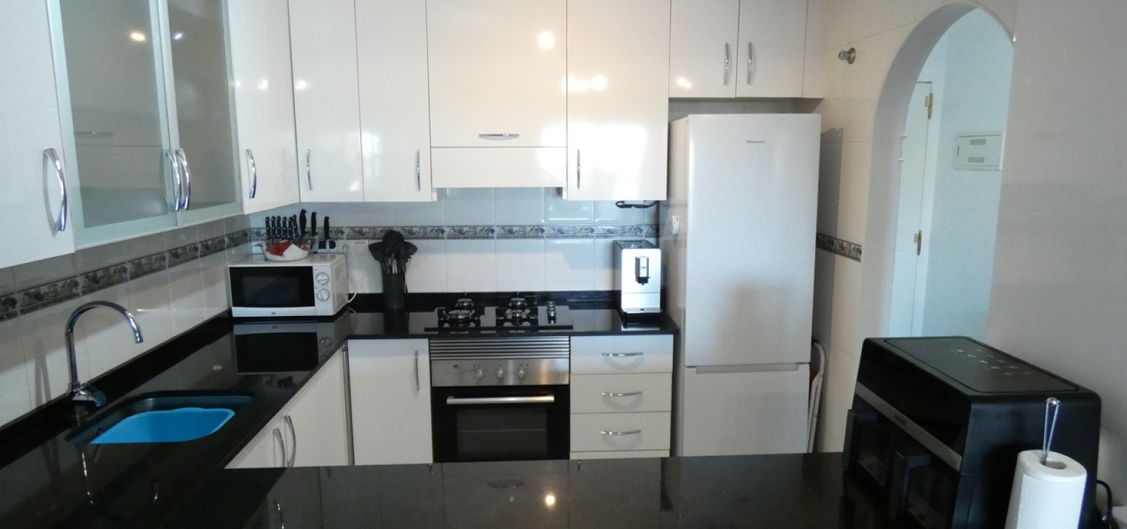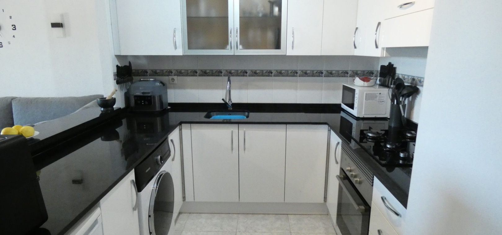 Willkommen in diesem atemberaubenden Apartment „Fontana 2“ im charmanten Dorf Algorfa. Dieses wunderschön gestaltete, nach Westen ausgerichtete Eckgrundstück im Erdgeschoss bietet viel privaten Außenbereich und ist somit die perfekte Wahl für alle, die Ruhe und ein sonniges Leben im Freien schätzen. Die Wohnung verfügt über eine großzügige Terrasse – ideal zum Entspannen, Sonnenbaden oder für Gäste. Im Inneren erwartet Sie ein modernes Wohnkonzept mit zwei Schlafzimmern und einem eleganten Badezimmer, allesamt modern und mit viel Liebe zum Detail eingerichtet. Besonders beeindruckend ist das Hauptschlafzimmer mit seiner eigenen großen privaten Terrasse, die einen ruhigen Rückzugsort mit herrlichem Blick auf die Umgebung bietet. Die Küche wurde komplett renoviert und ist sehr geräumig. Für zusätzlichen Komfort verfügt diese Immobilie über eine eigene Tiefgarage, in der Ihr Fahrzeug sicher und leicht zugänglich geparkt ist. Ob Sie den privaten Gartenbereich genießen, auf der Terrasse Sonne tanken oder in den komfortablen Innenräumen entspannen – diese Wohnung bietet die perfekte Mischung aus modernem Wohnen und Außenbereich. Die Immobilie bietet außerdem Zugang zum Gemeinschaftspool „Fontana II“.