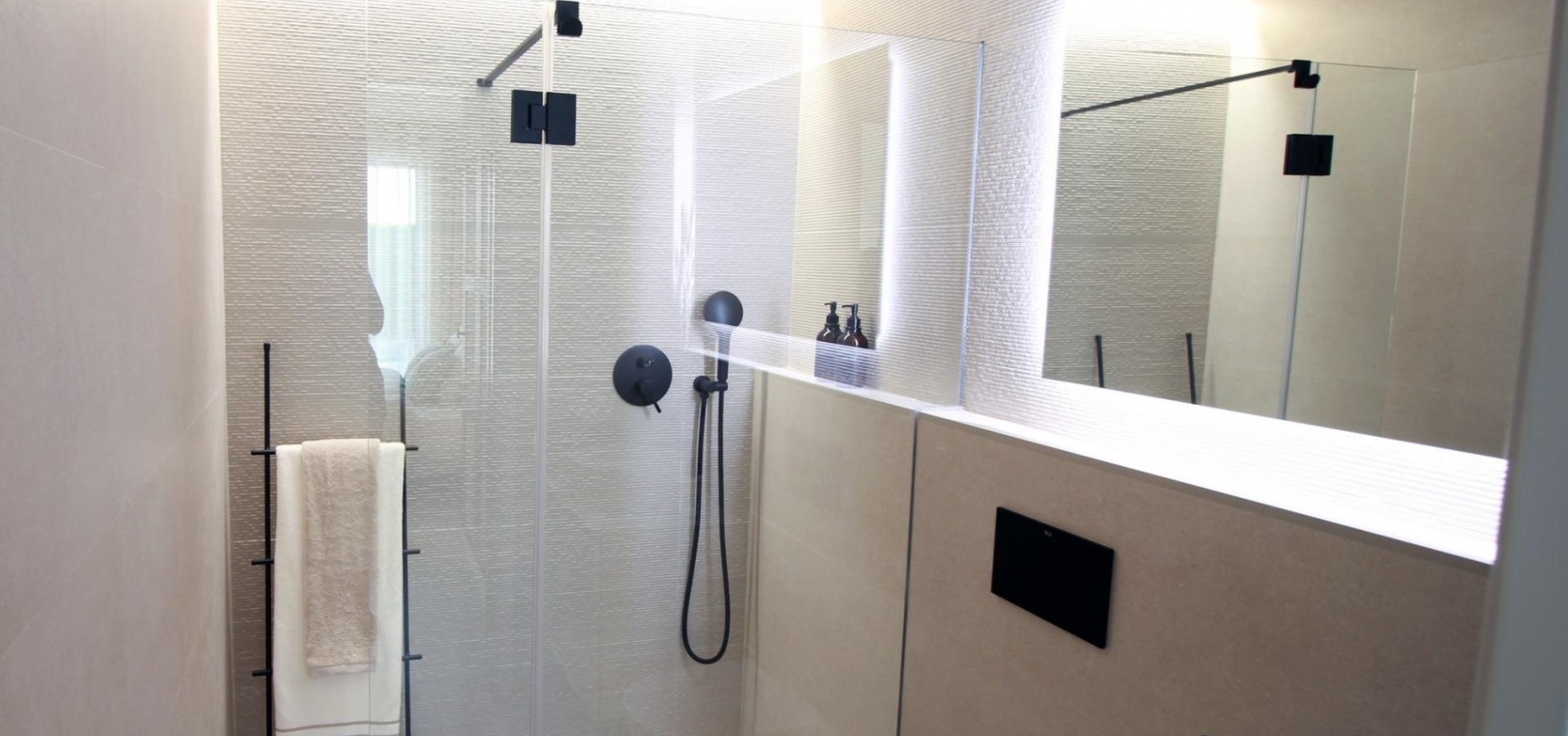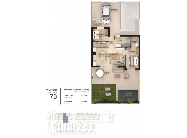 Alle Wohnungen verfügen über 2/3 Schlafzimmer, 2 Bäder, offene Küche mit Wohnbereich, Einbauschränke und Terrasse.