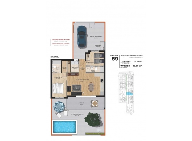 Es ist gut verbunden nur 40 Minuten von Alicante und Murcias Corvera Flughäfen, mit großen kommerziellen Einkaufszentren und mehrere Golfplätze alle leicht zu erreichen.