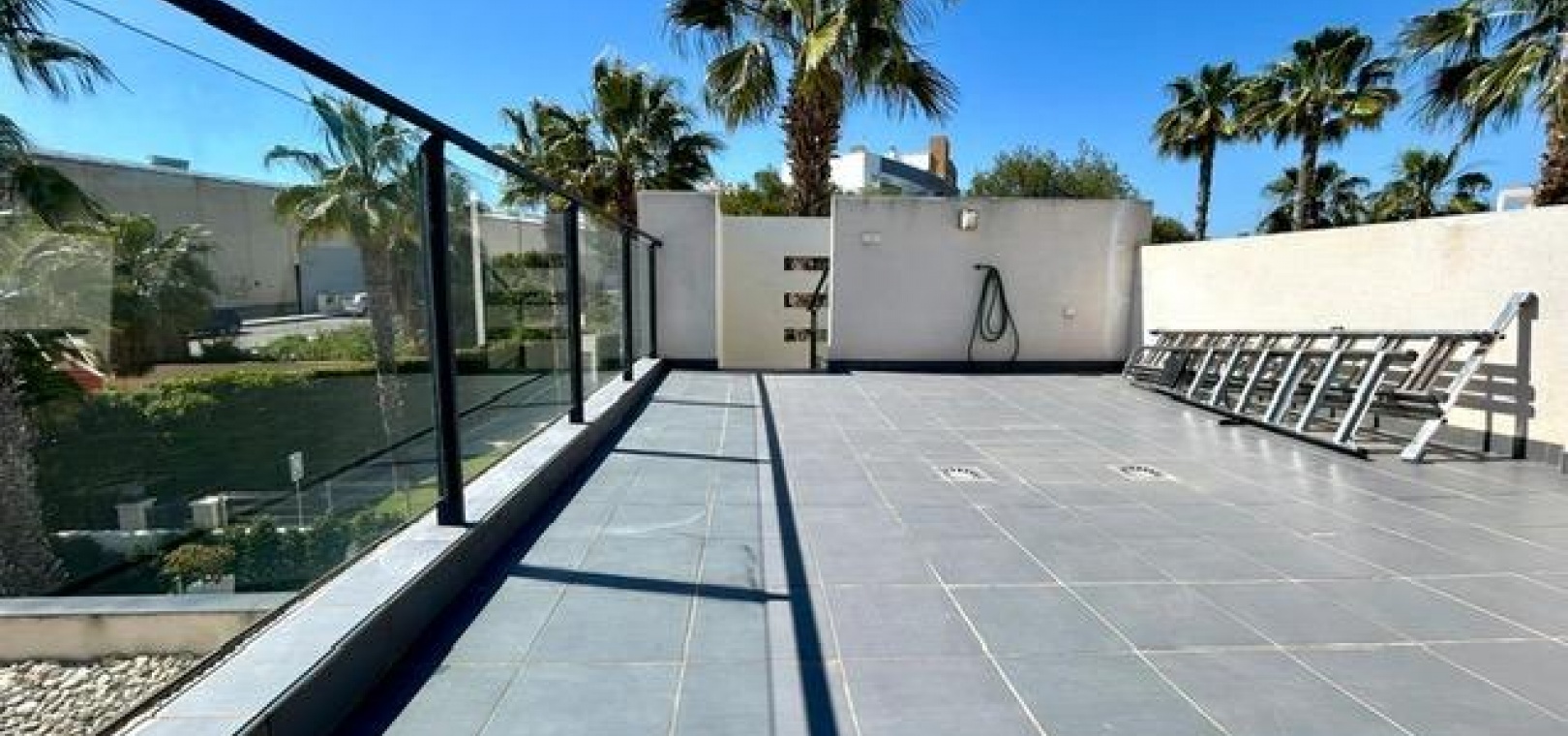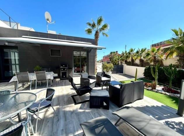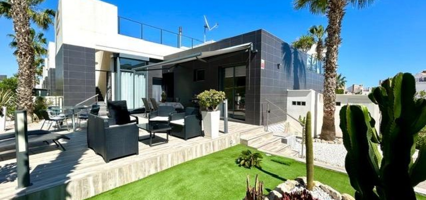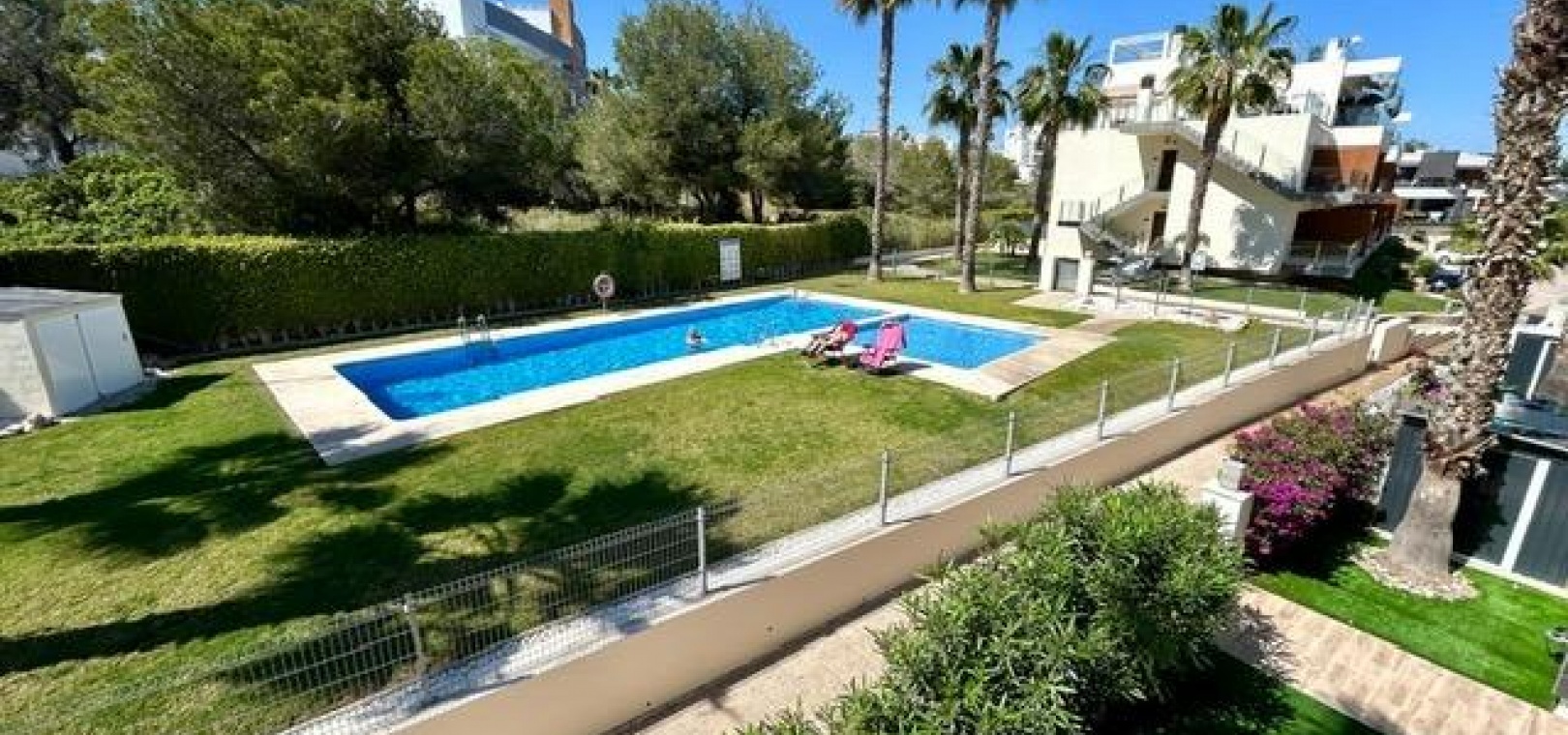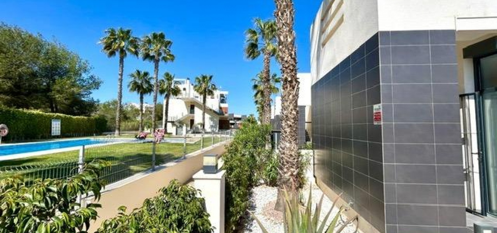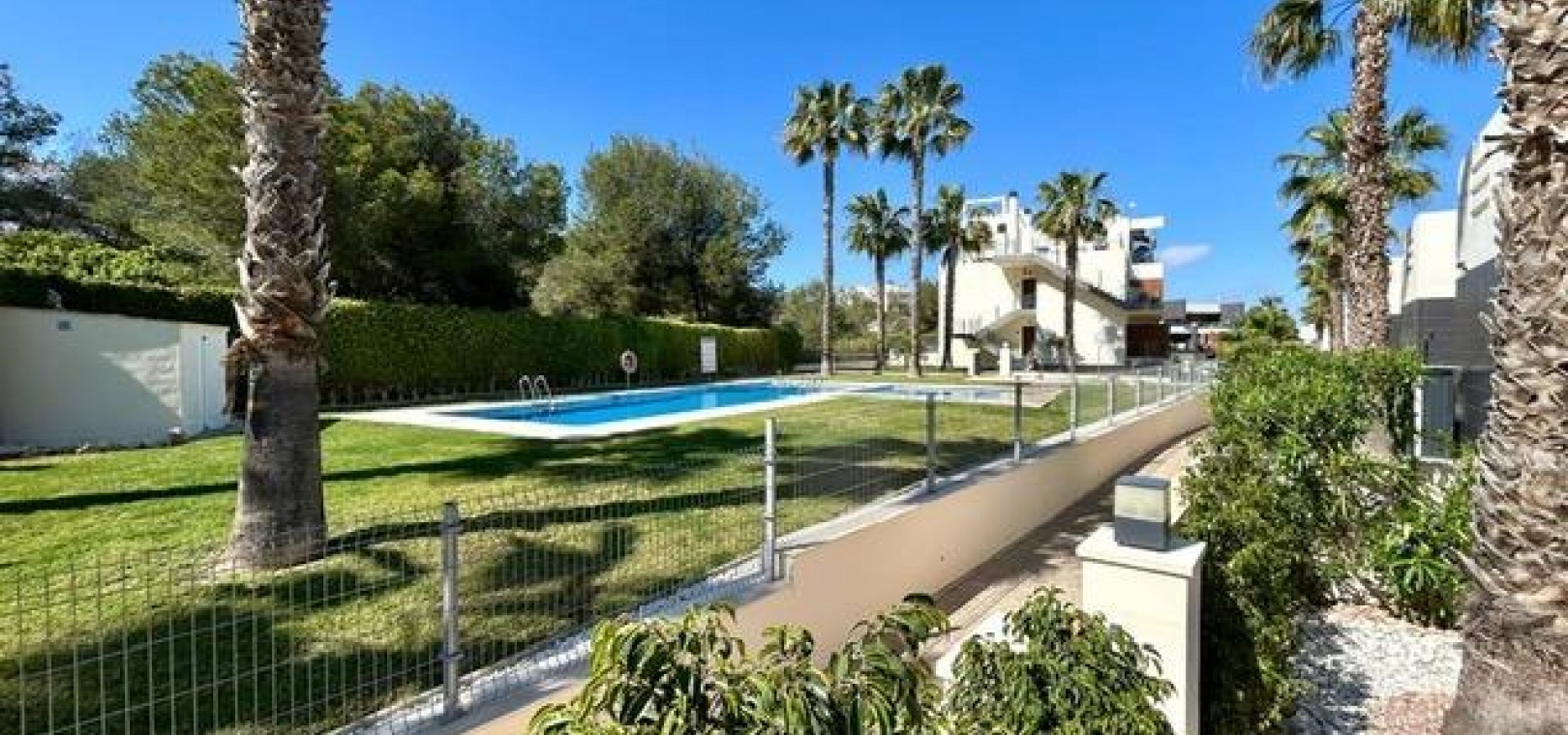 Moderne Doppelhaushälfte in Villamartín, in der Nähe des Einkaufszentrums La Fuente. Die bebaute Fläche von 78 m² verteilt sich auf mehrere Räume, verfügt über einen großen Garten und eine private Sonnenterrasse. Das Haus bietet zwei Schlafzimmer und zwei Bäder. Das Hauptschlafzimmer hat Zugang zur Terrasse und ein eigenes Bad en-suite. Das helle Wohn-Esszimmer mit hohen Decken sorgt für viel Licht und eine voll ausgestattete offene Küche mit allen notwendigen Geräten. Alle Zimmer sind klimatisiert. Das Highlight ist die große Terrasse mit Markise zum Genießen der Natur. Das Haus ist sehr gepflegt und ideal zum Einzug. Es verfügt über einen Parkplatz auf dem Grundstück und einen schönen, gepflegten Garten mit Pflanzen, Bäumen und Beleuchtung. Über die Außentreppe gelangt man zur ca. 30 m² großen Sonnenterrasse mit Blick auf den Garten und den gegenüberliegenden Gemeinschaftspool. Ein weiterer Parkplatz befindet sich auf dem Gemeinschaftsparkplatz. Eine ideale Immobilie für alle, die eine moderne Immobilie mit großem Außenbereich und in der Nähe aller Annehmlichkeiten suchen. Möbliert verkauft. Nur 5 Autominuten entfernt befinden sich mehrere Sandstrände, das Einkaufszentrum La Zenia Boulevard und mehrere Golfplätze. Das Einkaufszentrum La Fuente erreichen Sie in 5 Gehminuten.