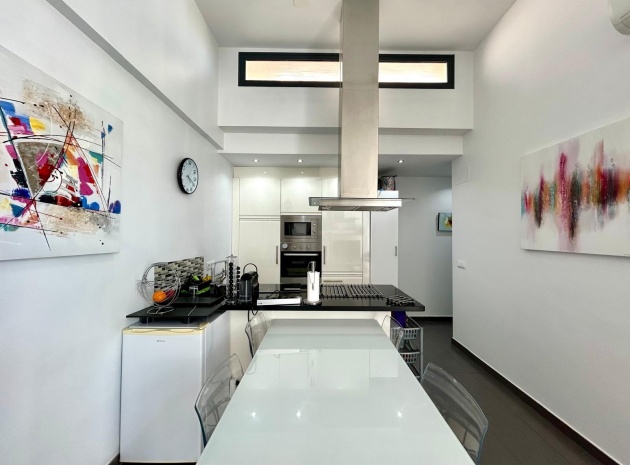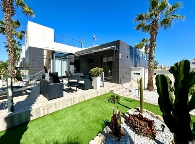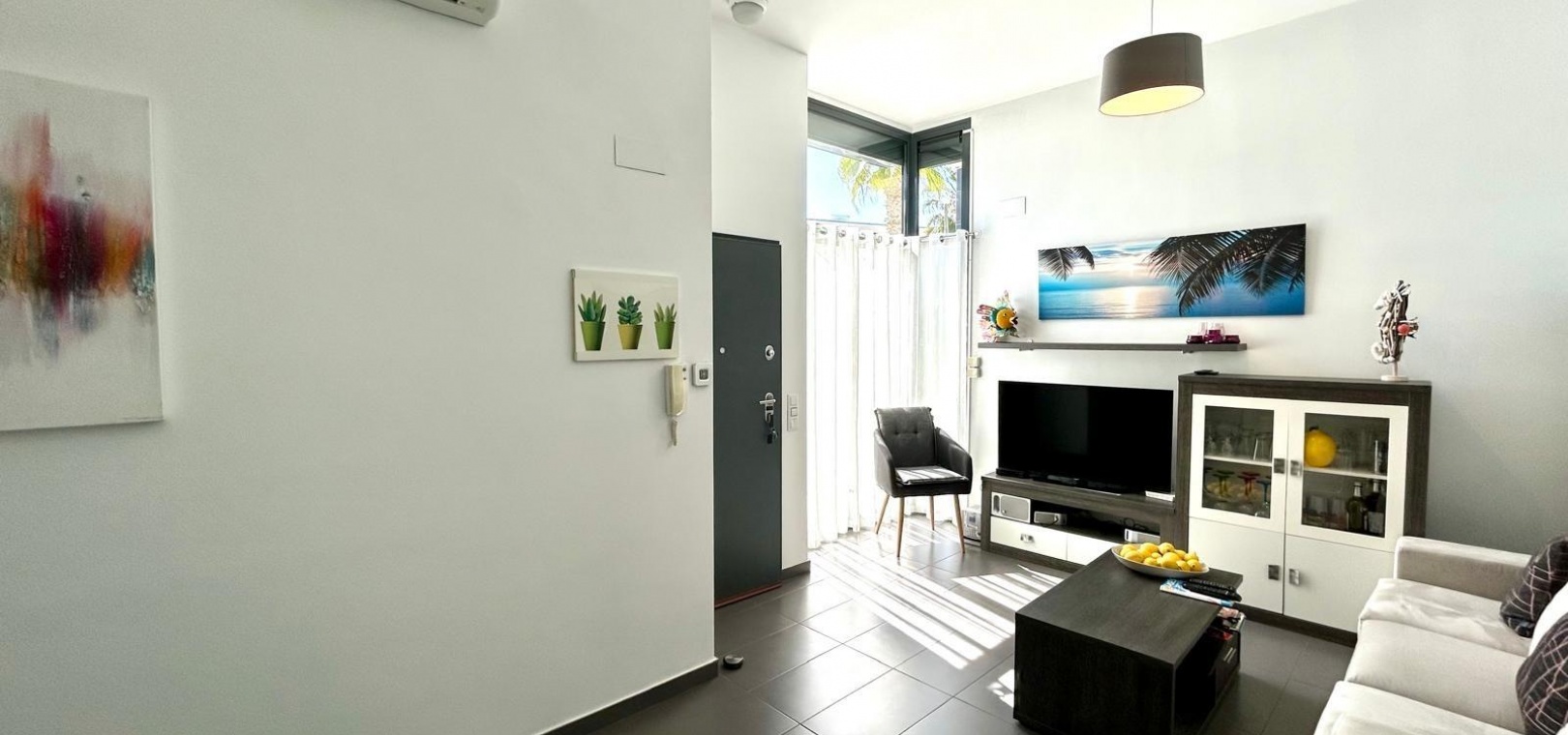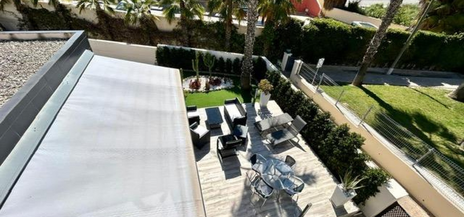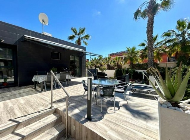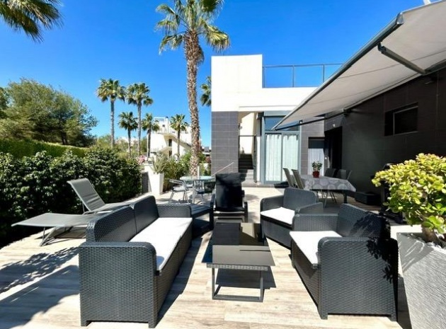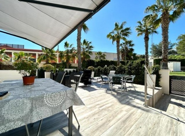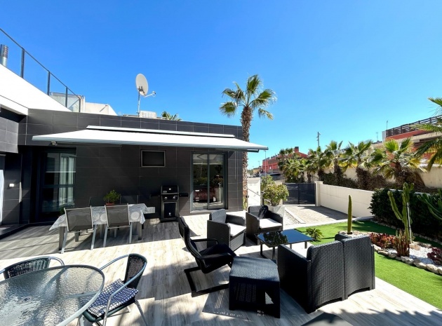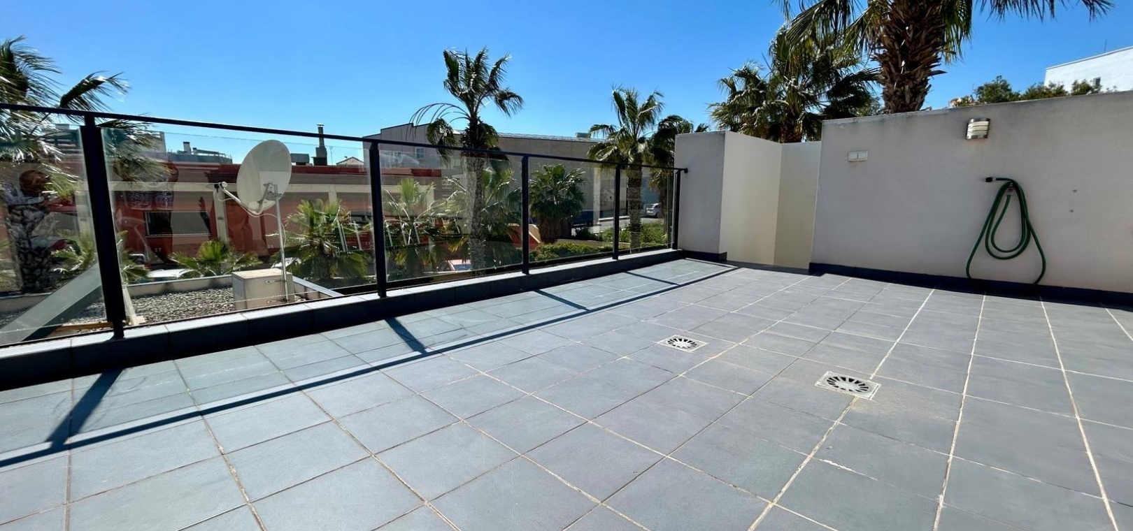 Moderne Doppelhaushälfte in Villamartín, in der Nähe des Einkaufszentrums La Fuente. Die bebaute Fläche von 78 m² verteilt sich auf mehrere Räume, verfügt über einen großen Garten und eine private Sonnenterrasse. Das Haus bietet zwei Schlafzimmer und zwei Bäder. Das Hauptschlafzimmer hat Zugang zur Terrasse und ein eigenes Bad en-suite. Das helle Wohn-Esszimmer mit hohen Decken sorgt für viel Licht und eine voll ausgestattete offene Küche mit allen notwendigen Geräten. Alle Zimmer sind klimatisiert. Das Highlight ist die große Terrasse mit Markise zum Genießen der Natur. Das Haus ist sehr gepflegt und ideal zum Einzug. Es verfügt über einen Parkplatz auf dem Grundstück und einen schönen, gepflegten Garten mit Pflanzen, Bäumen und Beleuchtung. Über die Außentreppe gelangt man zur ca. 30 m² großen Sonnenterrasse mit Blick auf den Garten und den gegenüberliegenden Gemeinschaftspool. Ein weiterer Parkplatz befindet sich auf dem Gemeinschaftsparkplatz. Eine ideale Immobilie für alle, die eine moderne Immobilie mit großem Außenbereich und in der Nähe aller Annehmlichkeiten suchen. Möbliert verkauft. Nur 5 Autominuten entfernt befinden sich mehrere Sandstrände, das Einkaufszentrum La Zenia Boulevard und mehrere Golfplätze. Das Einkaufszentrum La Fuente erreichen Sie in 5 Gehminuten.