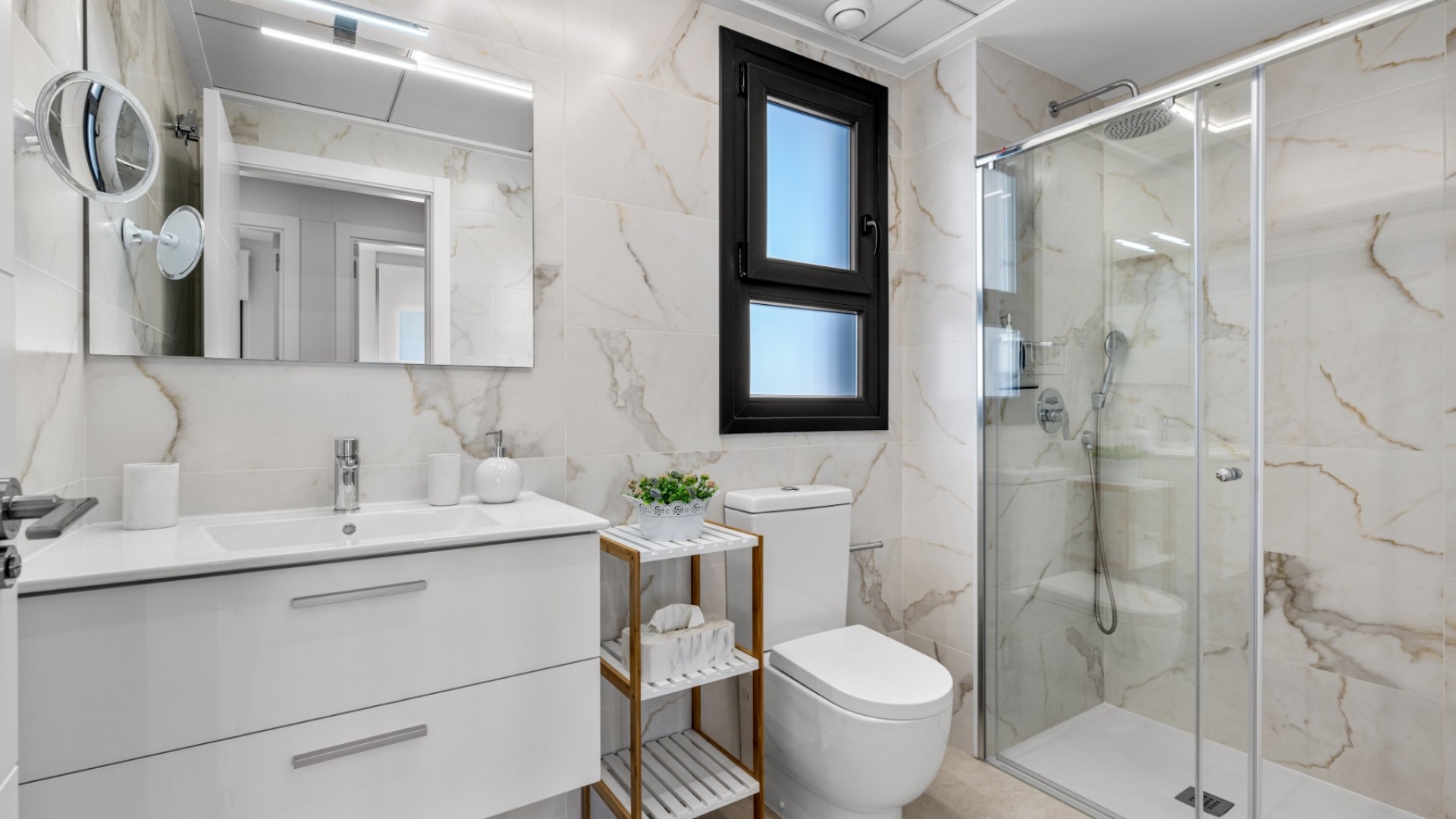 Das Anwesen verfügt über drei geräumige Schlafzimmer, eines davon mit modernem Bad en suite, und insgesamt zwei elegante Badezimmer. Der helle und offene Wohnbereich geht nahtlos in eine großzügige Terrasse über, die über ein privates Solarium verfügt und einen atemberaubenden Meerblick bietet.