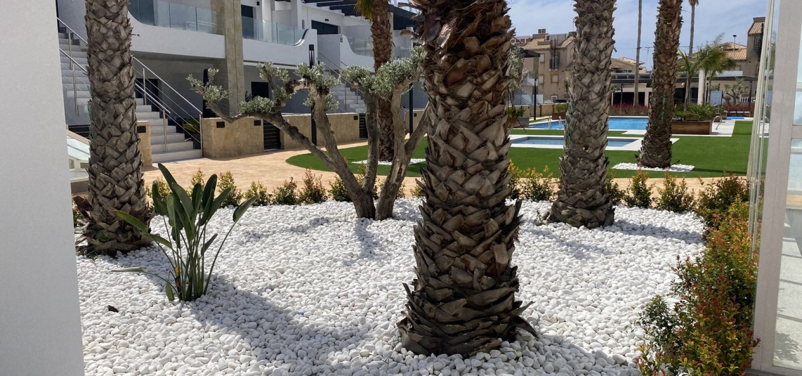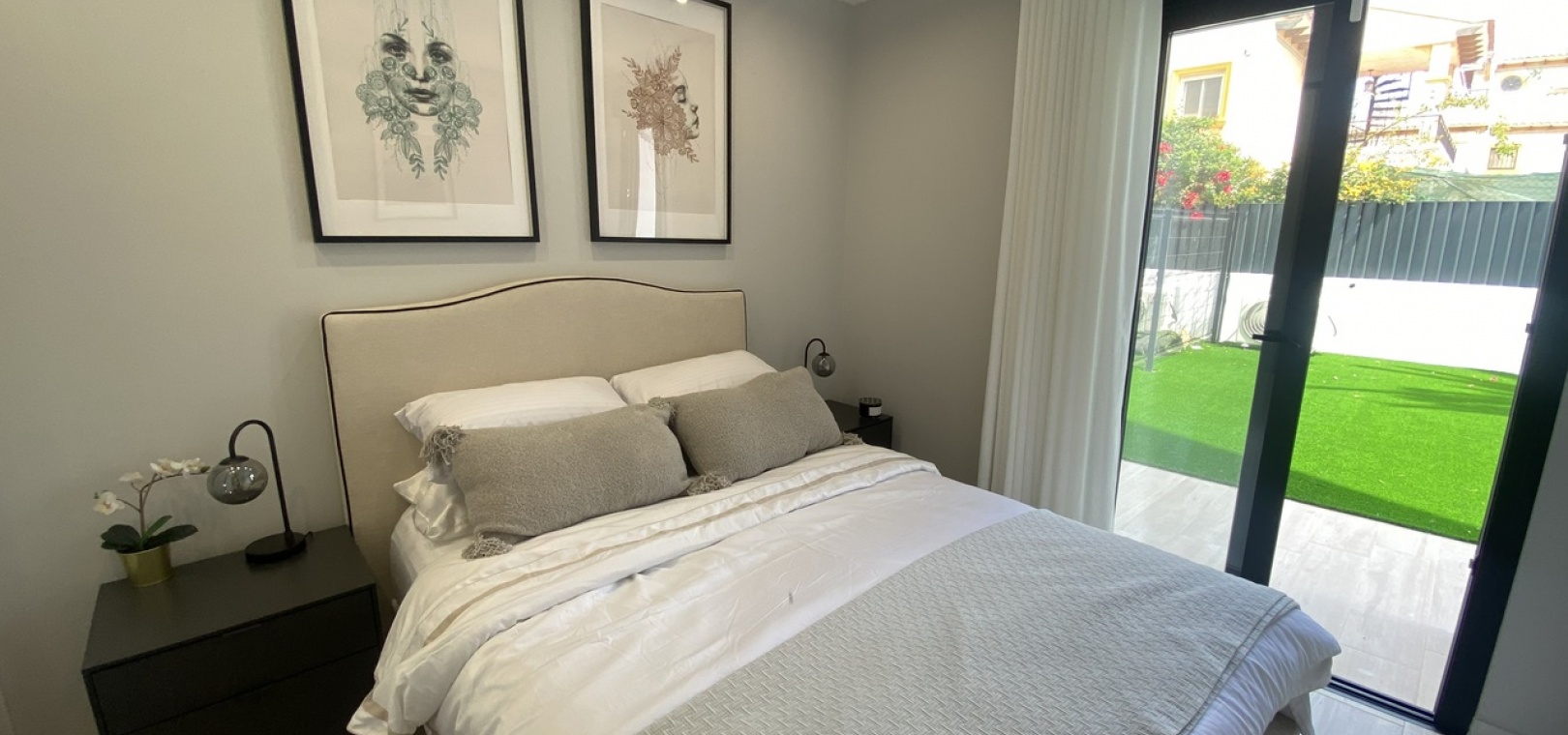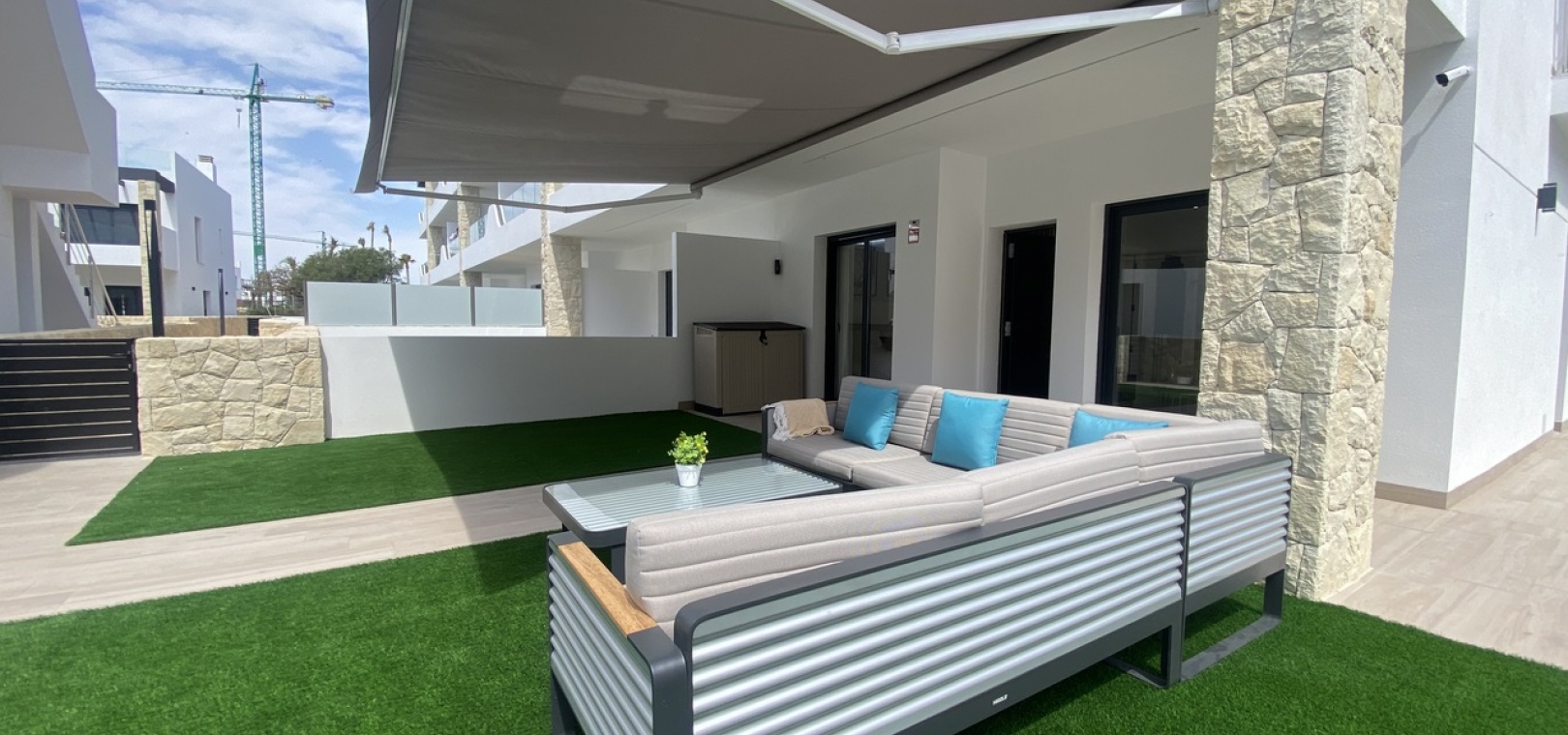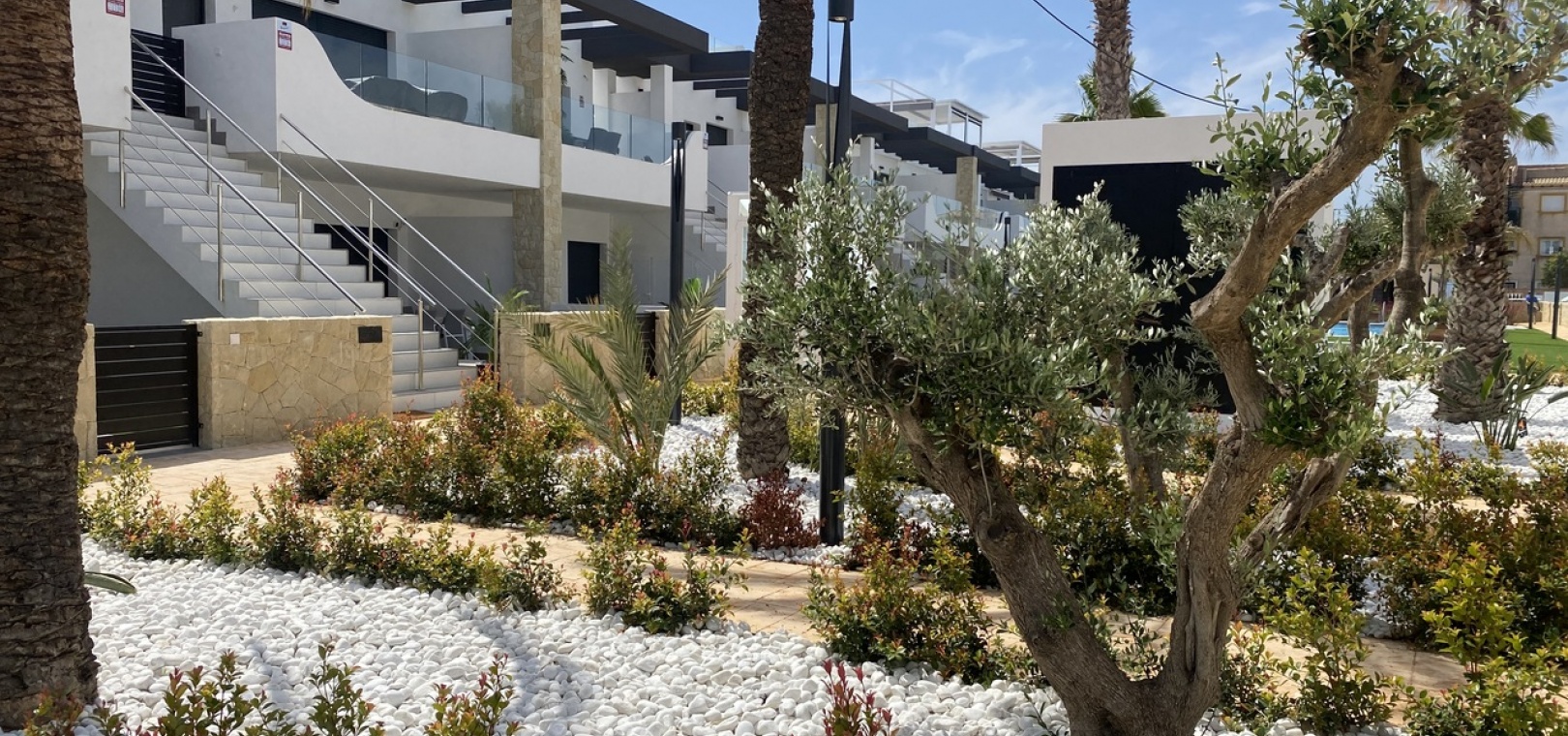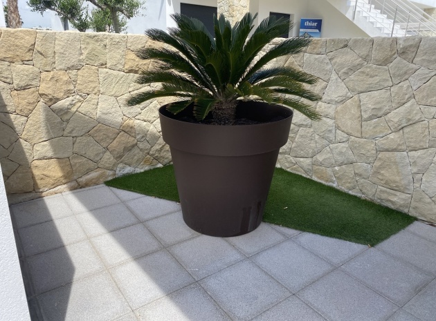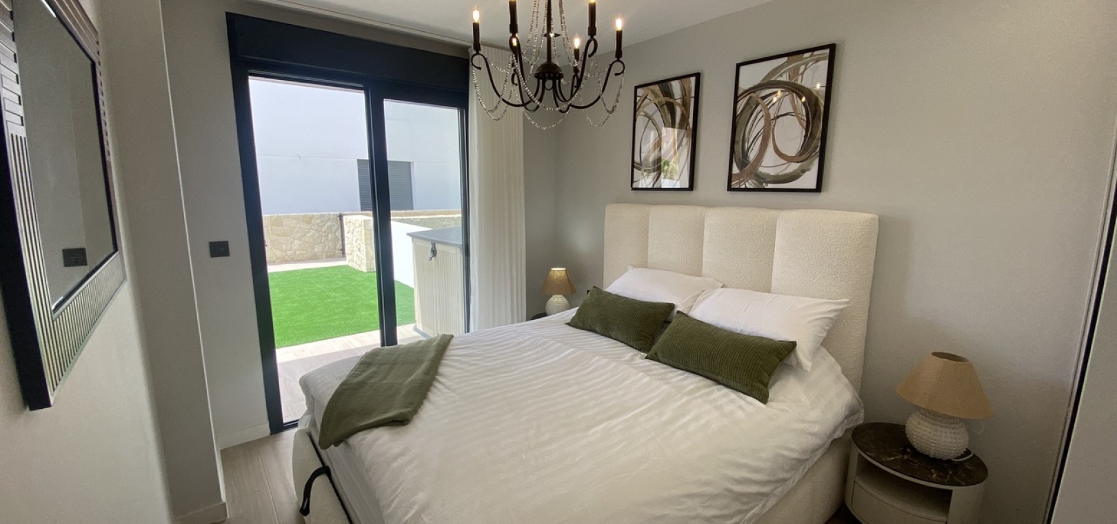 Hauptmerkmale: Luxus im Erdgeschoss: Genießen Sie unbeschwertes Wohnen mit nahtlosem Zugang zu Ihrer privaten Oase. Großzügiger Außenbereich: Sie wohnen auf einem großzügigen 300 m² großen Grundstück mit einem atemberaubenden 200 m² großen privaten Garten – perfekt zum Unterhalten, Entspannen oder Genießen der mediterranen Sonne und mit Platz zum Bau Ihres ganz persönlichen privaten Pools. Annehmlichkeiten im Resort-Stil: