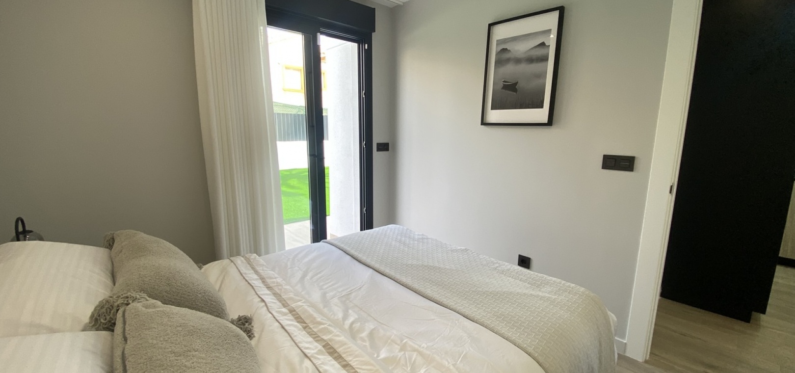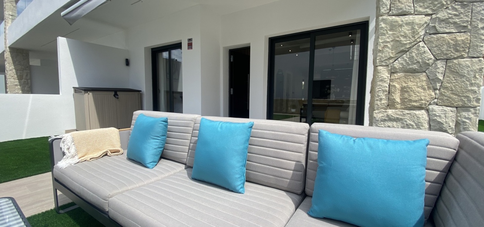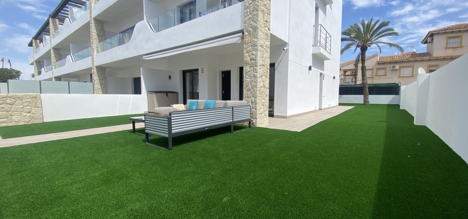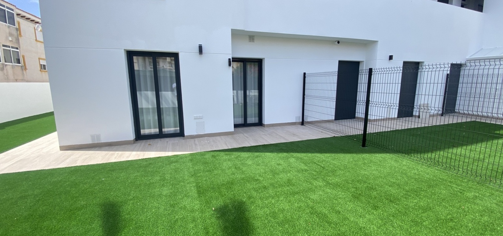 Hauptmerkmale: Luxus im Erdgeschoss: Genießen Sie unbeschwertes Wohnen mit nahtlosem Zugang zu Ihrer privaten Oase. Großzügiger Außenbereich: Sie wohnen auf einem großzügigen 300 m² großen Grundstück mit einem atemberaubenden 200 m² großen privaten Garten – perfekt zum Unterhalten, Entspannen oder Genießen der mediterranen Sonne und mit Platz zum Bau Ihres ganz persönlichen privaten Pools. Annehmlichkeiten im Resort-Stil: