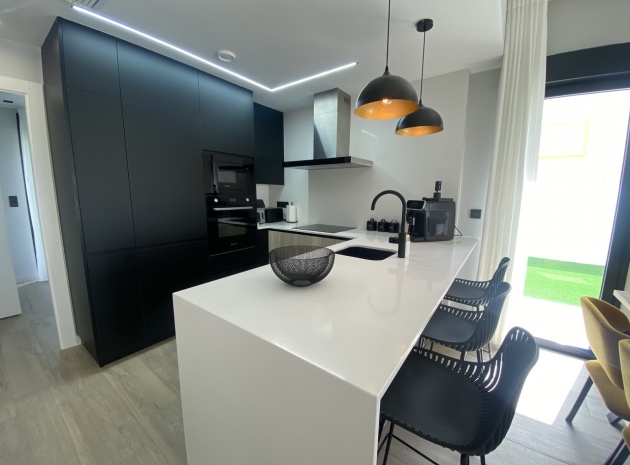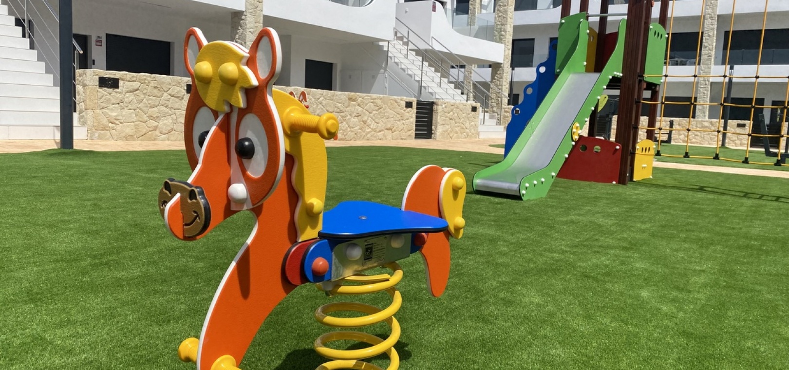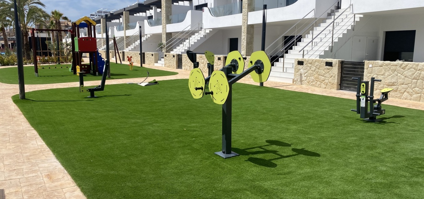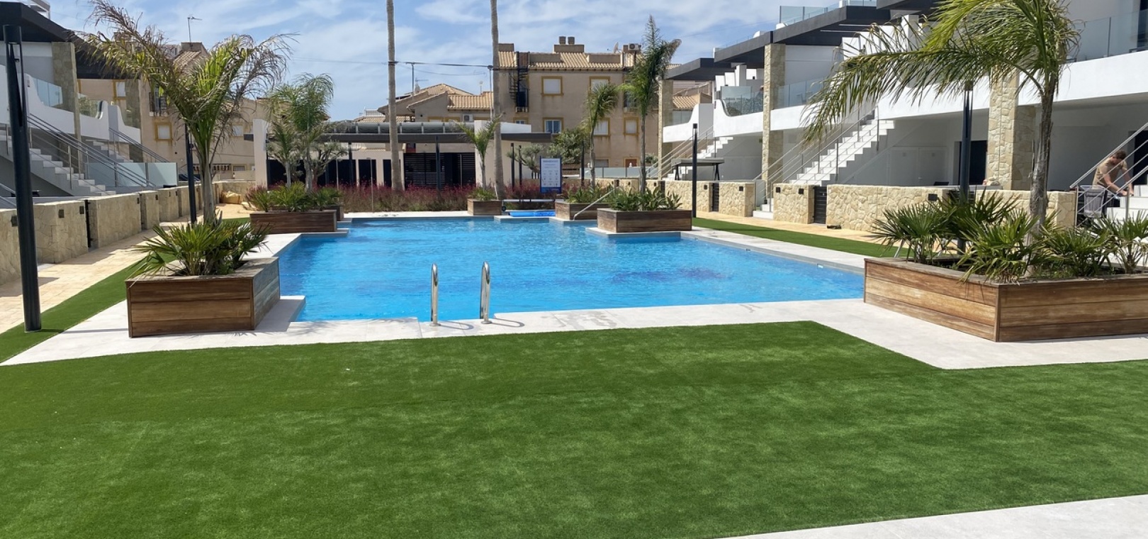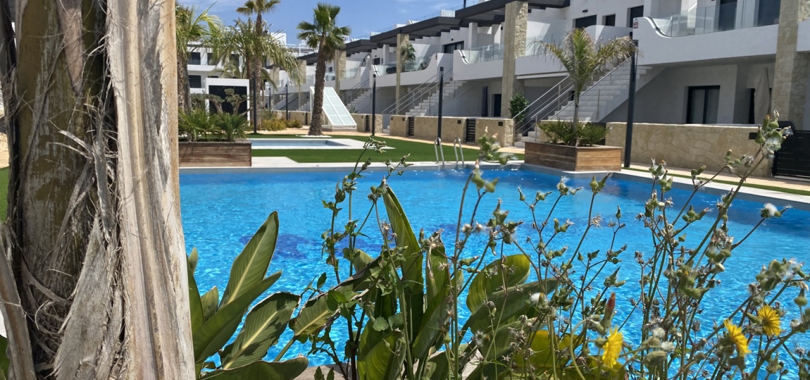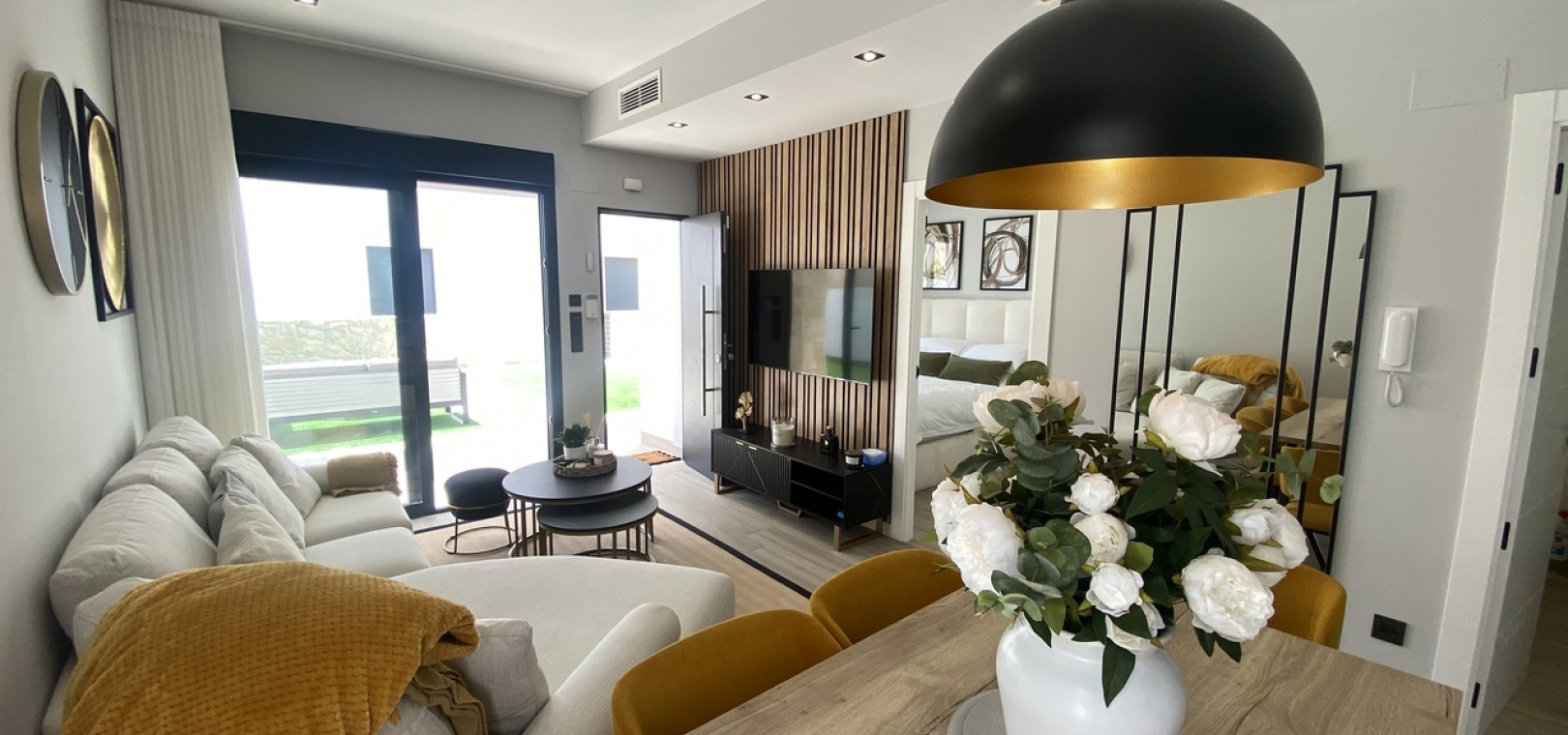 Hauptmerkmale: Luxus im Erdgeschoss: Genießen Sie unbeschwertes Wohnen mit nahtlosem Zugang zu Ihrer privaten Oase. Großzügiger Außenbereich: Sie wohnen auf einem großzügigen 300 m² großen Grundstück mit einem atemberaubenden 200 m² großen privaten Garten – perfekt zum Unterhalten, Entspannen oder Genießen der mediterranen Sonne und mit Platz zum Bau Ihres ganz persönlichen privaten Pools. Annehmlichkeiten im Resort-Stil: