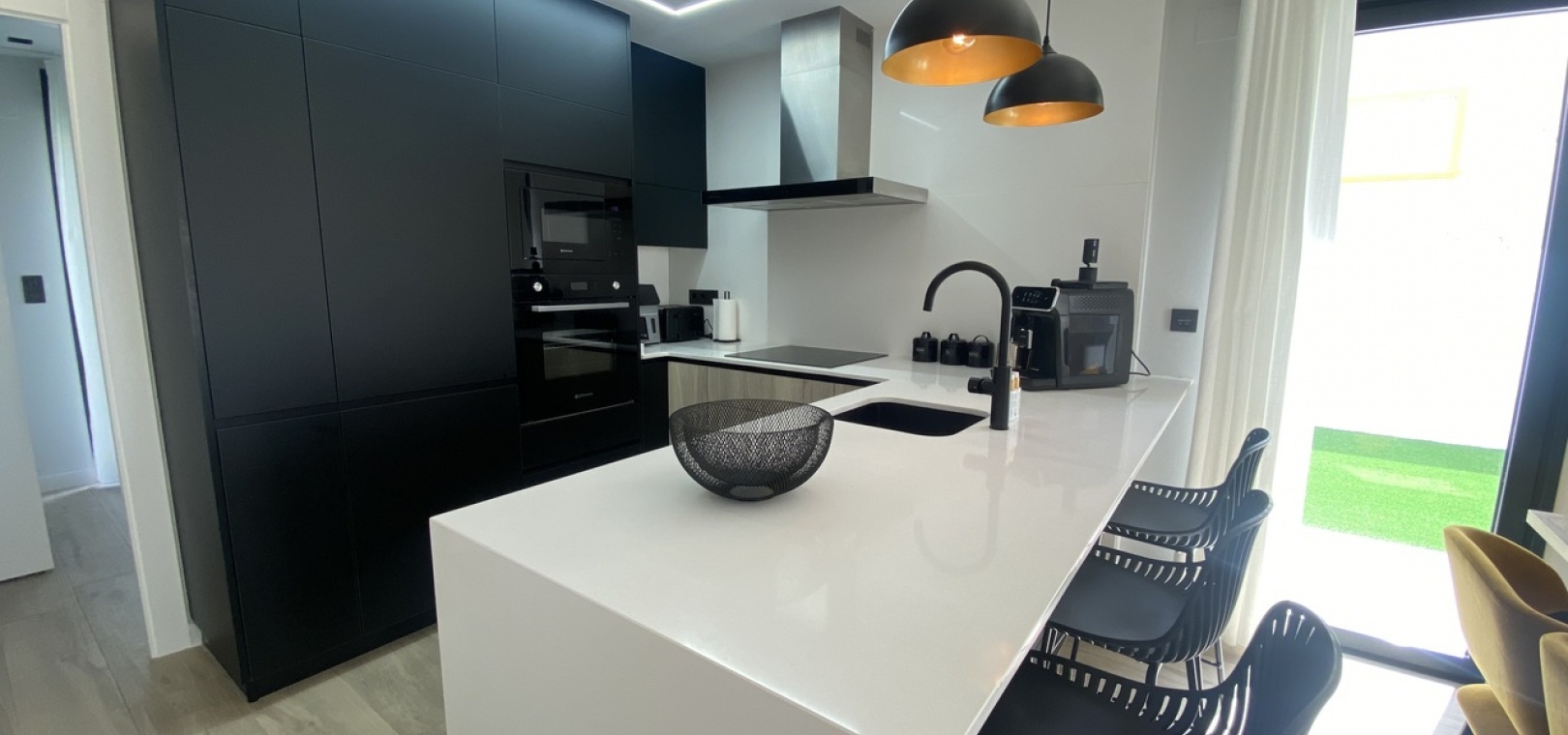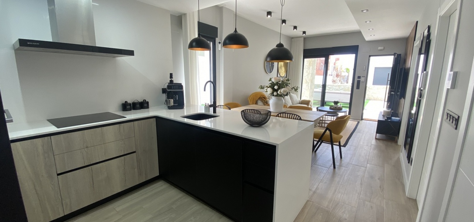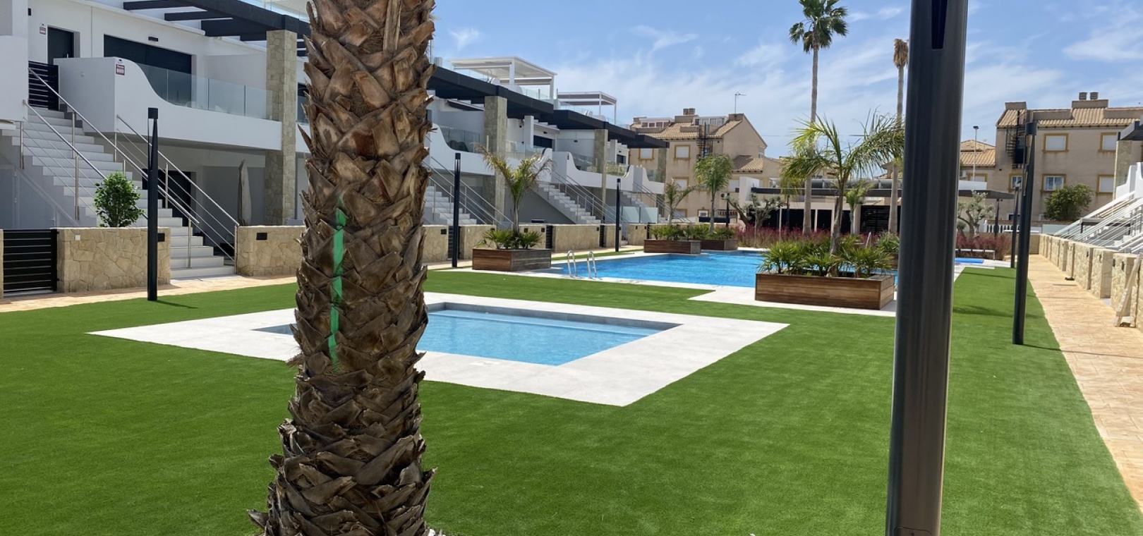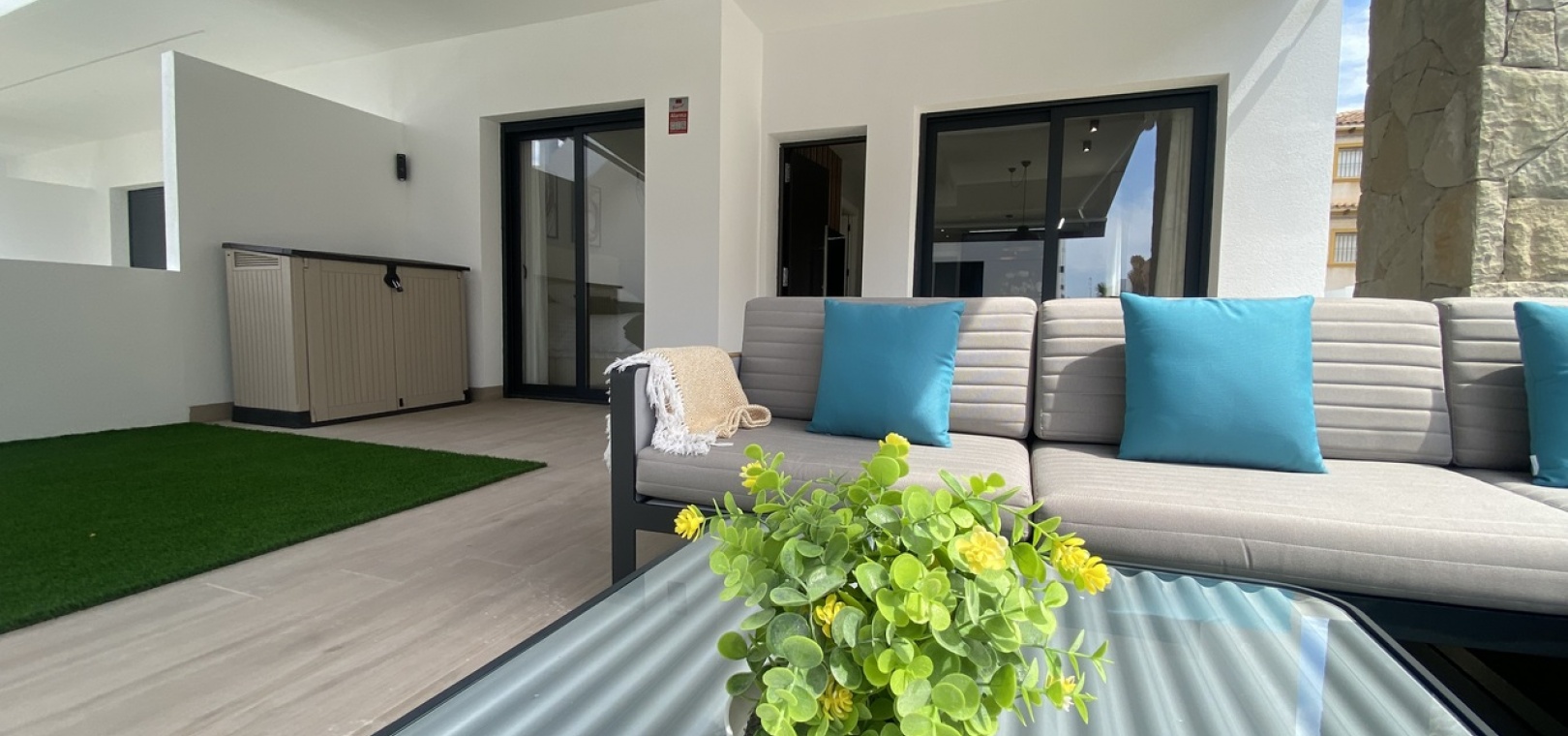 Exklusive Gelegenheit am Innova Beach I – Punta Prima Willkommen in Ihrem Traumhaus in einer der begehrtesten Wohnanlagen von Orihuela Costa – Innova Beach I! Sichern Sie sich dieses brandneue, moderne, ebenerdige Luxus-Haus mit 3 Schlafzimmern und 2 Bädern auf einem privaten Eckgrundstück in einer komplett ausverkauften Anlage.