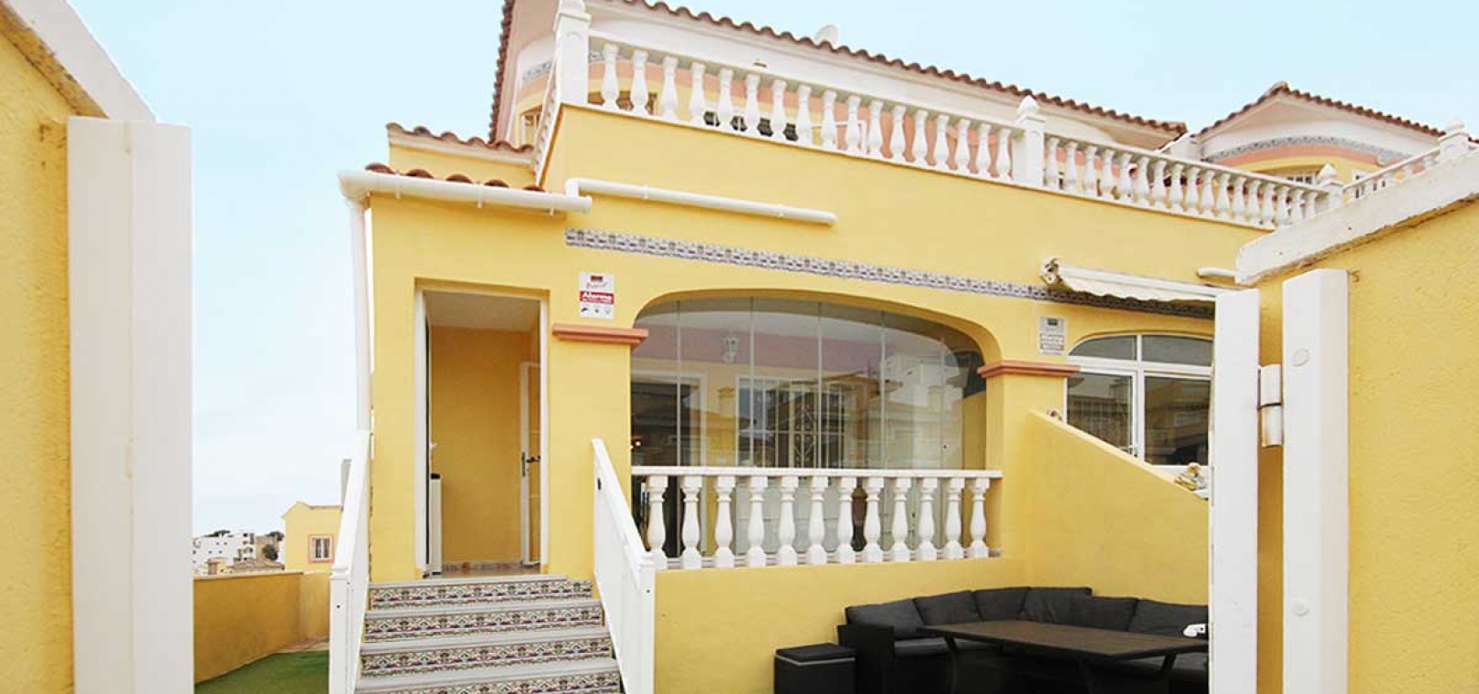 Eine nach Südwesten ausgerichtete Doppelhaushälfte mit 3 Schlafzimmern und 1,5 Bädern in El Galan, Villamartin, Costa Blanca.