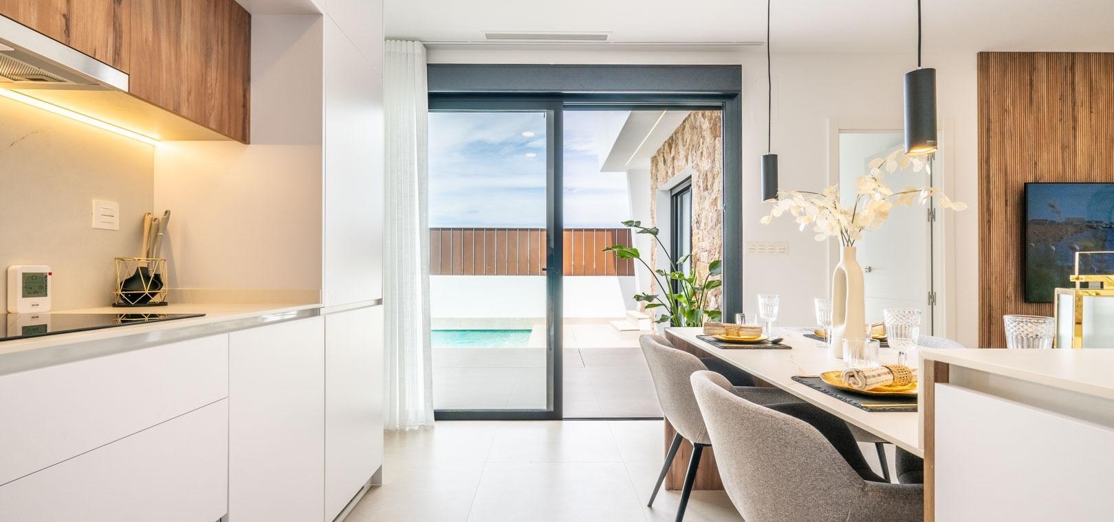 Diese neu gebauten Villen mit 3 Schlafzimmern und 3 Bädern in Roldán, Torre-Pacheco, bieten ein zeitgemäßes und ökologisches Design, das auf Komfort und mediterranes Wohngefühl ausgelegt ist. Jedes Haus ist auf zwei Etagen gebaut und verfügt über ein großes, offenes Wohn-Esszimmer mit einer modernen, voll ausgestatteten Küche, die sich nahtlos zu den großzügigen Terrassen hin öffnet.