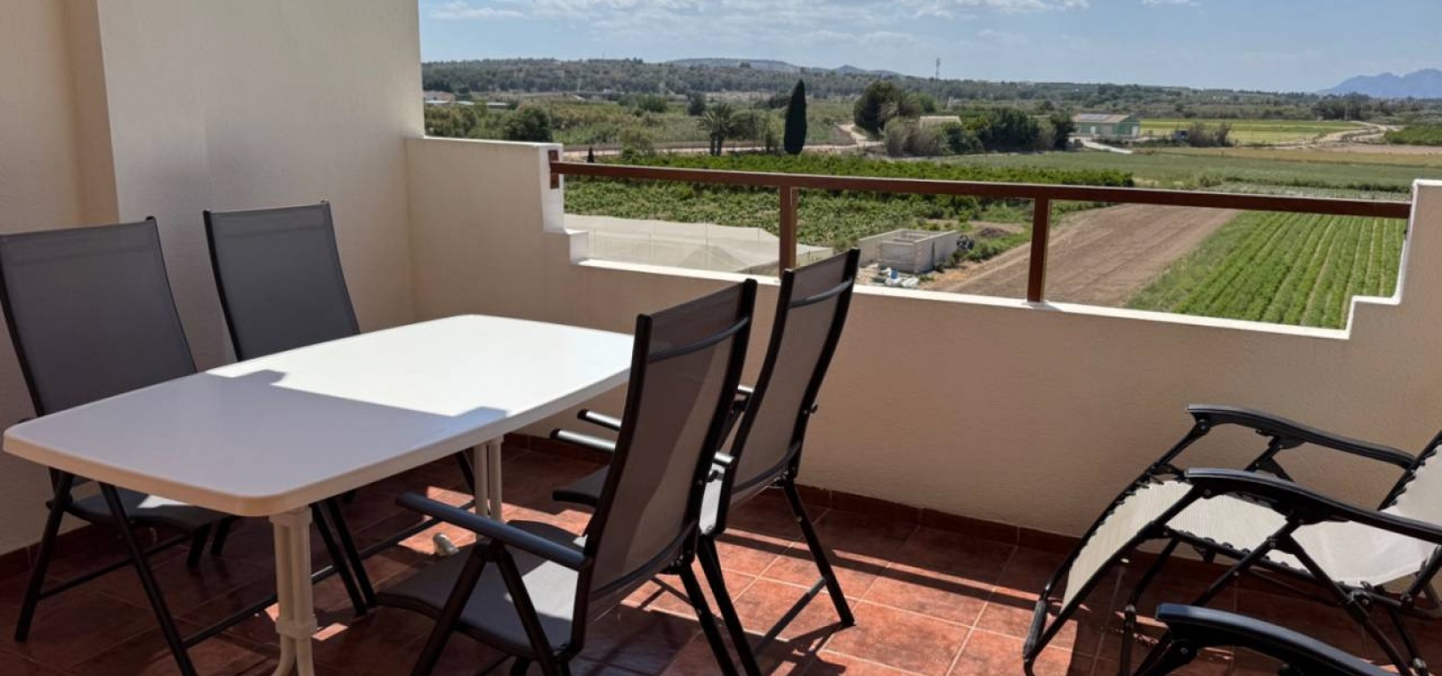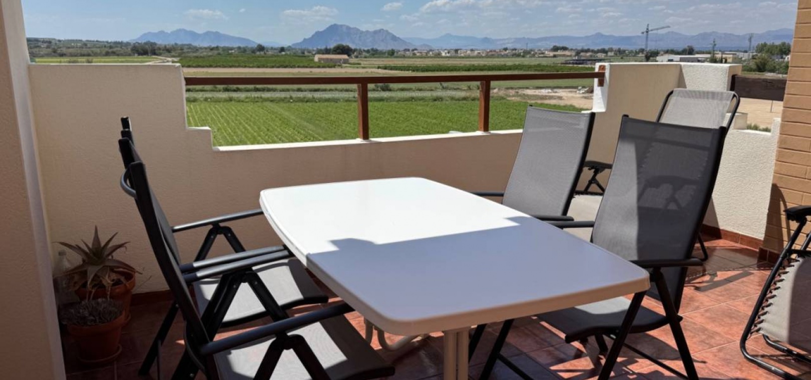 2 Schlafzimmer – 1 Badezimmer – 68 m² Wohnfläche – 10 m² Terrasse – Gemeinschaftspool – Ausgezeichneter Zustand Diese wunderschön präsentierte Dachgeschosswohnung in Formentera del Segura bietet von ihrer privaten Westterrasse einen spektakulären Panoramablick auf die Berge und die Landschaft. In ruhiger und dennoch zentraler Lage, befindet sich das Anwesen in Gehweite zu lokalen Geschäften, Bars und Restaurants, nur 15 Minuten von den Stränden von Guardamar del Segura und 40 Minuten vom Flughafen Alicante entfernt. Eigenschaften der Immobilie: 2 Doppelschlafzimmer mit Einbauschränken1 modernes BadezimmerOffener Wohn- und EssbereichKomplett ausgestattete Küche mit ElektrogerätenKlimaanlage (Warm/Kalt)Private Westterrasse mit ToldosFliegengitter installiertMöbel verhandelbarAufzugZugangParkplätze an der Straße vorhandenVDO/GegensprechanlageEPC in Bearbeitung Außenbereich: Genießen Sie atemberaubende Sonnenuntergänge und freie Aussichten von der 10 m² großen privaten Terrasse oder entspannen Sie auf dem gemeinschaftlichen Solarium. Die Westausrichtung sorgt für reichlich Sonne am Nachmittag, ideal für Mahlzeiten im Freien oder zum Entspannen mit Blick auf die umliegende Landschaft und die Berge. Weitere Annehmlichkeiten: Gemeinschaftspool, Solarium auf dem Dach, Glasfaser-Internet verfügbar, sicheres und gepflegtes Gebäude. Highlights der Lage: 1 Gehminute zu Geschäften, Cafés und lokalen Dienstleistungen, 15 Minuten zum Strand (Guardamar del Segura), 40 Minuten zum Flughafen Alicante, 15 Minuten zum Golfplatz La Marquesa, in der Nähe von Schulen und der Küste. Diese Immobilie eignet sich ideal zum dauerhaften Wohnen, als Ferienhaus oder als attraktive Mietinvestition. Im Herzen der Costa Blanca gelegen, bietet Formentera del Segura die perfekte Mischung aus traditionellem spanischen Lebensstil und modernem Komfort. Kontaktieren Sie uns noch heute, um einen Besichtigungstermin zu vereinbaren oder weitere Informationen anzufordern.