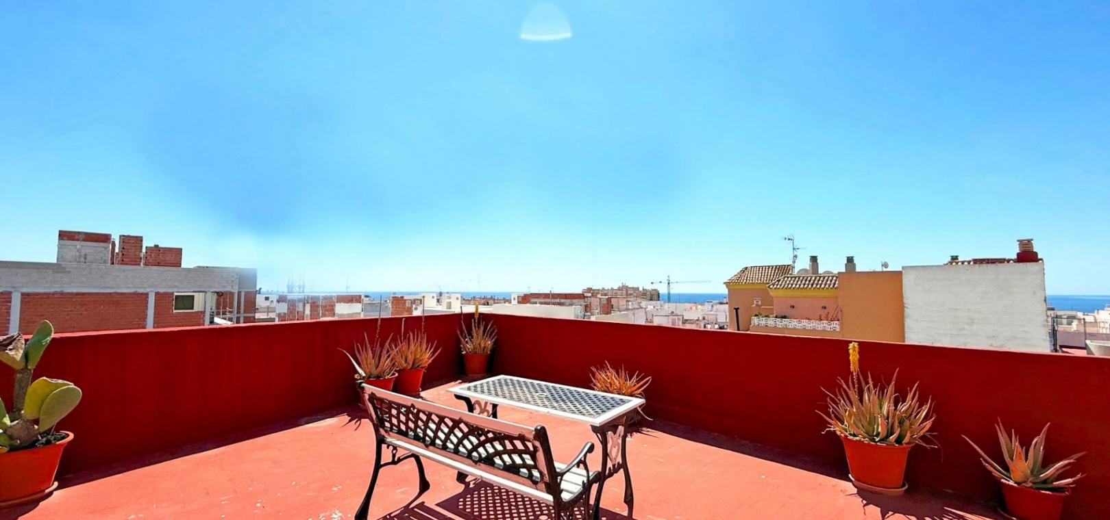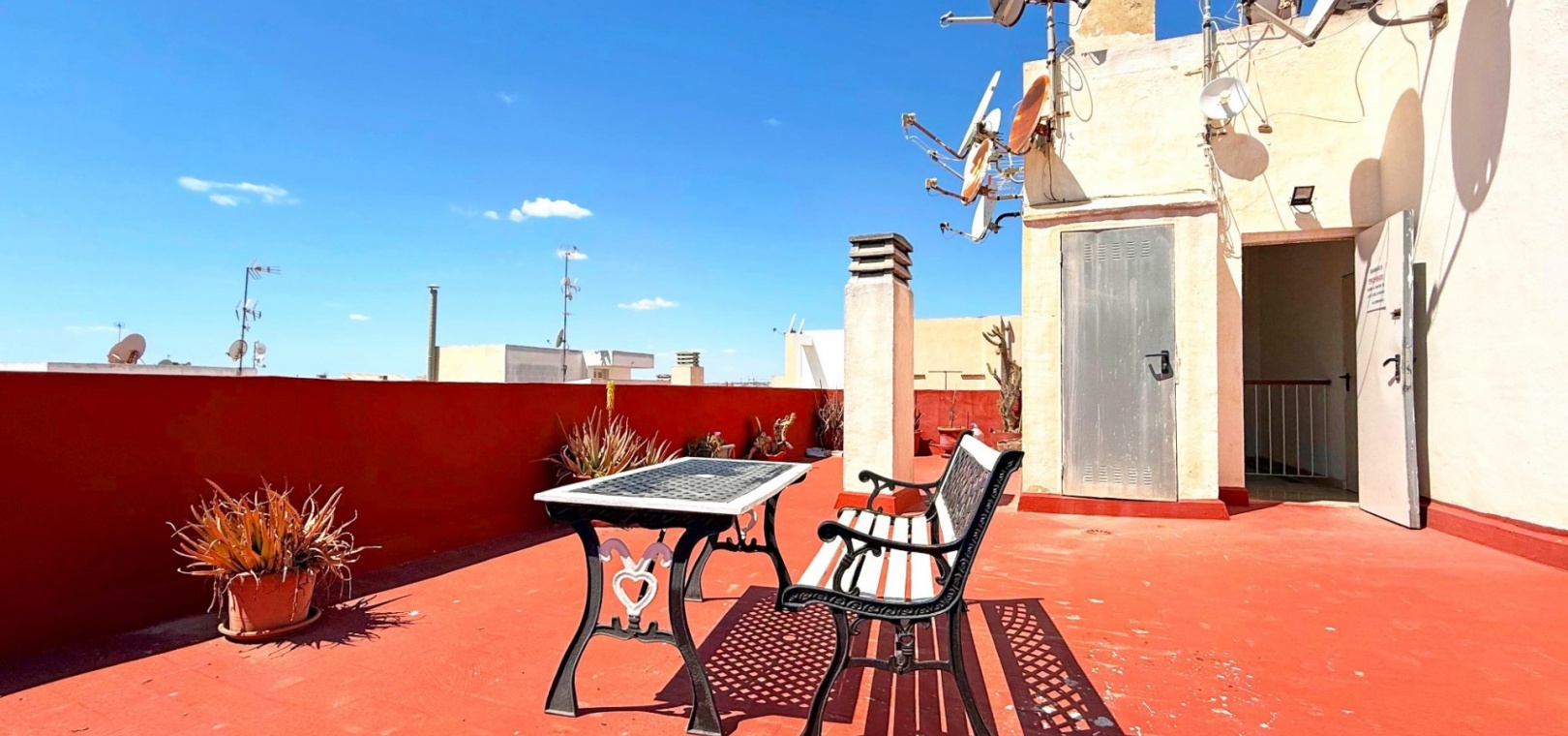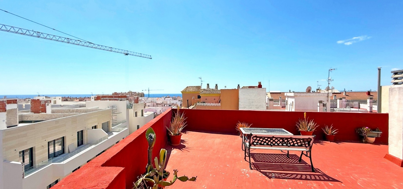 Die Wohnung befindet sich in einem gepflegten Gebäude mit Aufzug und bietet den Bewohnern außerdem eine gemeinschaftliche Sonnenterrasse mit Loungebereich und atemberaubendem Panoramablick auf das Meer.
