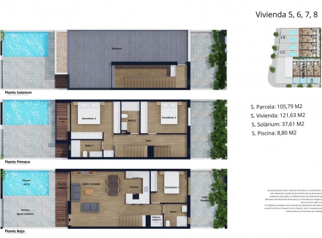 Die Wohnanlage besteht aus 8 Reihenhäusern mit 3 Schlafzimmern und 3 Bädern, alle mit privatem Pool, Sonnenterrasse mit Sommerküche und Parkplatz auf dem Grundstück. Darüber hinaus wird eines der Häuser komplett möbliert und bezugsfertig übergeben, mit 2 Schlafzimmern und 2 Bädern.