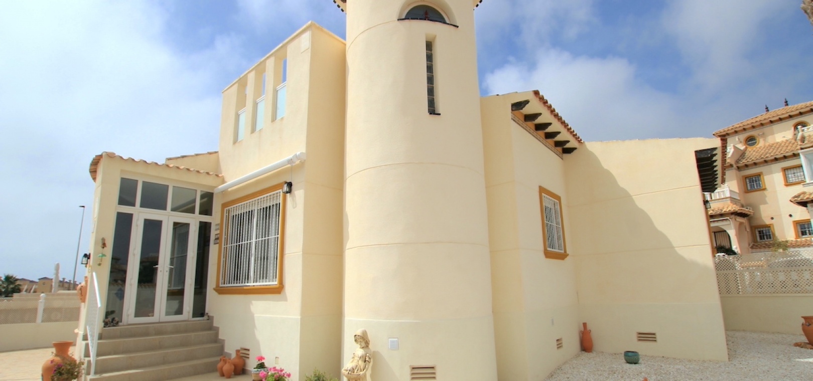 Hier haben wir eine helle, geräumige und außergewöhnlich gut präsentierte freistehende Villa zum Verkauf in der etablierten Wohngegend Lomas De Cabo Roig – Costa Blanca Süd.