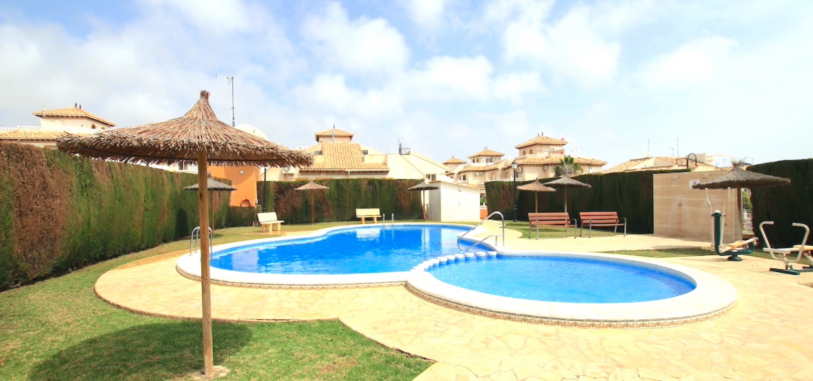 Das Anwesen (Baujahr ca. 2006) ist Teil einer attraktiven Anlage (Playa Golf I), die über einen attraktiven Gemeinschaftspool und Grünflächen verfügt.