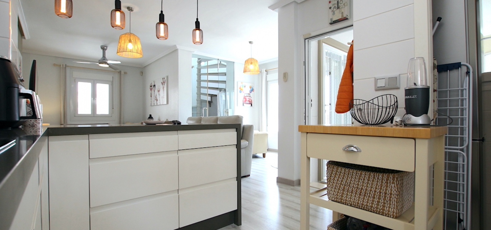 Es erwartet Sie eine große Designerküche mit viel Stauraum, Arbeitsflächen und einem separaten Hauswirtschaftsraum.