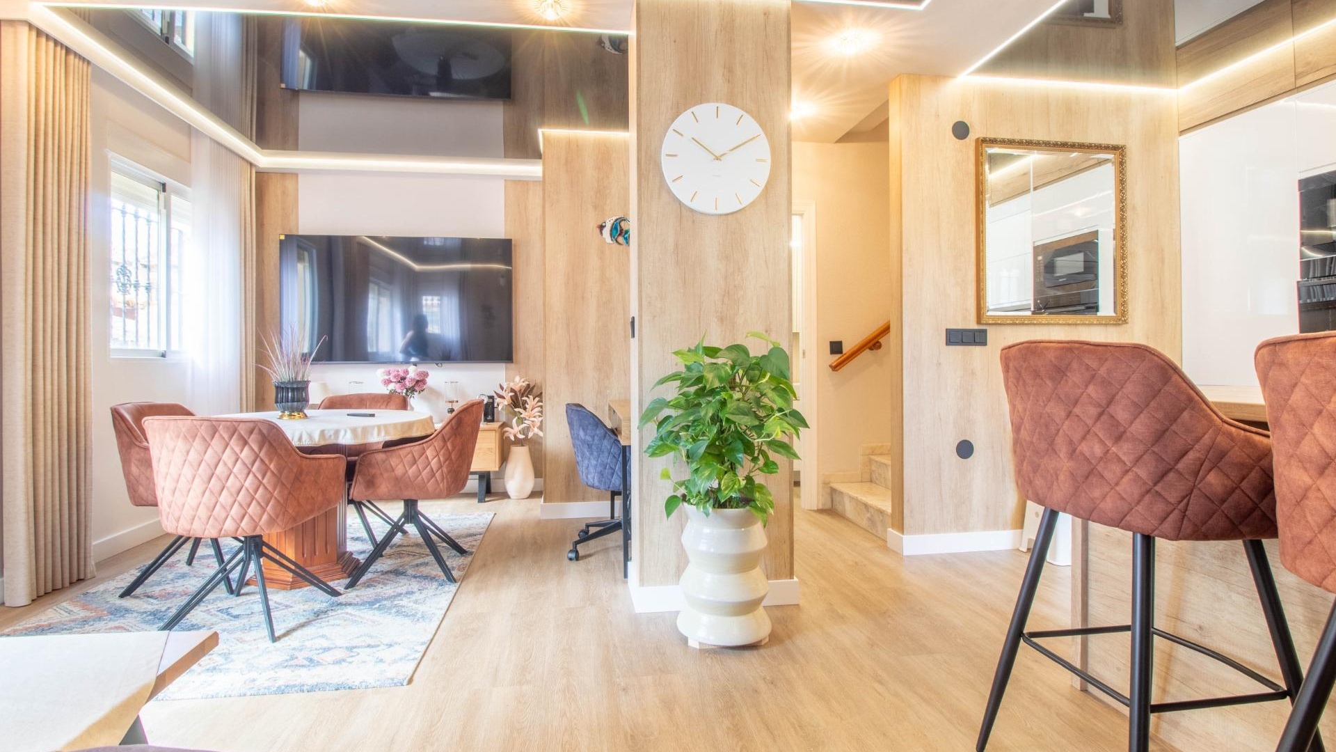 Wir präsentieren dieses wunderschöne Reihenhaus in La Zenia, Orihuela Costa. Es verfügt über drei geräumige Schlafzimmer, ein Badezimmer mit Dusche und ein Badezimmer mit Badewanne. Das Haus erstreckt sich über drei Etagen. Im Erdgeschoss befinden sich ein Garten, eine Terrasse, ein Wohnzimmer mit offener Küche und ein Badezimmer. Im ersten Stock befinden sich zwei Schlafzimmer mit Einbauschränken, ein Badezimmer und ein Balkon mit freiem Blick auf den Gemeinschaftspool. Im zweiten Stock befindet sich eine Sonnenterrasse. Das dritte Schlafzimmer kann als Schlafzimmer, Büro oder Spielzimmer genutzt werden. Von der Sonnenterrasse aus genießen Sie einen wunderschönen Meerblick. Wie Sie sehen, wurde das Haus in einem modernen und praktischen Stil renoviert. Das Haus bietet außerdem Extras wie einen großen und gut organisierten Abstellraum. Die Anlage verfügt über einen Gemeinschaftspool, und Sie können auf dem Grundstück oder direkt vor dem Haus parken. Zögern Sie nicht, einen Termin für eine Besichtigung dieses fantastischen Hauses zu vereinbaren!