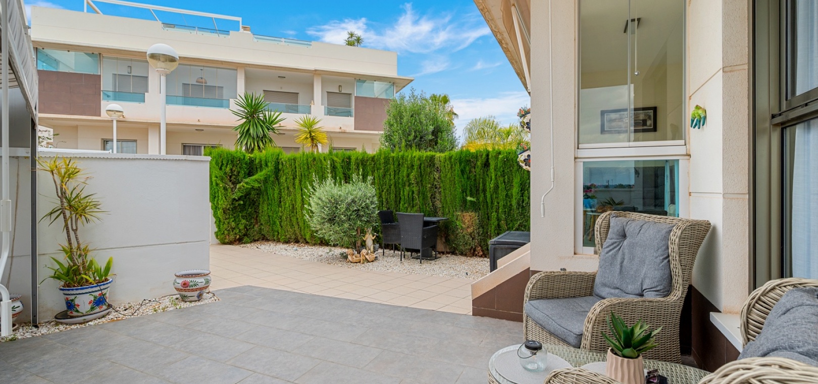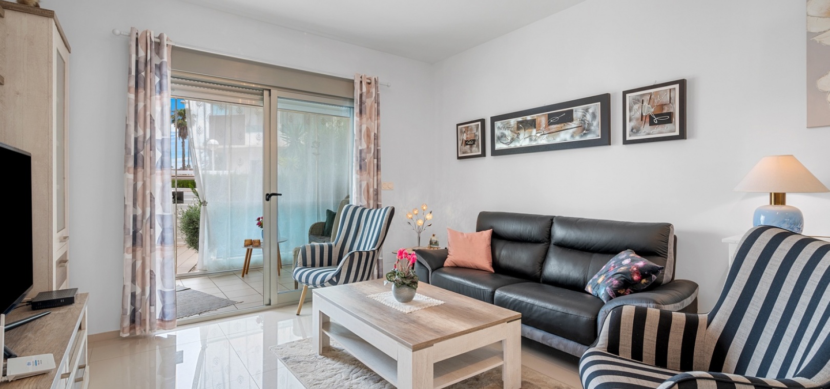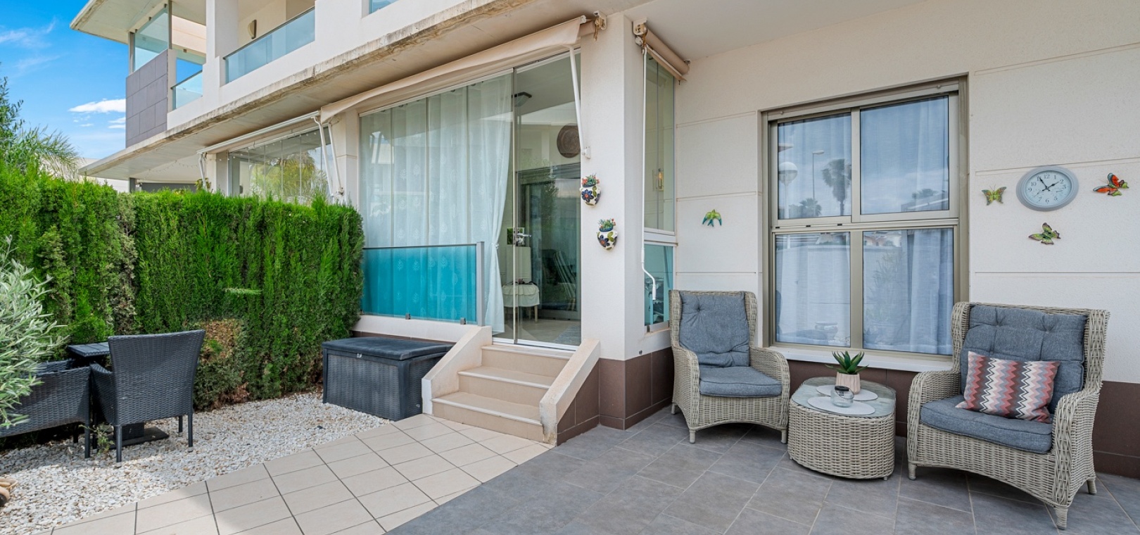 Erdgeschosswohnung mit 2 Schlafzimmern und direktem Zugang zum Gemeinschaftspool.