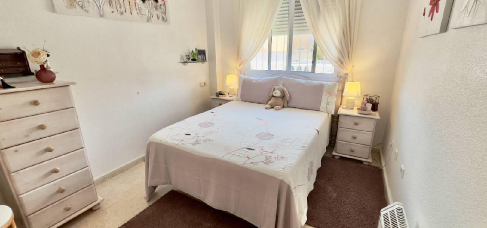 Makelloses 2-Schlafzimmer-Bungalow in geschlossener Anlage – Alle Annehmlichkeiten zu Fuß erreichbar Dieses wunderschön gepflegte 2-Schlafzimmer- und 2-Badezimmer-Anwesen befindet sich in einer sicheren Wohnanlage und bietet Ruhe, Privatsphäre und Komfort. Dank der Süd- und Westausrichtung ist das Haus lichtdurchflutet und genießt ganztägig Sonne. Hauptmerkmale: 2 Schlafzimmer mit Einbauschränken2 Badezimmer, darunter ein privates En-SuiteHeller offener Wohn- und EssbereichModerne amerikanische Küche mit ElektrogerätenKlimaanlage, Hauswirtschaftsraum und StraßenparkplatzAuf einem komplett gefliesten 90 m² großen Grundstück mit privaten Gärten und GartenblickVerkauf voll möbliert und in ausgezeichnetem Zustand Gemeinschaftseinrichtungen: GemeinschaftspoolZugang durch Tor für zusätzliche SicherheitRuhig und doch nah an allen lokalen Annehmlichkeiten Standort-Highlights: 10 Minuten zum Strand30 Minuten zum Flughafen5 Minuten zu Geschäften, Restaurants und Dienstleistungen15 Minuten zu Golfplätzen